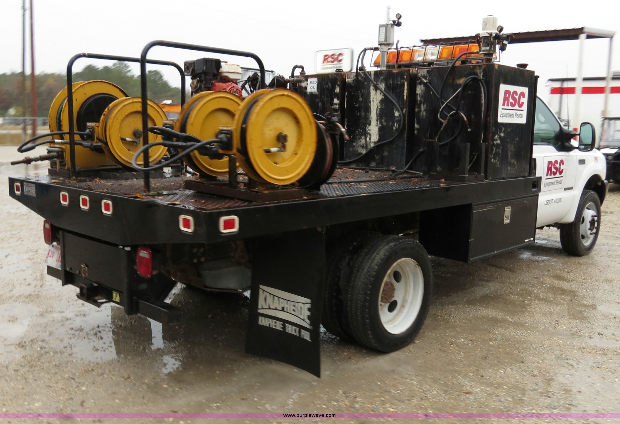 Take a look at this used 2002 Ford F550 Super Duty flatbed lube truck being sold on December 11th, 2012 in the SOLD! December 11 United Rentals Auction made by Ford. Take a look at all of the item information below or take a look at similar auctions for Trucks.