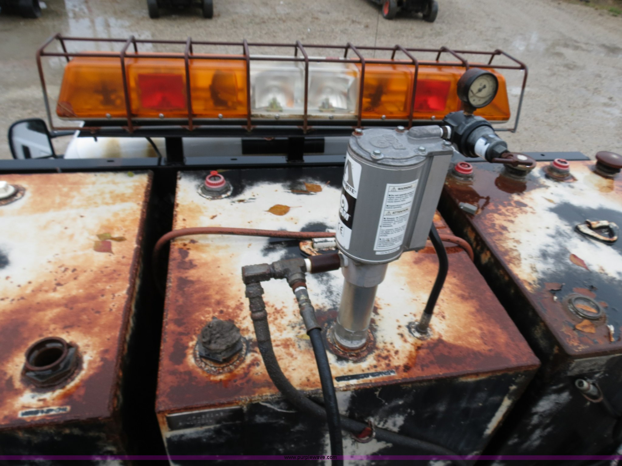 Purple Wave is selling a used Service Truck in Mississippi. This item is a 2002 Ford F550 Super Duty flatbed lube truck with the following: 18,127 miles on odometer, 7.3L V8 diesel engine, Automatic transmission, AC and heat, AM/FM, Manual windows and locks, Vinyl interior, Trailer brake controller, Under mount toolbox, (3) oil/hydraulic tanks, Air compressor, Honda GX340 engine, 11 HP, Hose with reels, Oil pumps not working, Flashing light with cab controls, Receiver hitch, 225/70R19.5 tires, EIN 428817RA