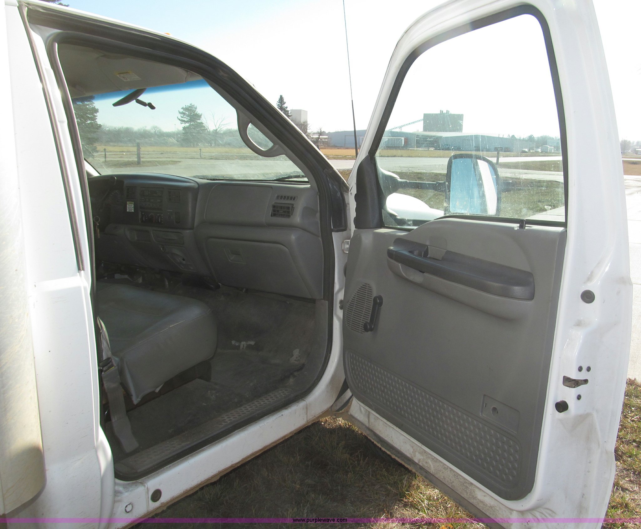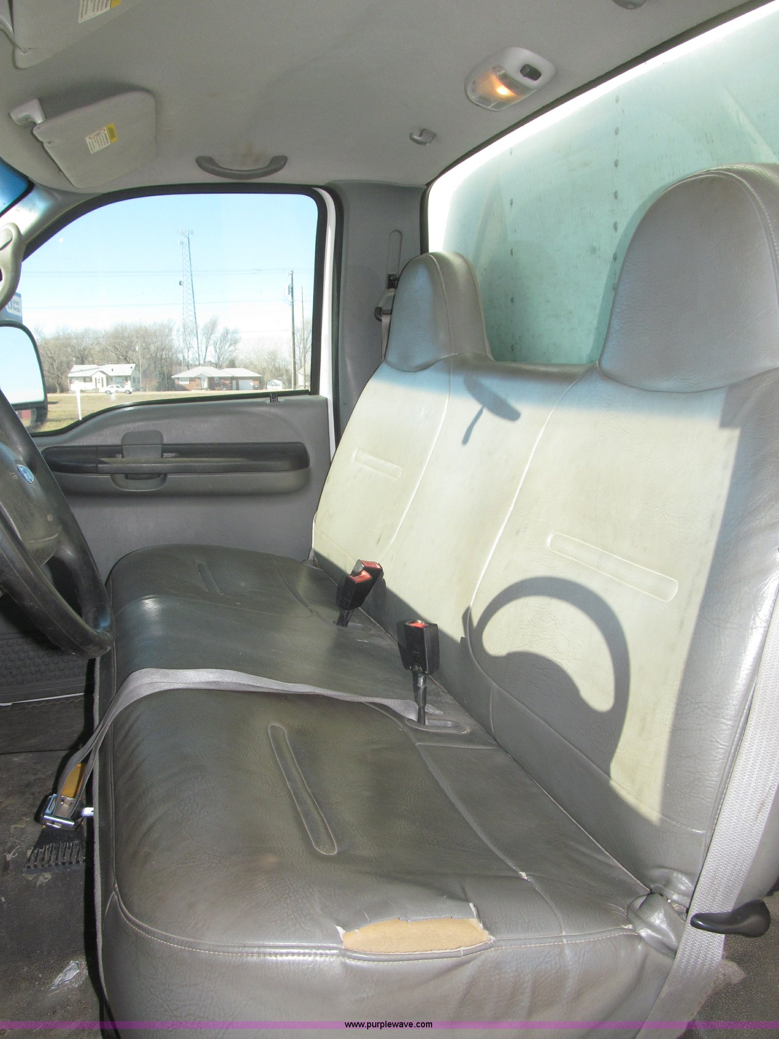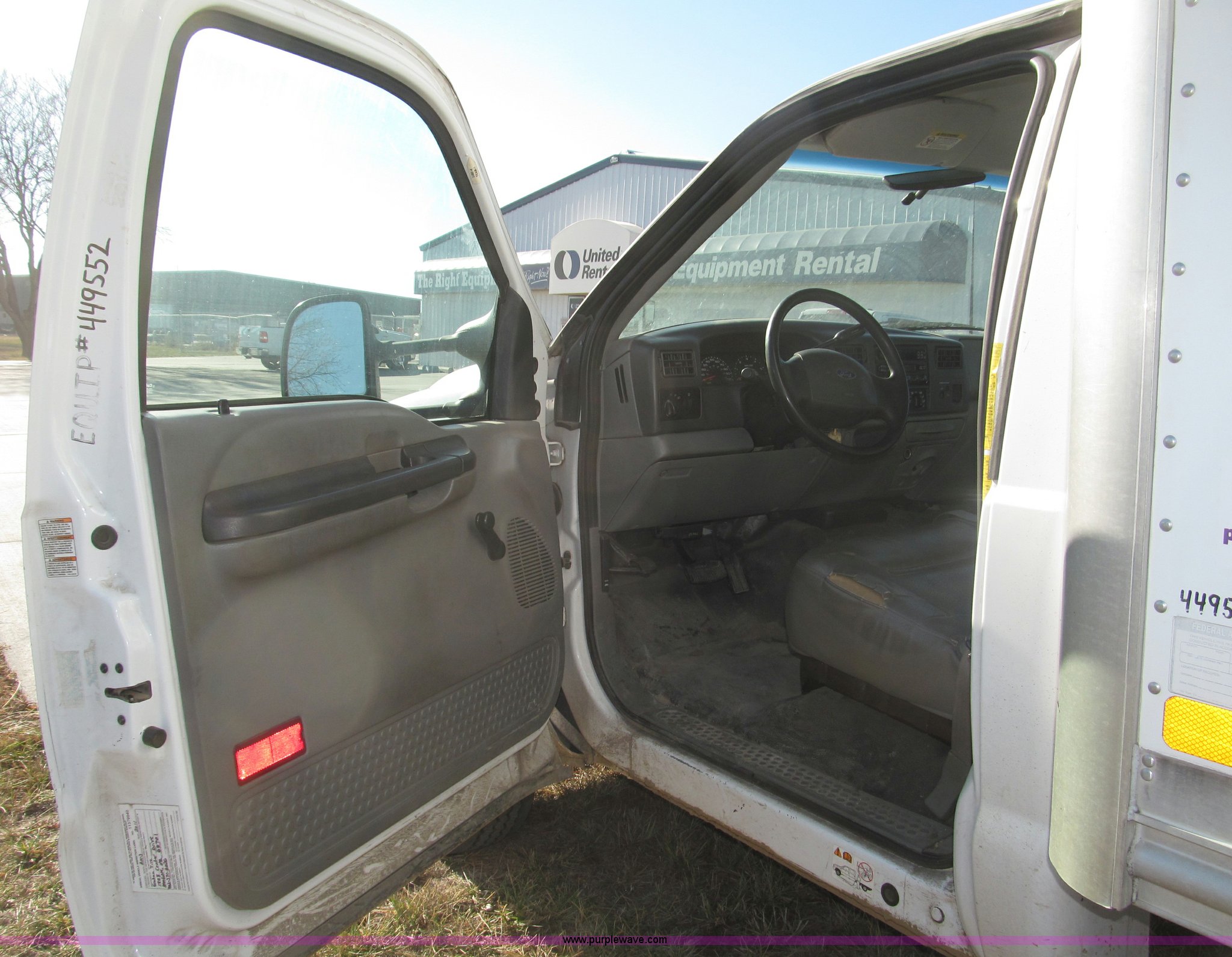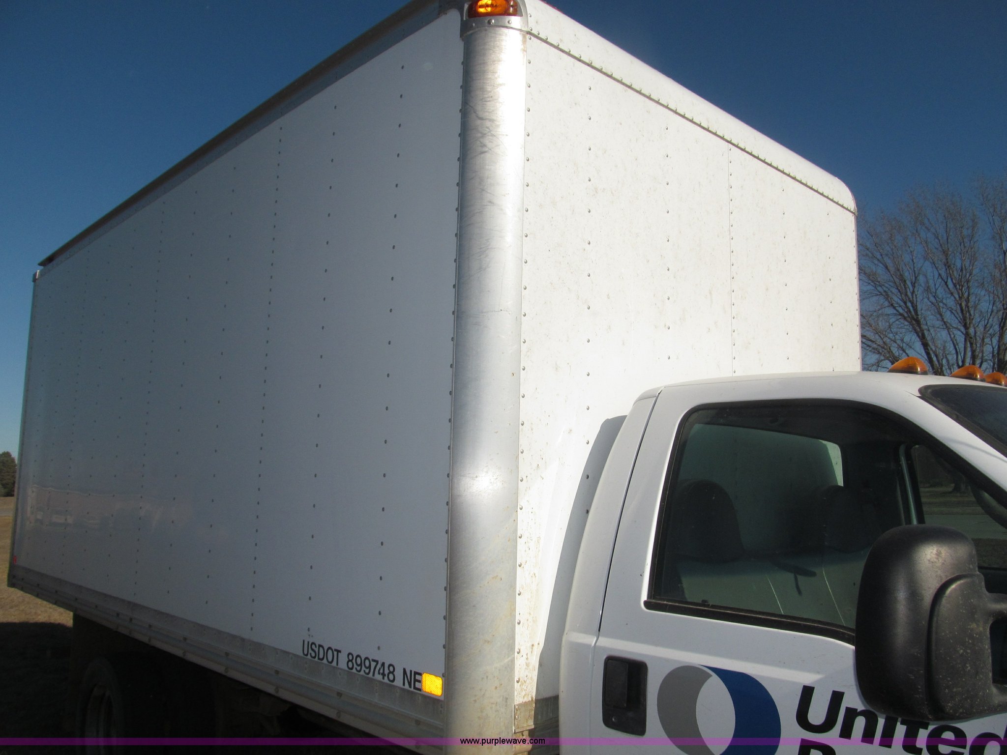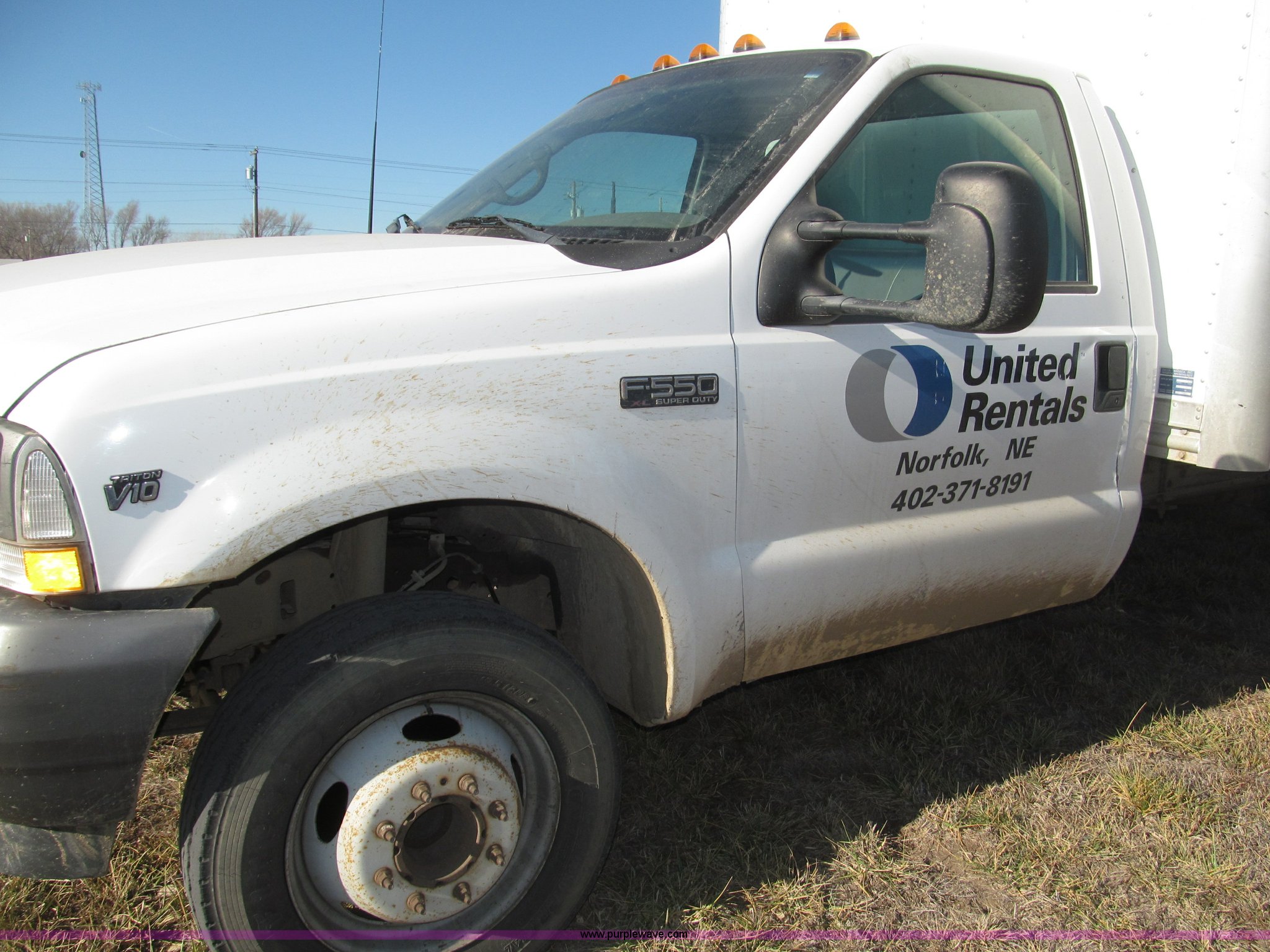Purple Wave is selling a used Box Truck in Nebraska. This item is a 2002 Ford F550 XL Super Duty box truck with the following: 129,462 miles on odometer, Miles may vary, Triton 6.8L V10 gas engine, Automatic transmission, AC and heat, AM/FM/cassette, Manual windows and locks, Vinyl interior, Delta-Waseca QX85-16 box, 16'L x 92"W x 86.5"H I.D., Serial 94746, 12V DC power adapter, Diamond rear roll-up door, Serial 63618, Emtek aluminum loading ramp, 1,300 lb capacity, 14'L x 24 3/8" I.D., Serial 14-009944, Spring suspension, Backup alarm, Clearance lights, Front tow hooks, 2" receiver hitch, Mud flaps, 201" wheelbase, Firestone 225/70R19.5 12PR front tires, Continental 225/70R19.5 rear tires, GVWR 17,5000 lbs, FAWR 5,600 lbs, RAWR 13,500 lbs, Rear end differential replaced in November 2012, Annual inspection completed April 2011, Interior/exterior cosmetic damage, Bumper rust, Front bumper dented, Contents not included, EIN 449552