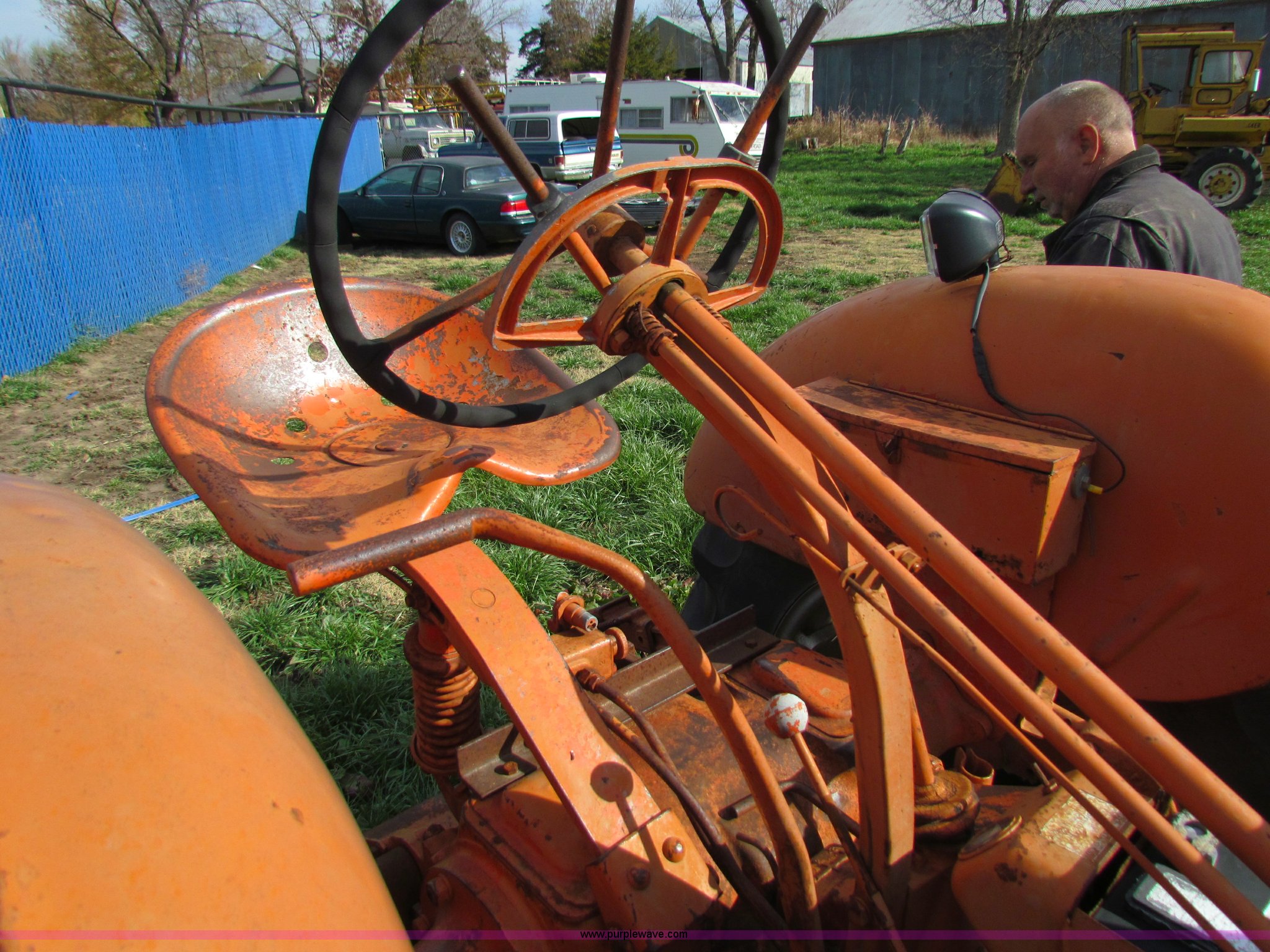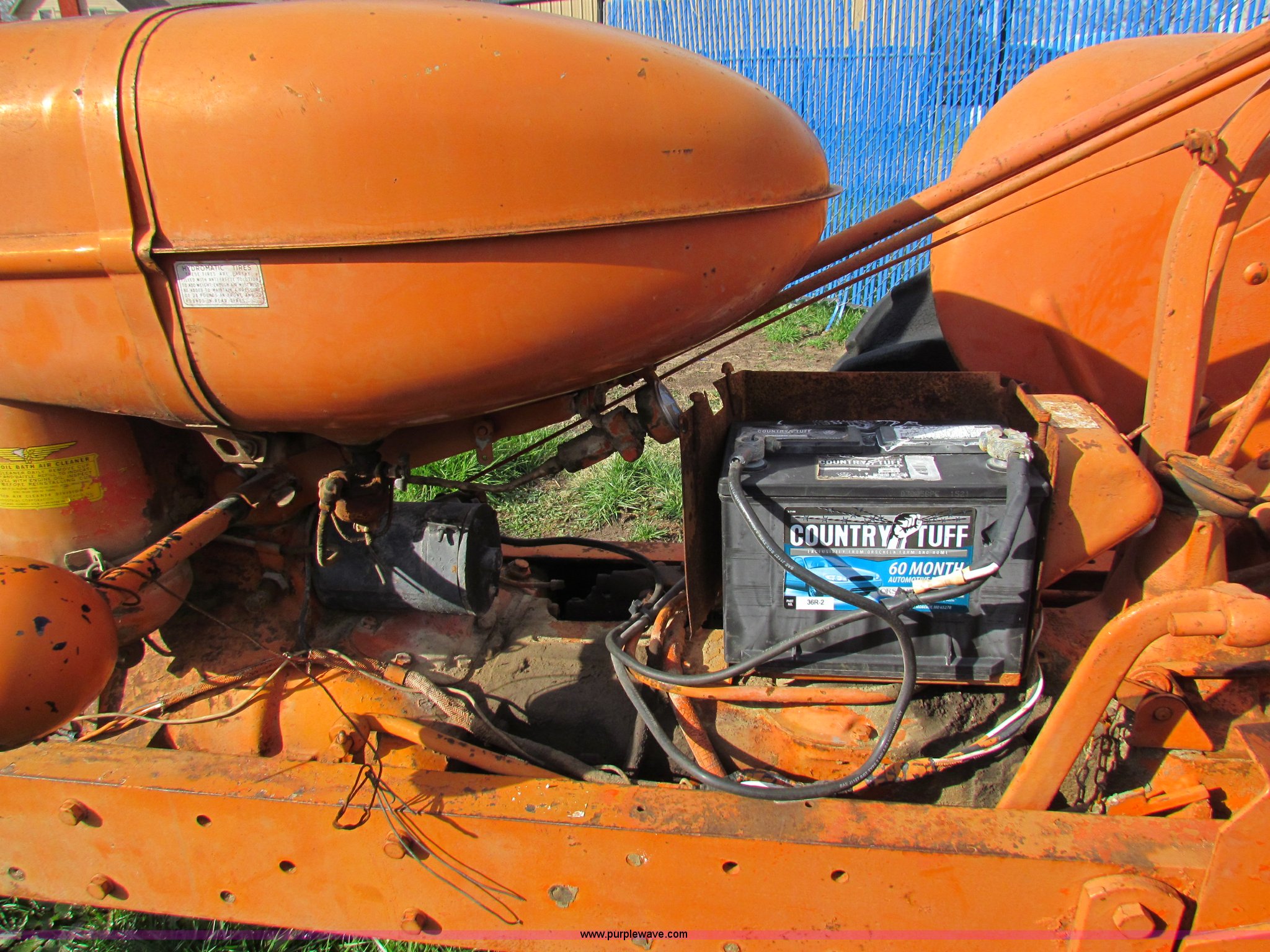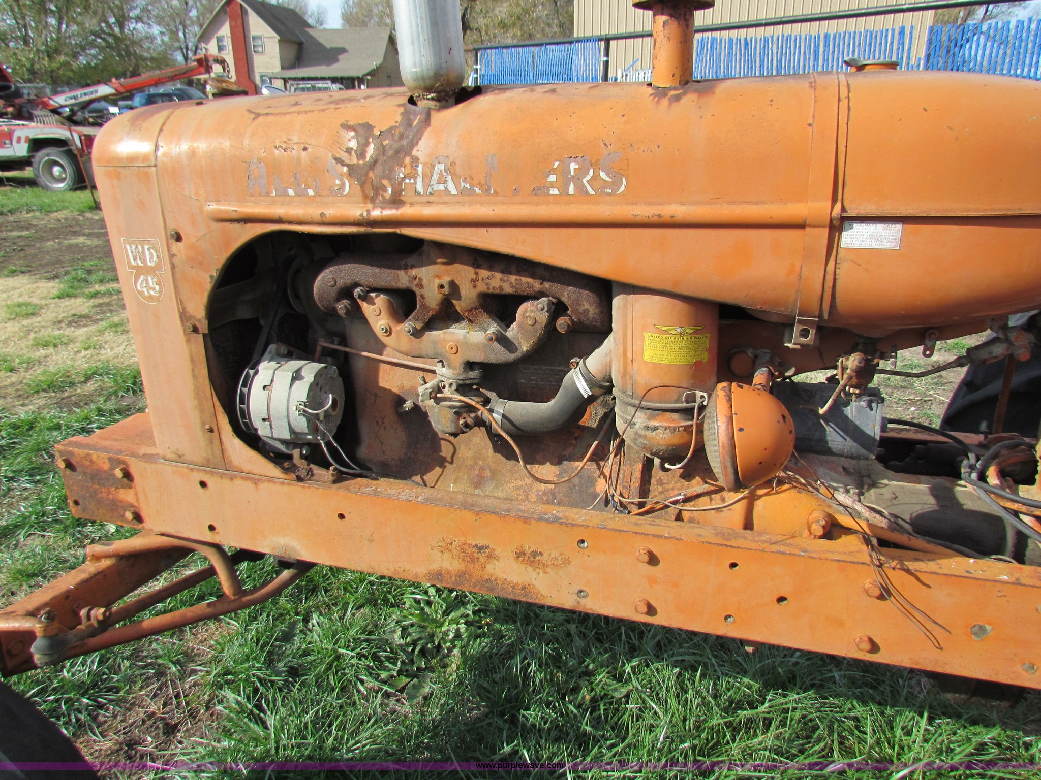 Purple Wave is selling a used Tractor in Kansas. This item is a Allis Chalmers WD45 tractor with the following: Four cylinder gas engine, Four speed transmission, Three point, 540 PTO, 6.00-16 front tires, 14.9-28 rear tires, Dead battery, Brakes inoperable, Operational when parked one year ago