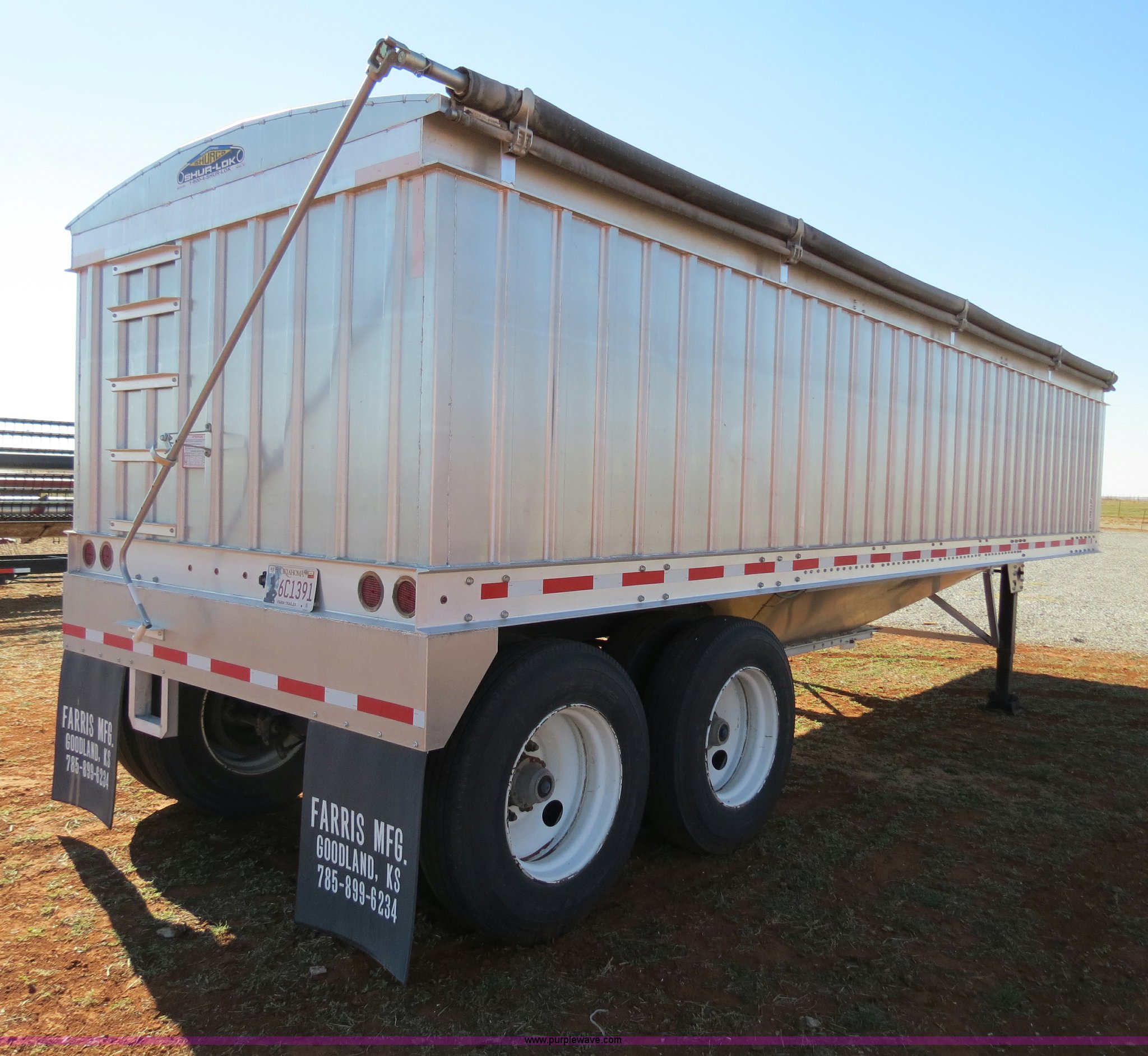 Purple Wave is selling a used Grain or Commodity Trailer in Oklahoma. This item is a 2013 Farris GH1028 28.5' aluminum double hopper grain trailer with the following: 102"W x 64"H sides, Shurco Shur-lok rollover tarp, Grain sight windows, Front and rear ladders, Dual landing gear, Spring suspension, Air brakes, Dual tandem axles, 11R24.5 tires, GVWR 65,000 lbs, GAWR 20,280 lbs