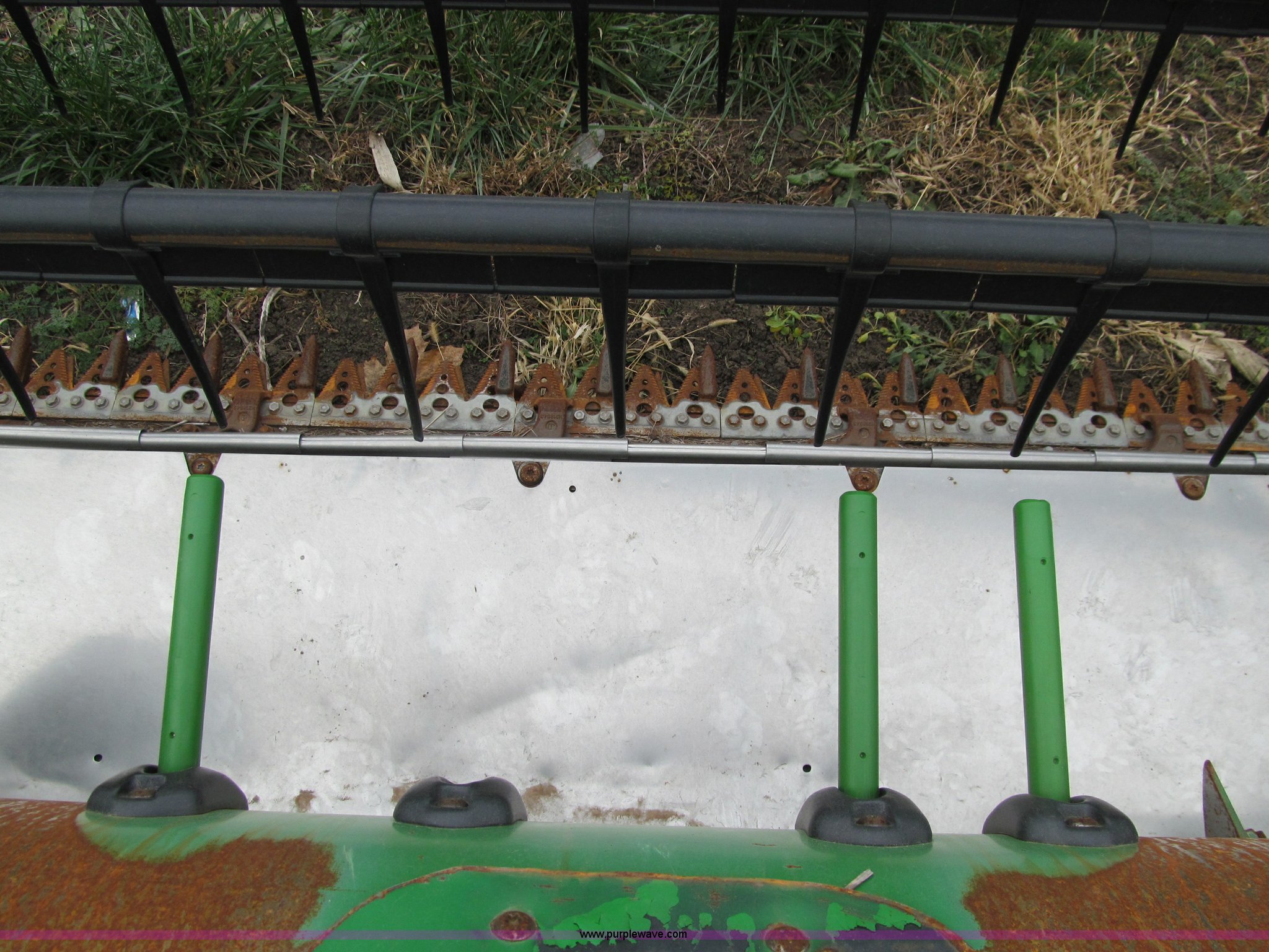 Purple Wave is selling a used Platform or Stripper Head in Iowa. This item is a 2006 John Deere 635F 35' flex header with the following: Auger with full width fingers, Telescoping platform drive shafts, Universal splined backshafts, Finger pickup reel, Auto header height sensing, Hydraulic fore/aft reel adjustment, Flexible platform, Auto reel speed control, Low stone dam, Contour Master terrain tracer, Stubble lights, Serial H00635F717018, Asset# 68947