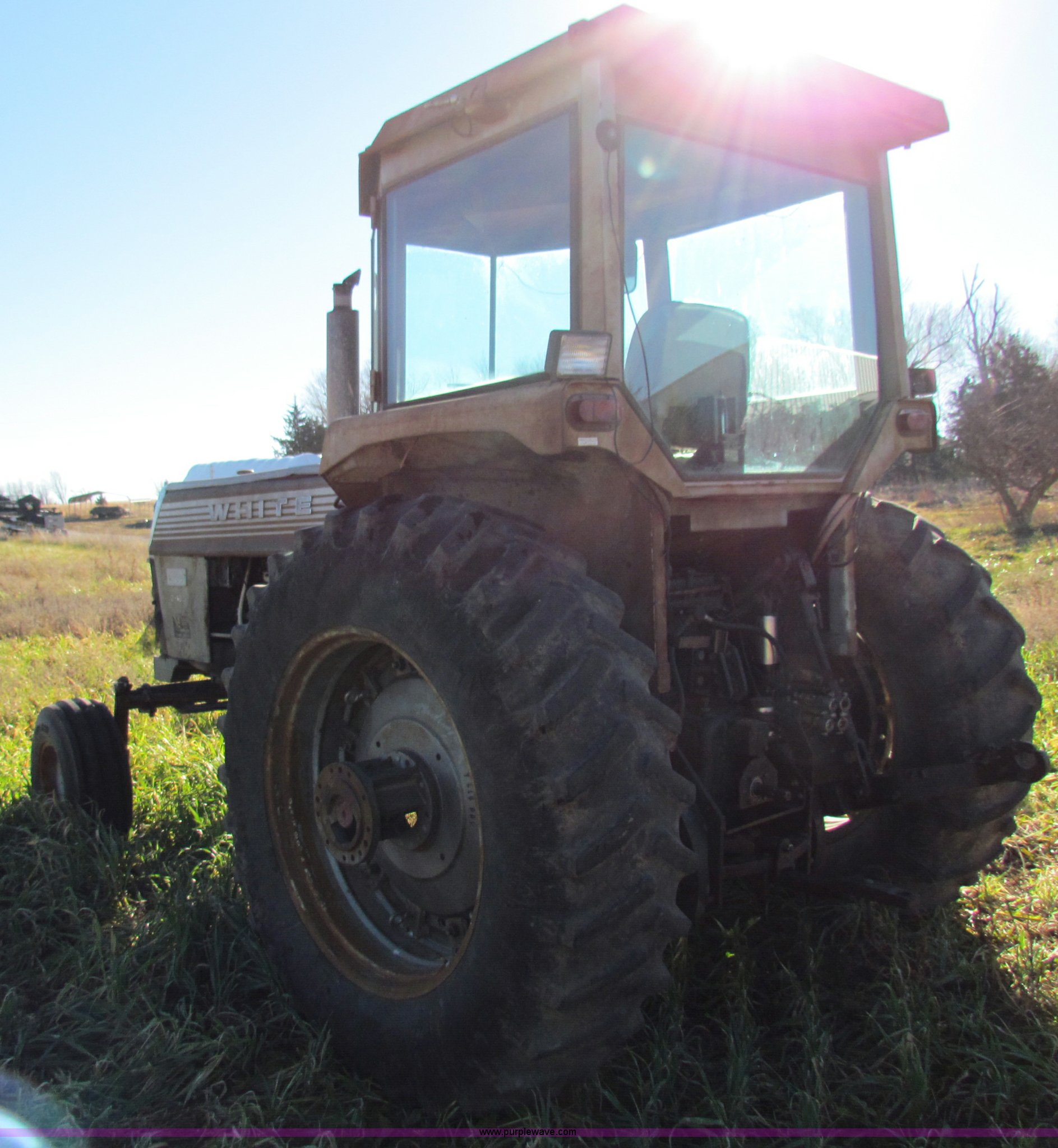 Purple Wave is selling a used Tractor in Kansas. This item is a White 2-105 Field Boss tractor with the following: 2,140 hours on meter, Six cylinder diesel engine, 540 PTO, Three point, One arm is missing, (2) rear hydraulic remotes, Draw bar, 11L-15SL front tires, 18.4-38 rear tires, Alternator and manual fuel cutoff rod need replaced, Serial TH22282N83580