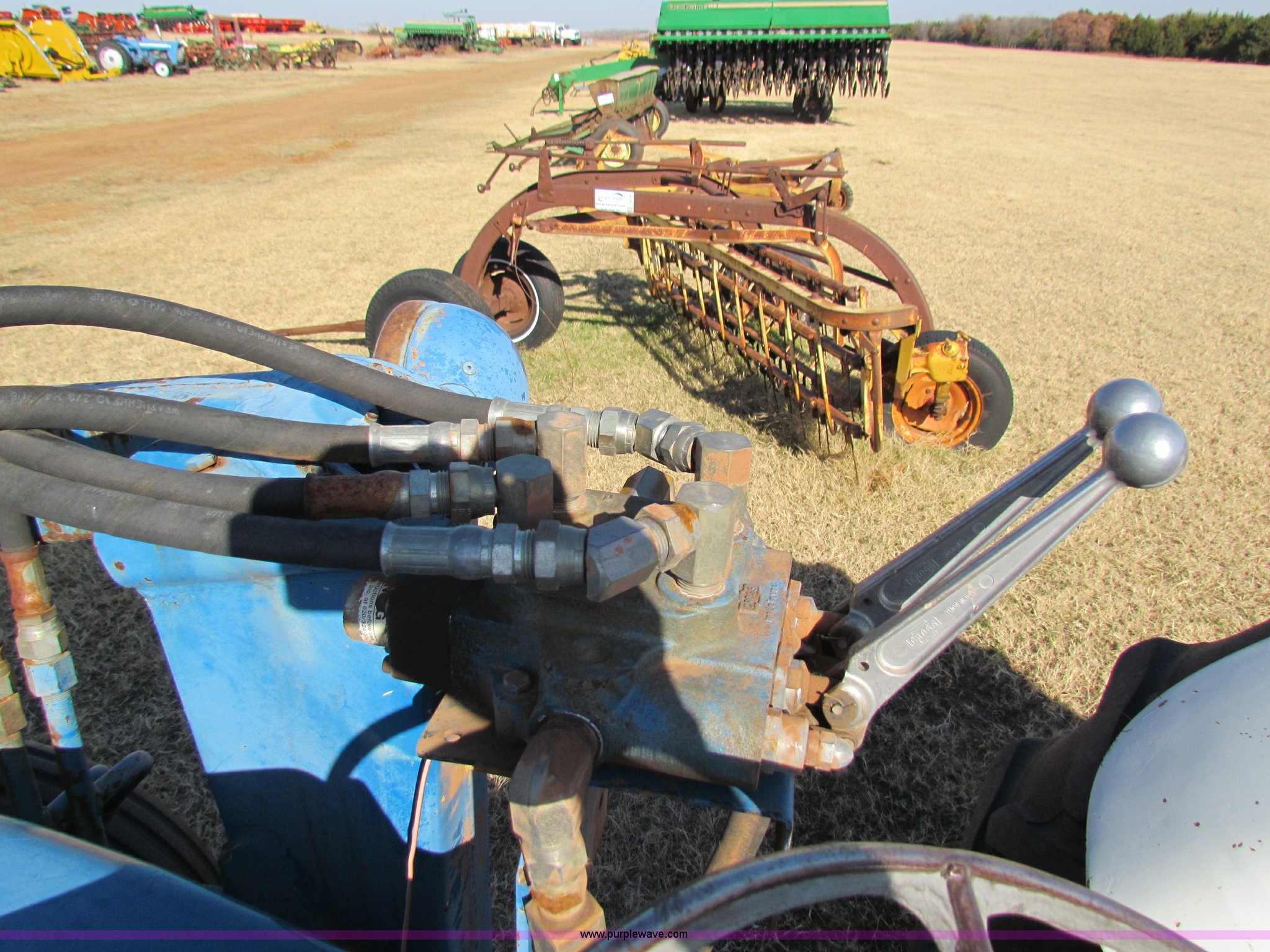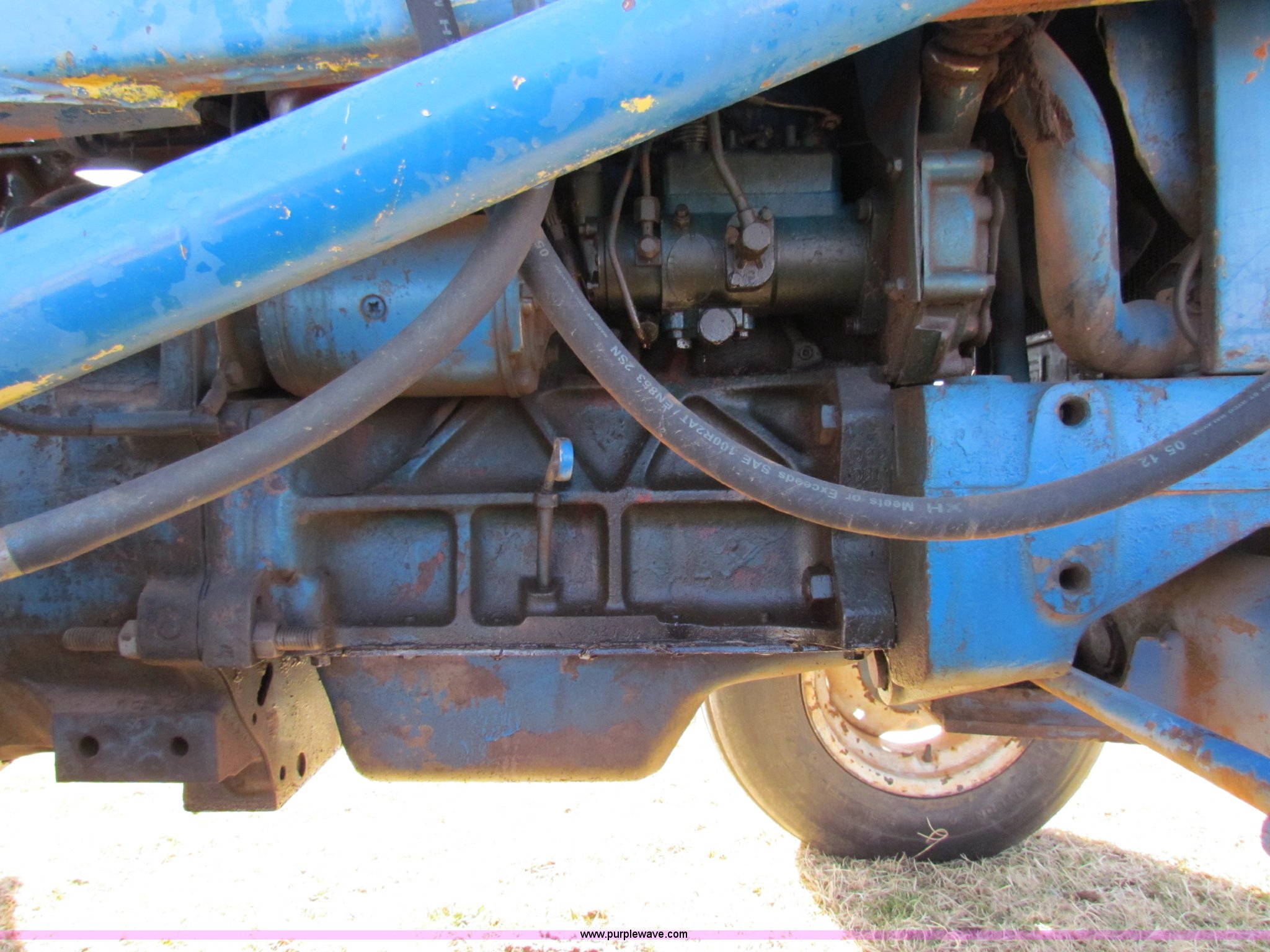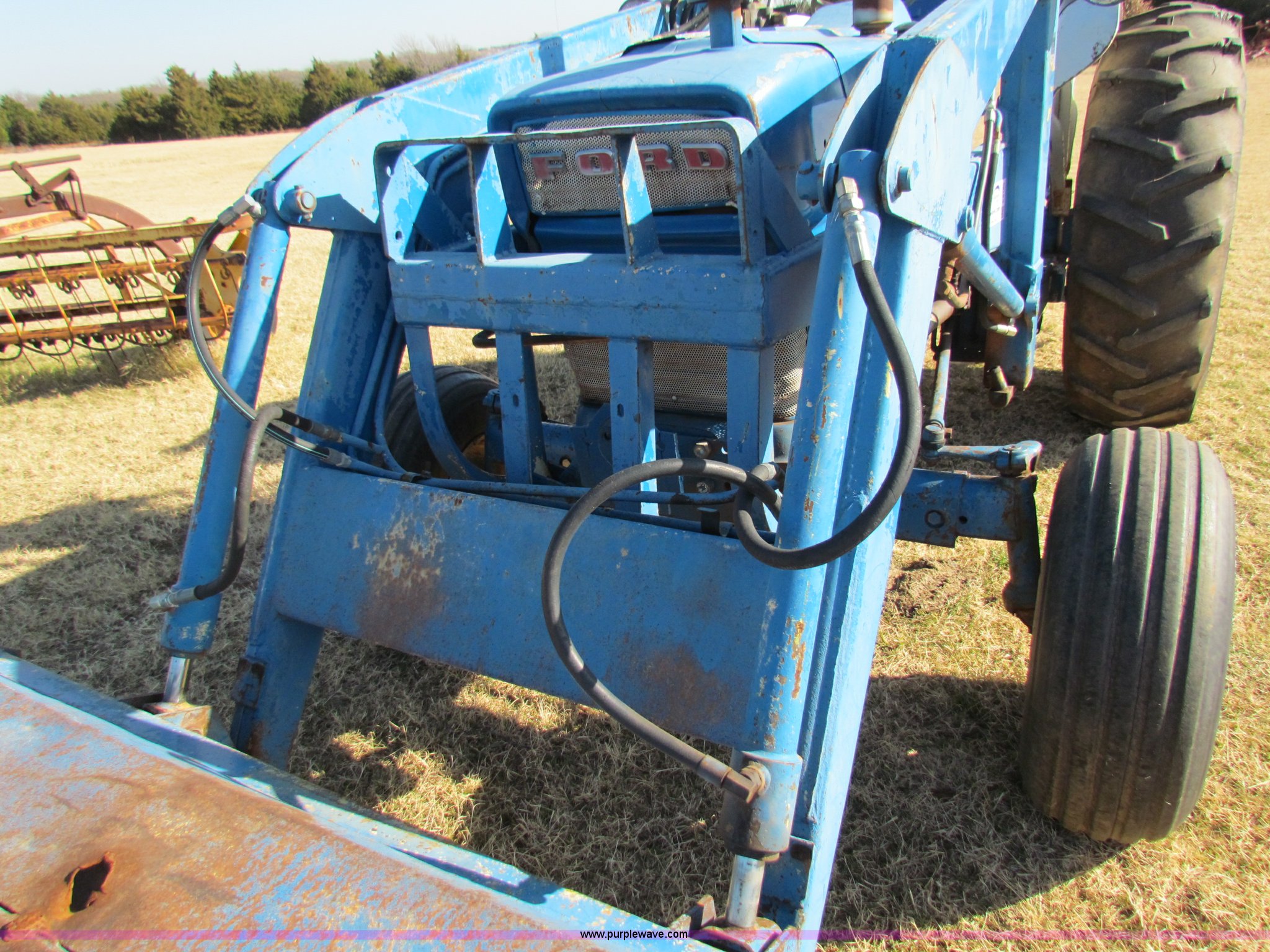 Purple Wave is selling a used Tractor in Oklahoma. This item is a Ford tractor with loader with the following: 250 hours on meter, Three cylinder diesel engine, Three point, 540 PTO, PTO seal leaks hydraulic fluid, Draw bar, Rear hydraulic remote, 67" bucket, Two valve loader controls, 9.5L-15SL front tires, 16.3-30 rear tires