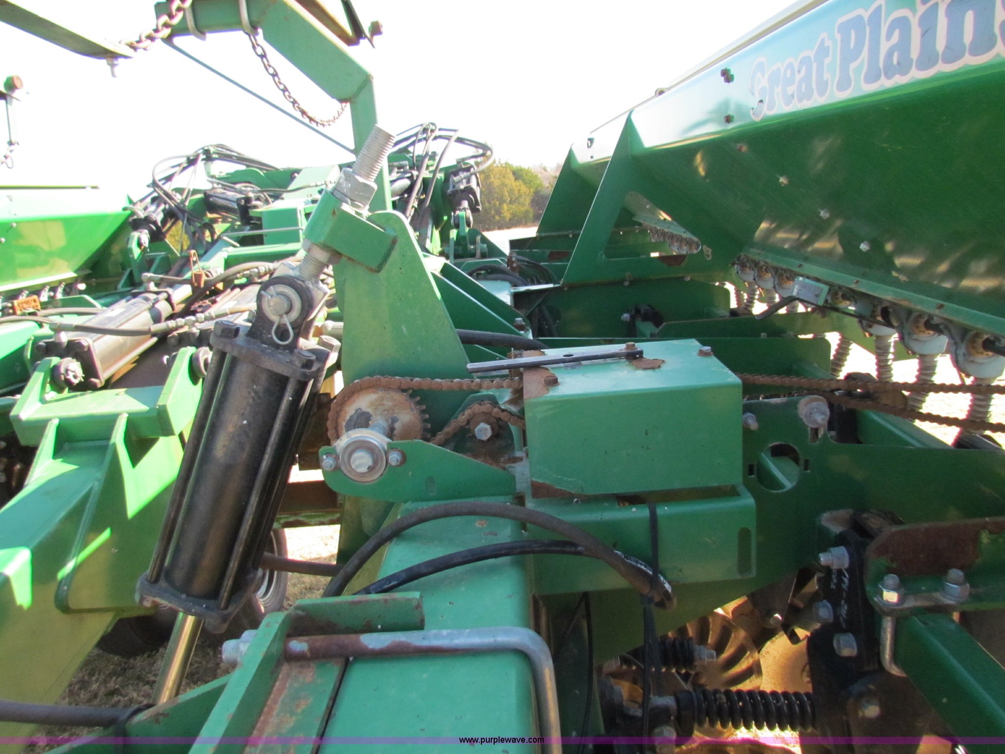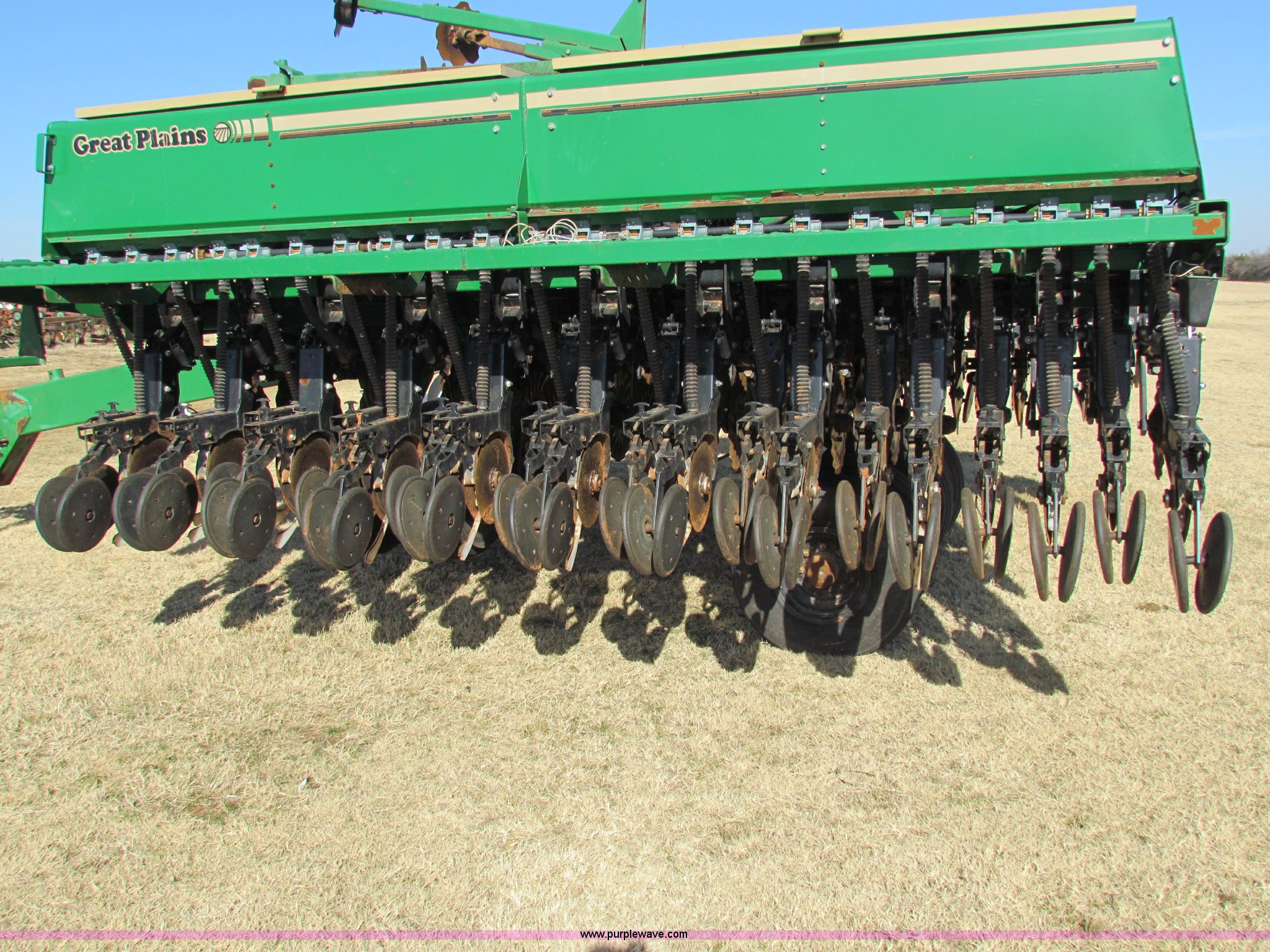 Purple Wave is selling a used Grain Drill or Seeder in Oklahoma. This item is a 1996 Great Plains Solid Stand 3010NT no-till grain drill with the following: 44 rows, 8" spacing, 12.5" disks, 16.75" openers, No-till markers, Hydraulic fold, 12L-15SL tires, Serial GP-0175596