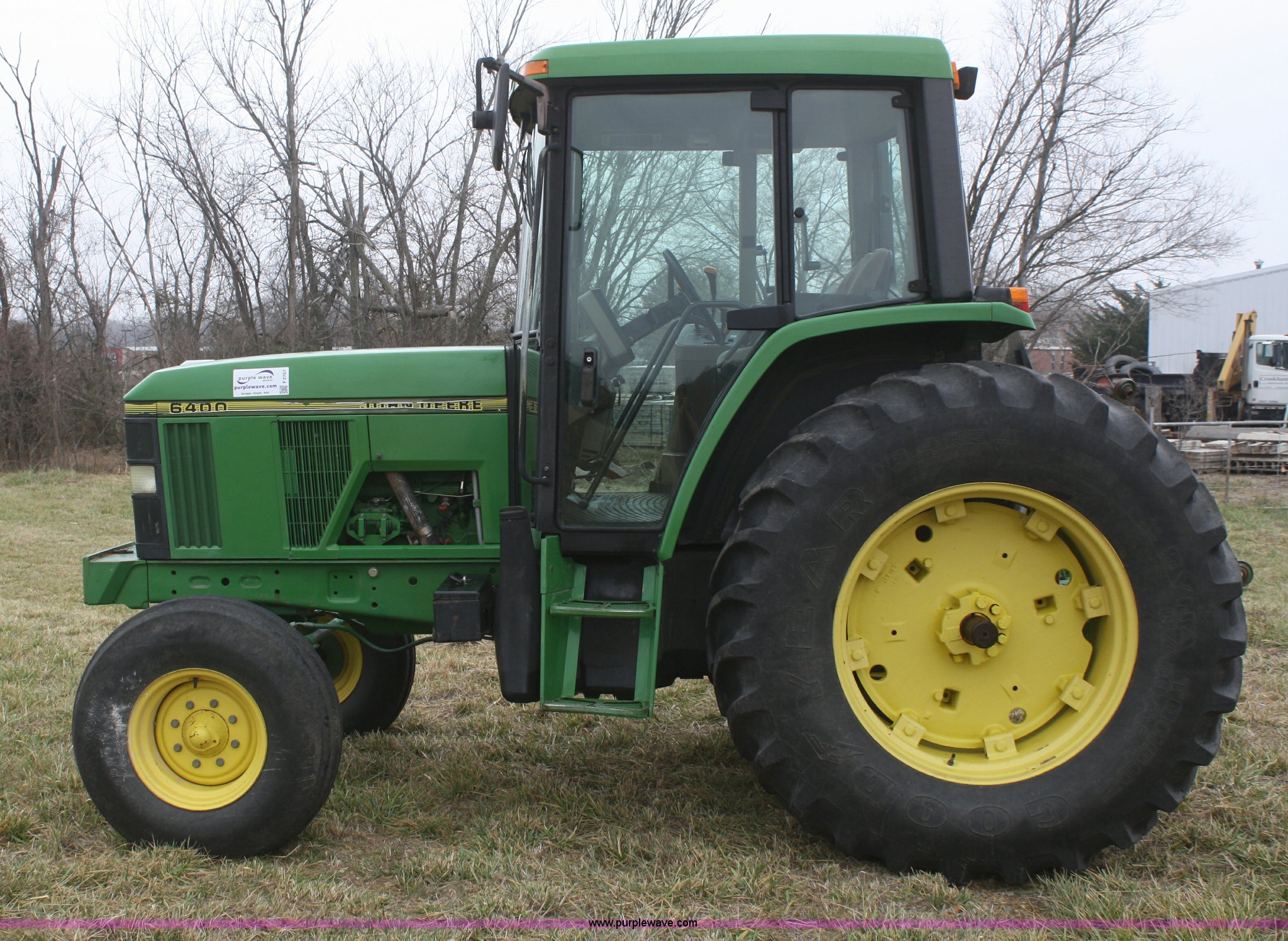 Purple Wave is selling a used Tractor in Kansas. This item is a 1995 John Deere 6400 tractor with the following: 2,386 hours on meter, John Deere 4045TL four cylinder diesel engine, 85 HP, Serial L04045T187800, Synchro transmission, 12F-4R gears, AC and heat, AM/FM, Tilt steering wheel, Three point, Draw bar, 540/1000 PTO, (2) rear hydraulic remotes, 94.5" wheelbase, 10.00-16 front tires, 18.4R38 rear tires, 8,114 lbs. base operating weight, One owner, Serial L06400P136441