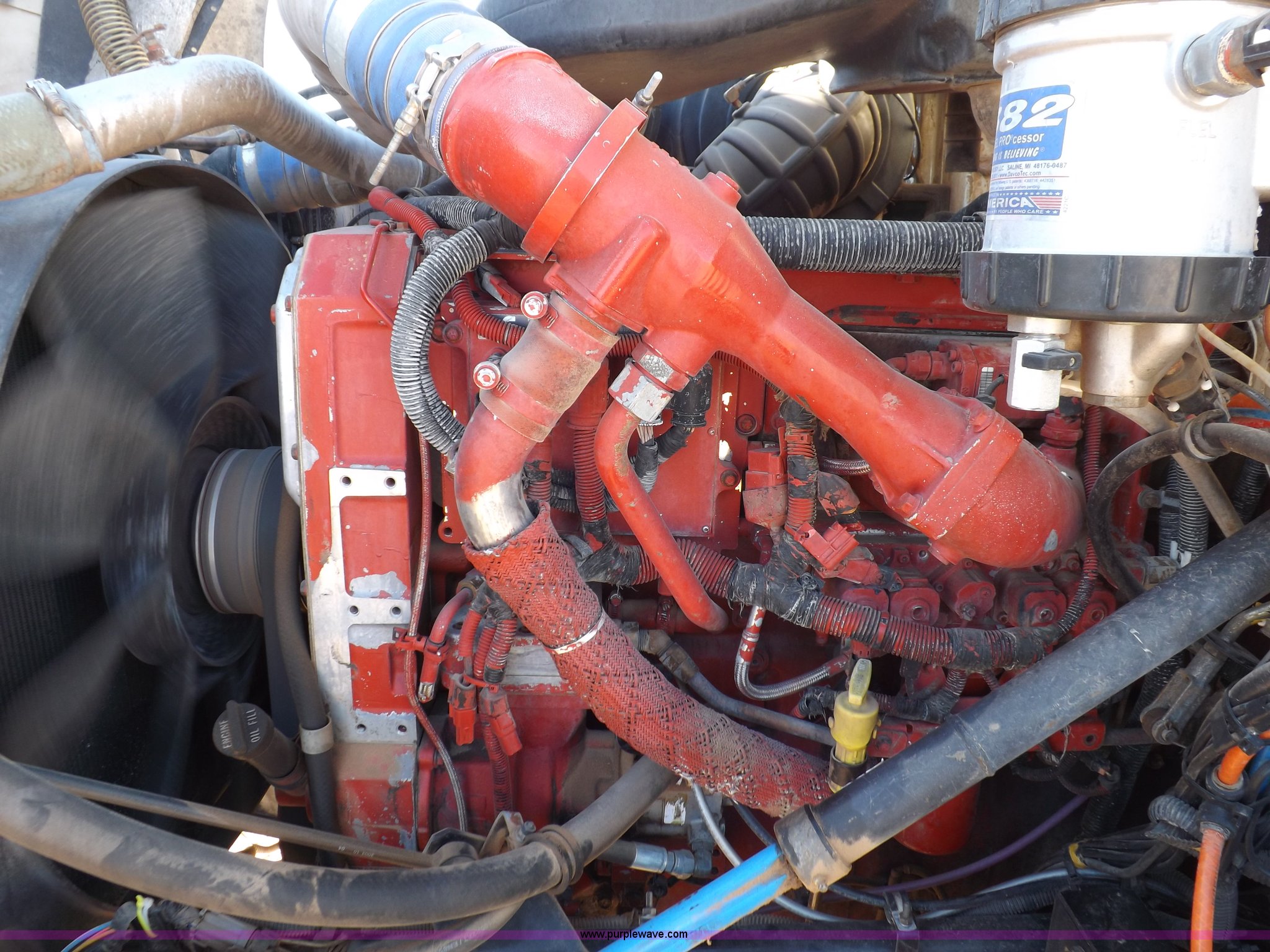 Purple Wave is selling a used Truck Tractor in Oklahoma. This item is a 2003 International 9200i semi truck with the following: 462,041 miles on odometer, Cummins ISX 14.9L L6 diesel engine, Model 3682729, Serial 3003658DOHC, Eaton Fuller 10 speed manual transmission, Twin screw, AC and heat, Tilt, Cruise, AM/FM/cassette, Air suspension seat, Heated mirrors, Passenger side power window, Visor, Chrome bumper, Air slide fifth wheel, Air line missing, Dual 98 gallon fuel tanks, Dual rear exhaust tanks, Aluminum deck plate, Plastic quarter fenders, Air suspension, Dump valves, Air brakes, Jake brake, 232" wheelbase, 11R22.5 tires, GVWR 52,000 lbs, FAWR 12,000 lbs, IAWR 20,000 lbs, RAWR 20,000 lbs, Seaboard# 3569