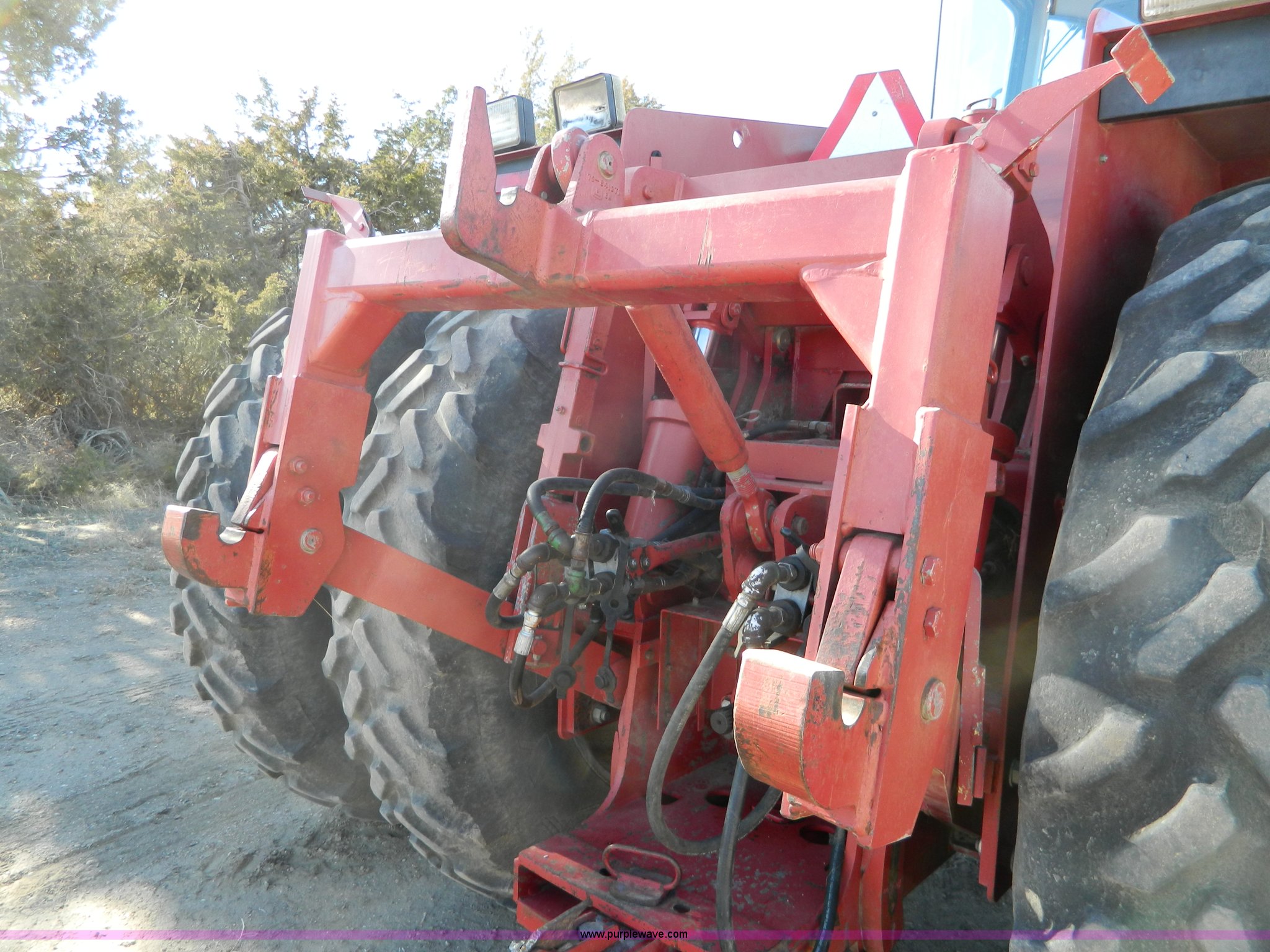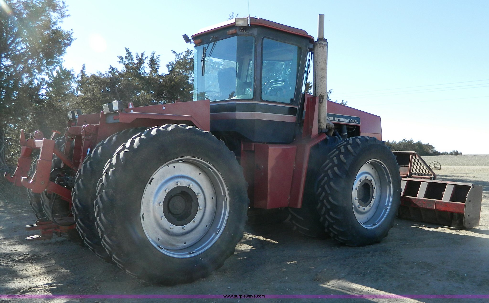 Purple Wave is selling a used Articulated 4-Wheel Drive Tractor in Kansas. This item is a 1993 Case 9250 4WD articulated tractor with the following: 7,585 hours on meter, Cummins LTA 10-A six cylinder diesel engine, 300 HP, Serial 34681272, Powershift transmission, 12F-3R gears, AC and heat, AM/FM, Air suspension seat, Three point quick attach, Draw bar, 1000 PTO, (4) rear hydraulic remotes, 131" wheel base, 118" outside track width, 68" inner track width, 18.4R42 dual tires, Dozer blade sold separately as item S9212 , Serial JCB0030595