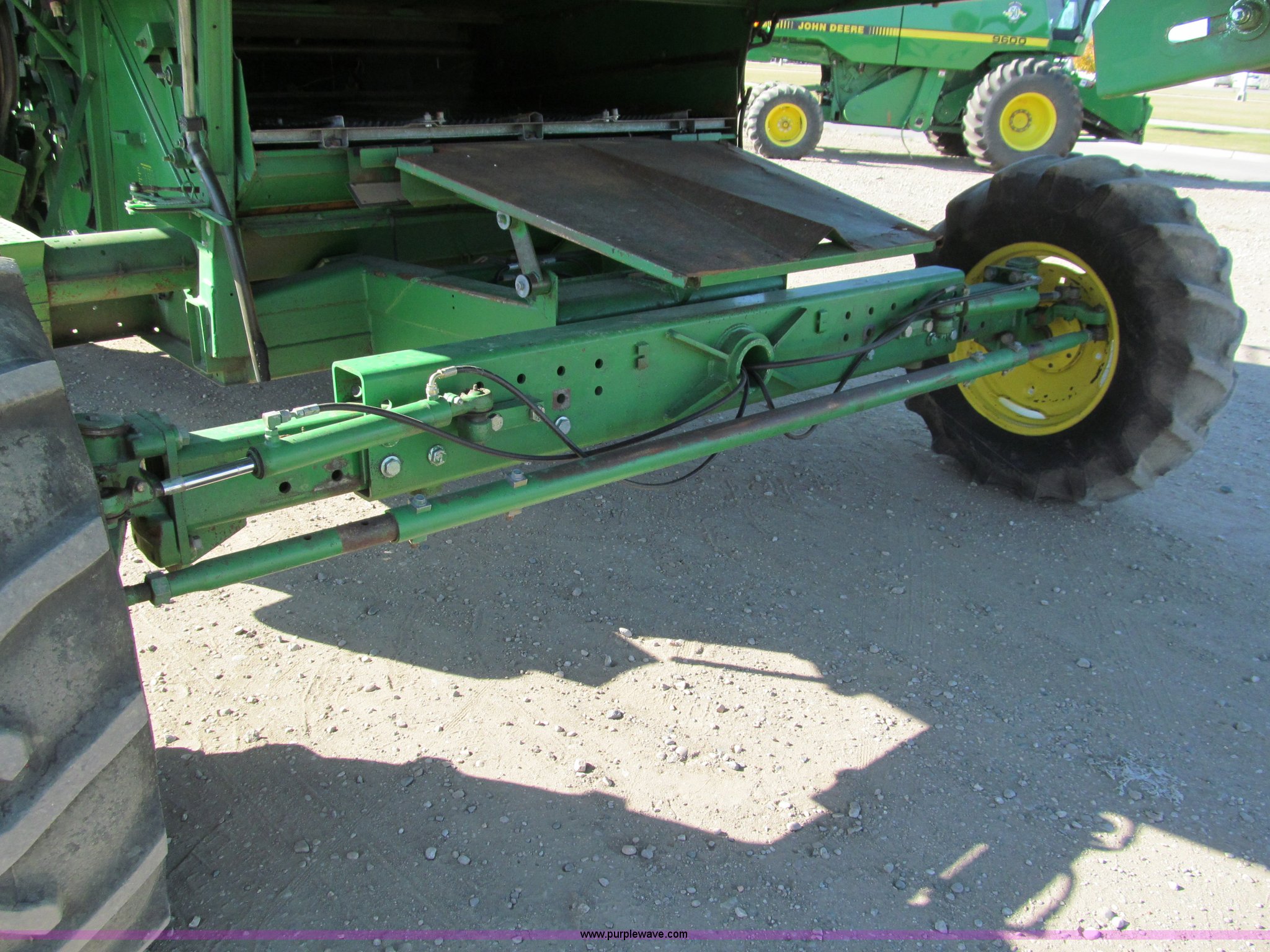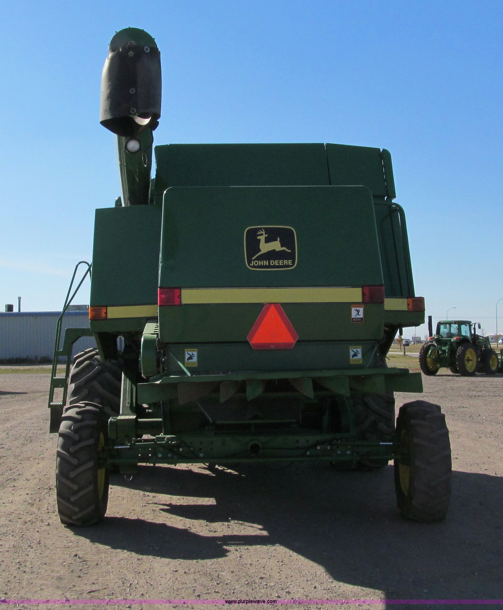 Purple Wave is selling a used Combine in North Dakota. This item is a 1990 John Deere 9600 combine with the following: 5,447 engine hours on meter, 3,642 separator hours on meter, John Deere diesel engine, Six speed hydrostatic transmission, AC and heat, AM/FM, Suspension seat, Instructor's seat, Tilt steering wheel, Straw chopper and spreader, Automatic header height sensing, Grain loss monitor, Rock trap, Long unloading auger, Automatic reel speed control, Work lights, 30.5R32 drive tires, 14.9R24 steer tires, Minor sheet metal damage, Serial H09600X635907