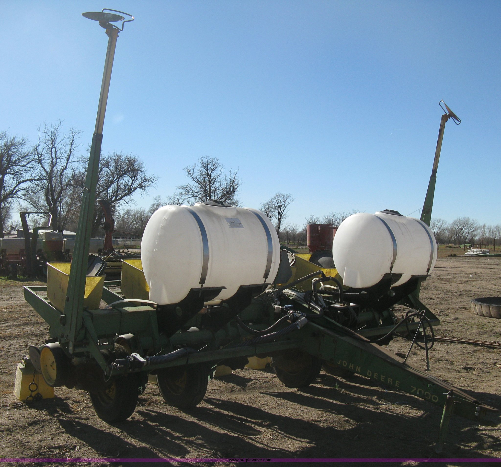 Purple Wave is selling a used Planter in Kansas. This item is a John Deere 7000 planter with the following: Six row, 30" spacing, Twin disk row cleaners, Twin disk closing wheels, (2) 110 gallon liquid fertilizer applicator tanks, (4) dolly wheels, Serial 052788