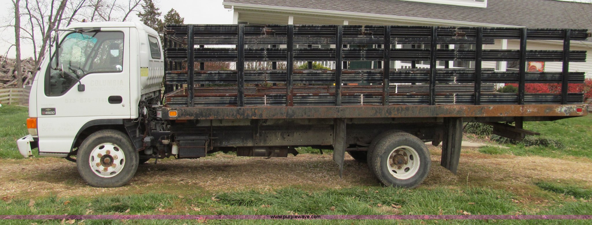 Purple Wave is selling a used Flat Bed Truck in Missouri. This item is a 2000 Chevrolet W4500 truck with the following: 140,203 miles on odometer, Isuzu 4.75L L4 diesel engine, Engine noise, Automatic three speed transmission, AC and heat, AM/FM/cassette, Manual windows and locks, Cloth interior, 33 gallon fuel tank, Knapheide 18'L x 8'W flatbed, LT215/85R16 tires
