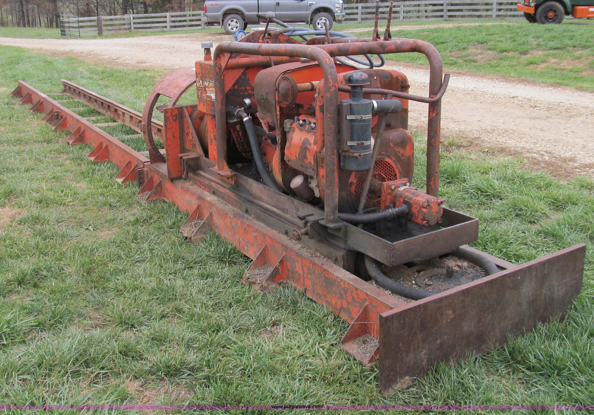 Purple Wave is selling a used Directional Boring Unit in Missouri. This item is a American Auger boring machine with the following: Wisconsin four cylinder gas engine, Serial VH4D4447238, 3 1/4" output shaft, Unit contained on 10' rail, (2) additional 10' rail sections