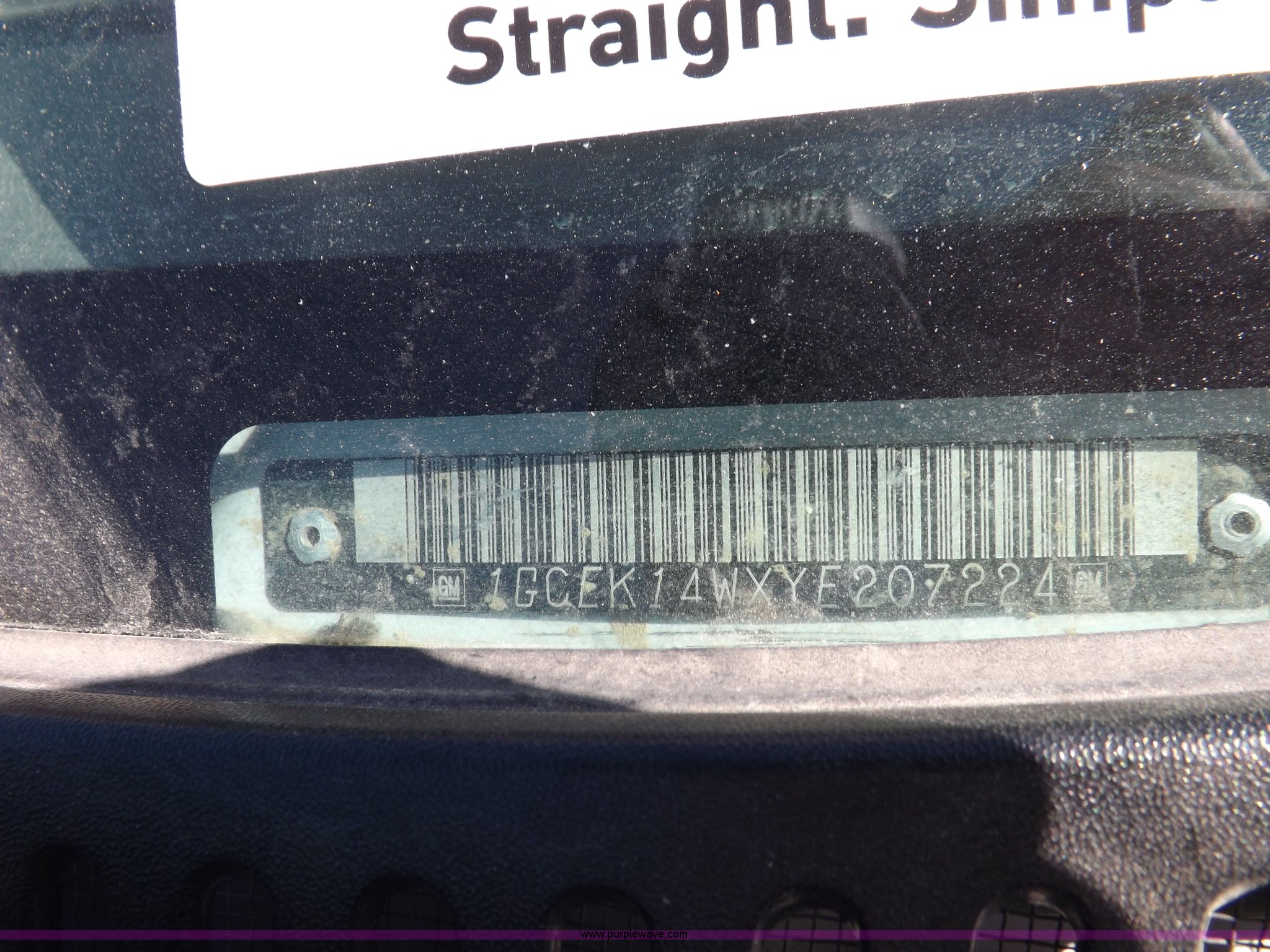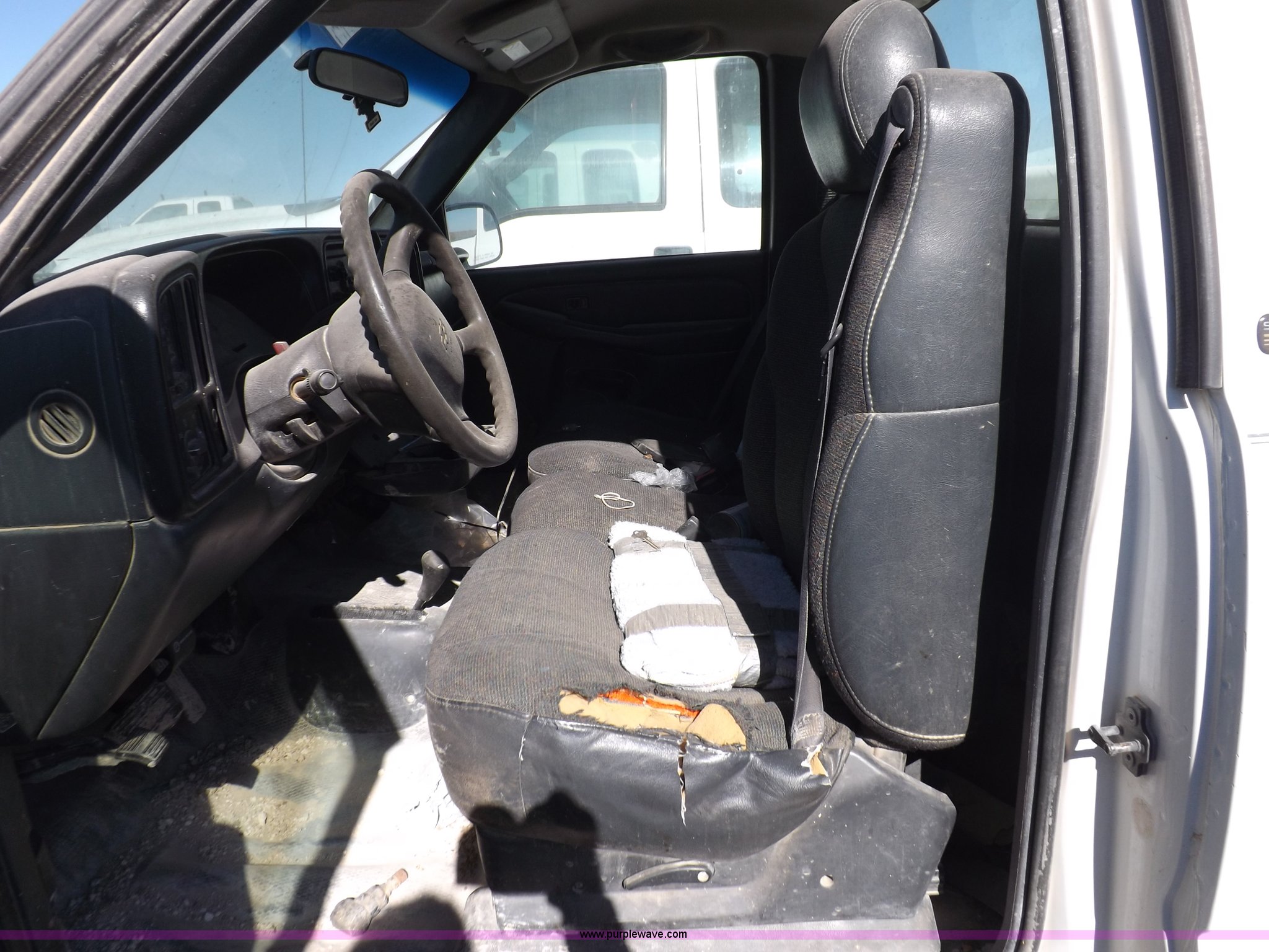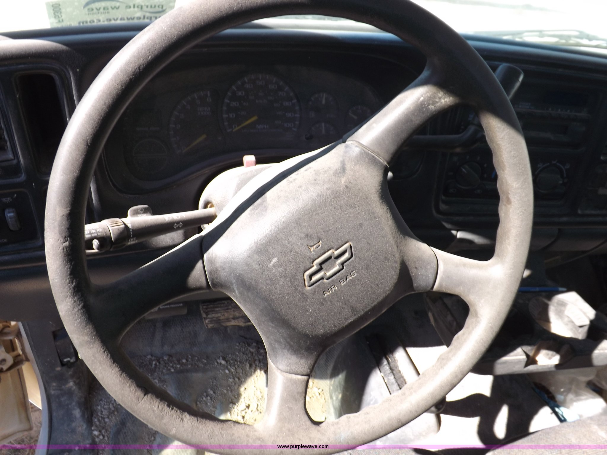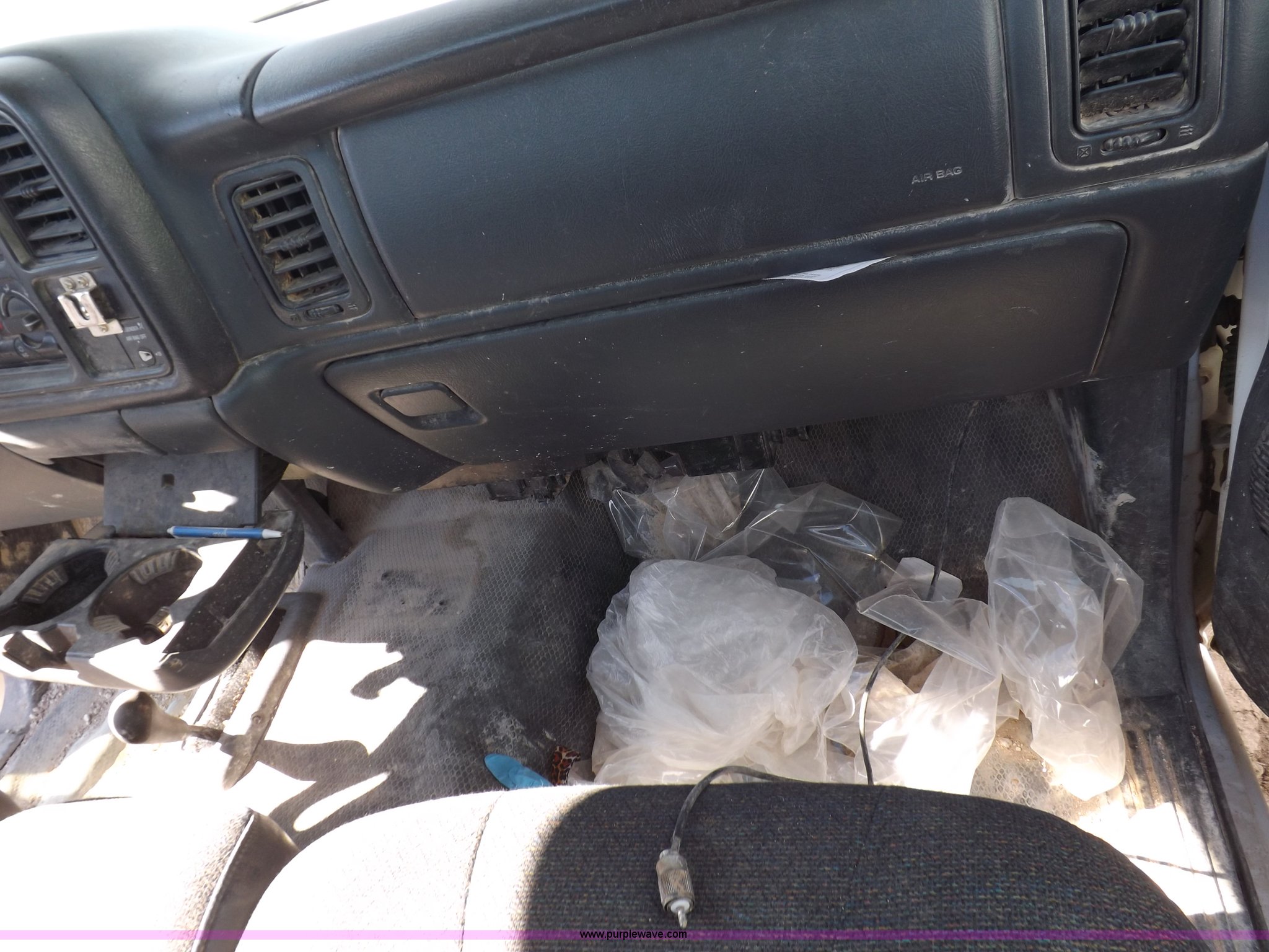Purple Wave is selling a used Passenger Vehicle in Oklahoma. This item is a 2000 Chevrolet Silverado 1500 pickup truck with the following: Mileage unknown, 4.3L V6 CPI gas engine, Automatic transmission, Four wheel drive, AC and heat, Tilt, Cruise, AM/FM/cassette, Manual windows and locks, Cloth interior, Long bed, Delta toolbox, L-shaped fuel tank with hand pump, Roof drilled for antenna, Interior/exterior cosmetic damage, Driver's door does not shut properly, Needs battery, Seaboard# 1003