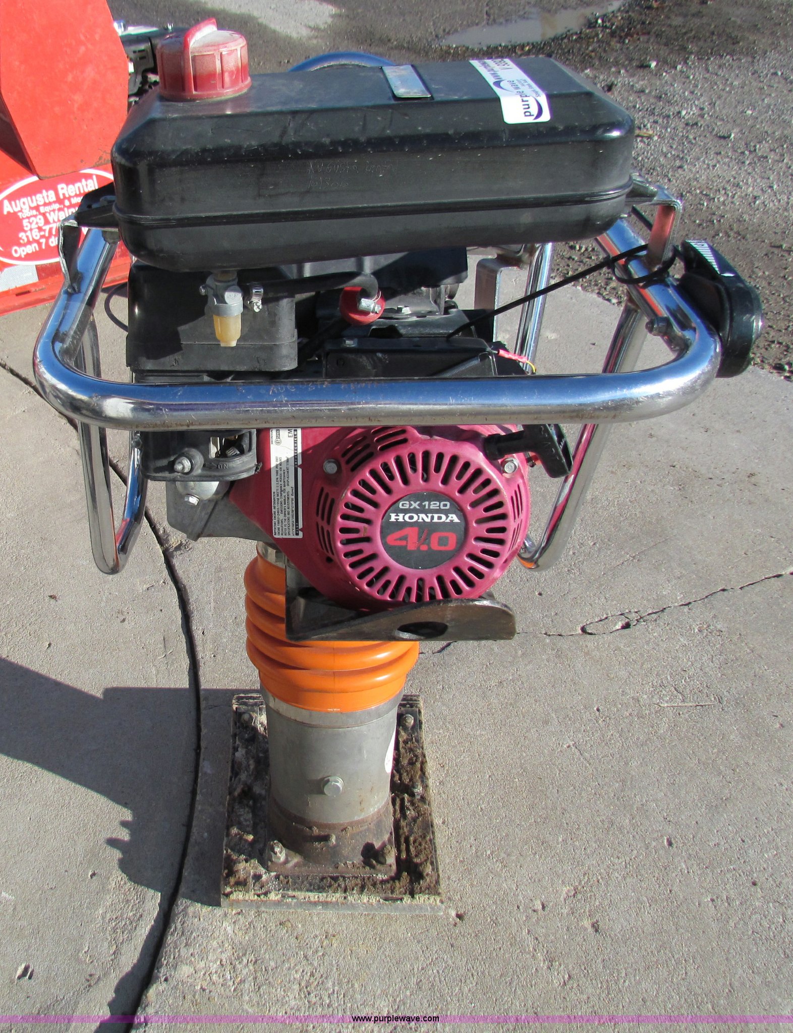 Belle RT66 jumping jack. Honda GX120 engine 4.0 HP, 152 lbs. base operating weight, Serial 161306. Shipping quotes available. Augusta Rental. 529 Walnut St. Augusta, KS 67010