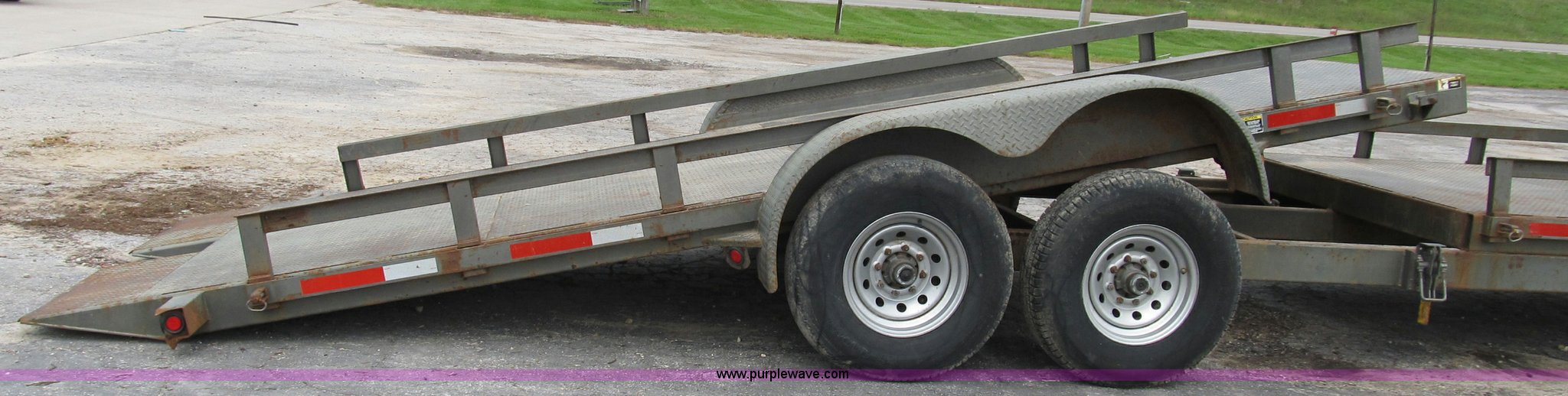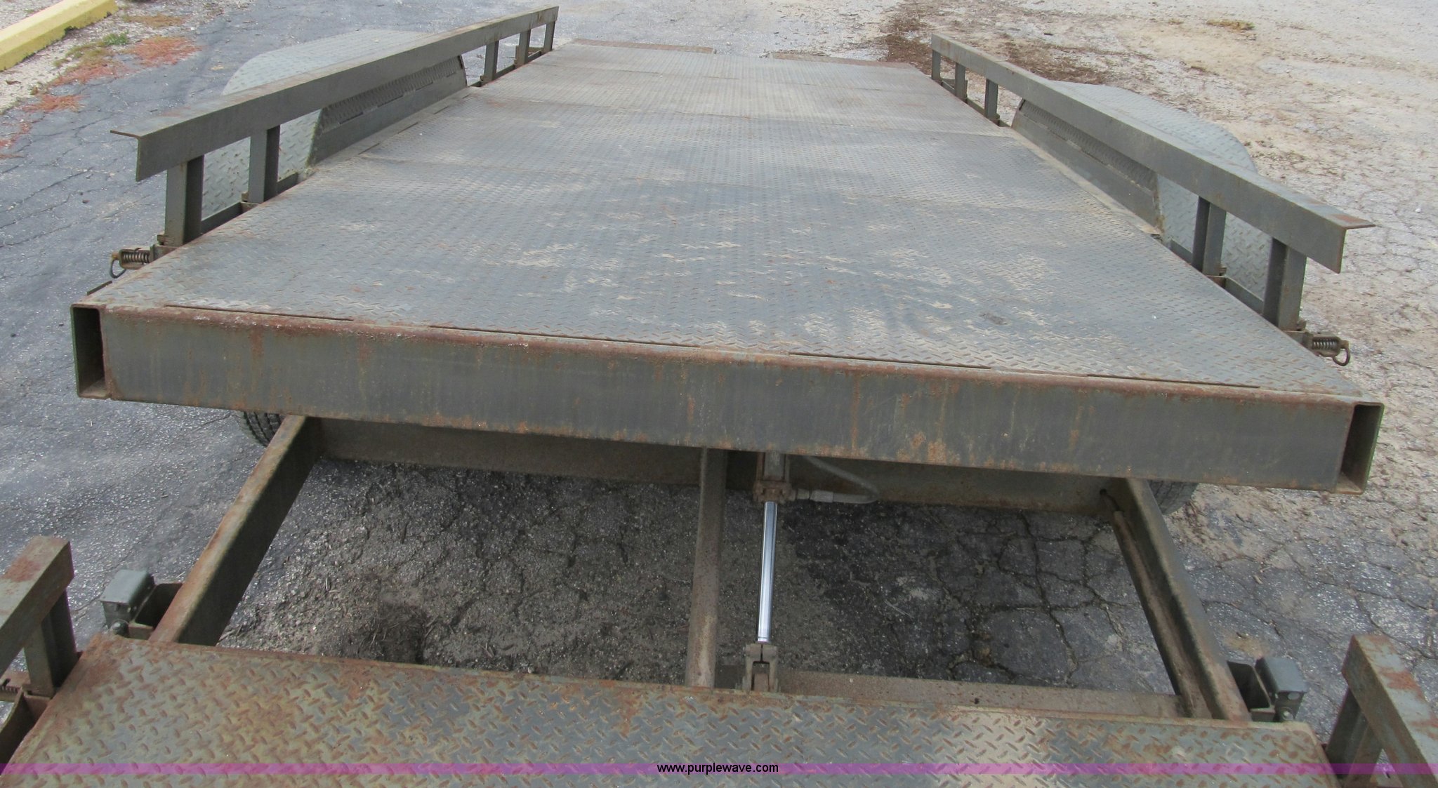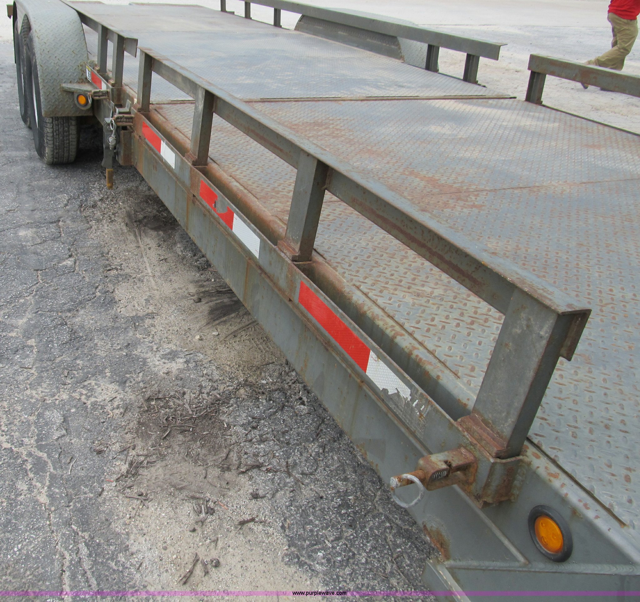 Purple Wave is selling a used Car or Utility Trailer in Missouri. This item is a 2008 Loadmaster 24' drop deck gooseneck trailer with the following: 78"W diamond plate steel deck, 16' tilt deck manual release, 8' stationary deck, Removable side rails, Electric brakes, Redline breakaway system, Spring loaded drop legs, Safety chains, LT235/85R16 tires, GVWR 14,000 lbs