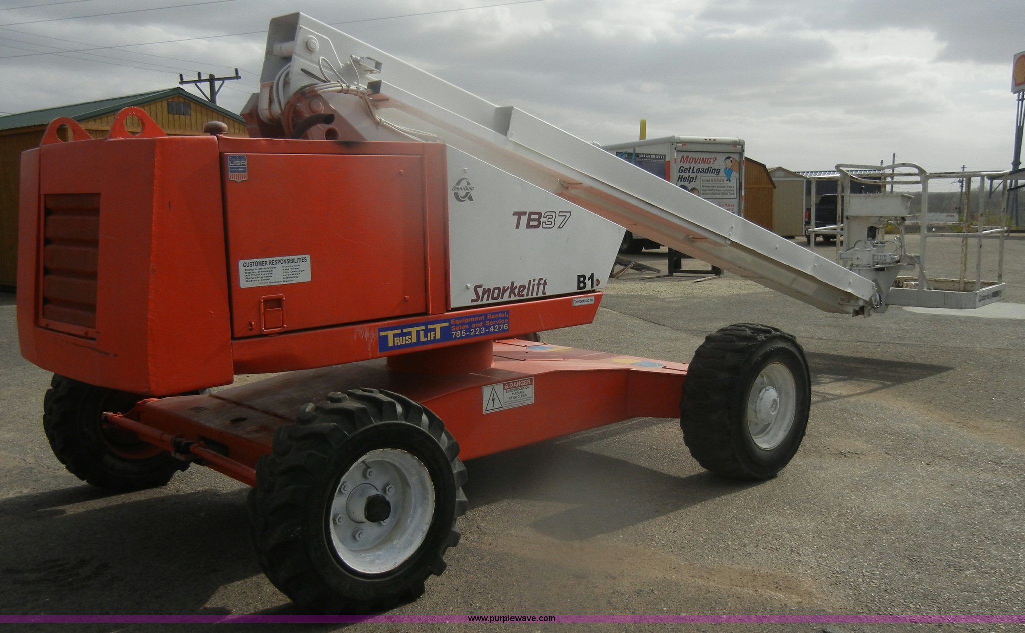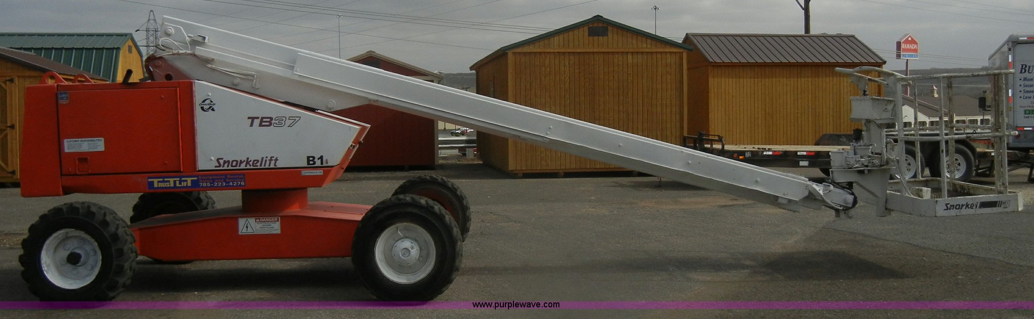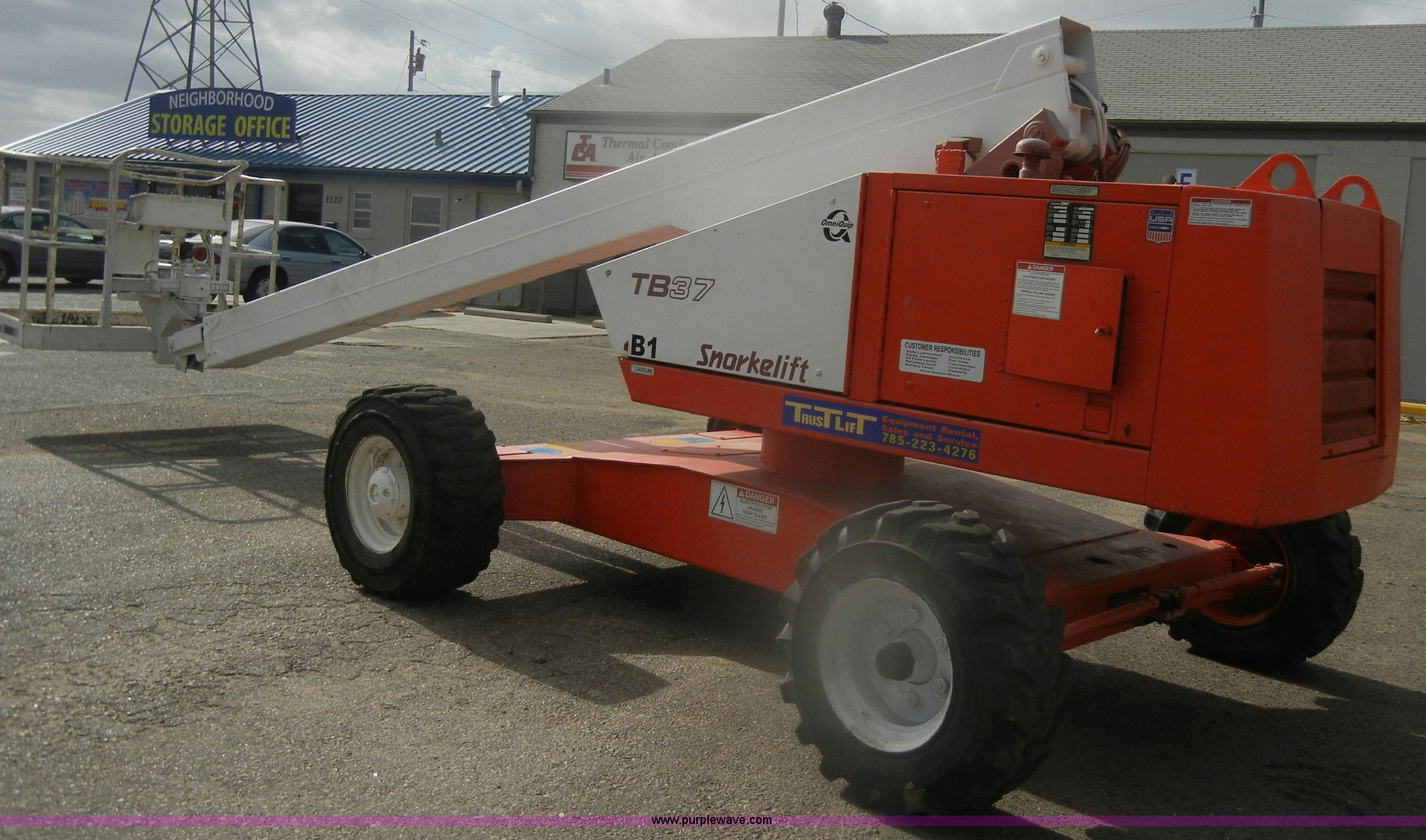 1999 Snorkel TB37 boom lift has sold in Junction City, Kansas for $7150. Item D4653 sold on December 13th, 2012.