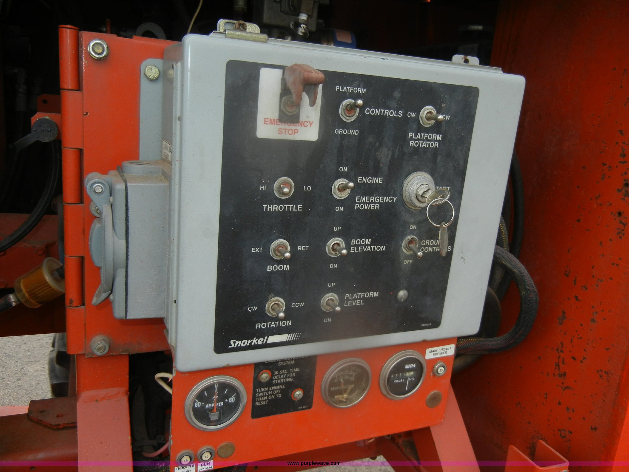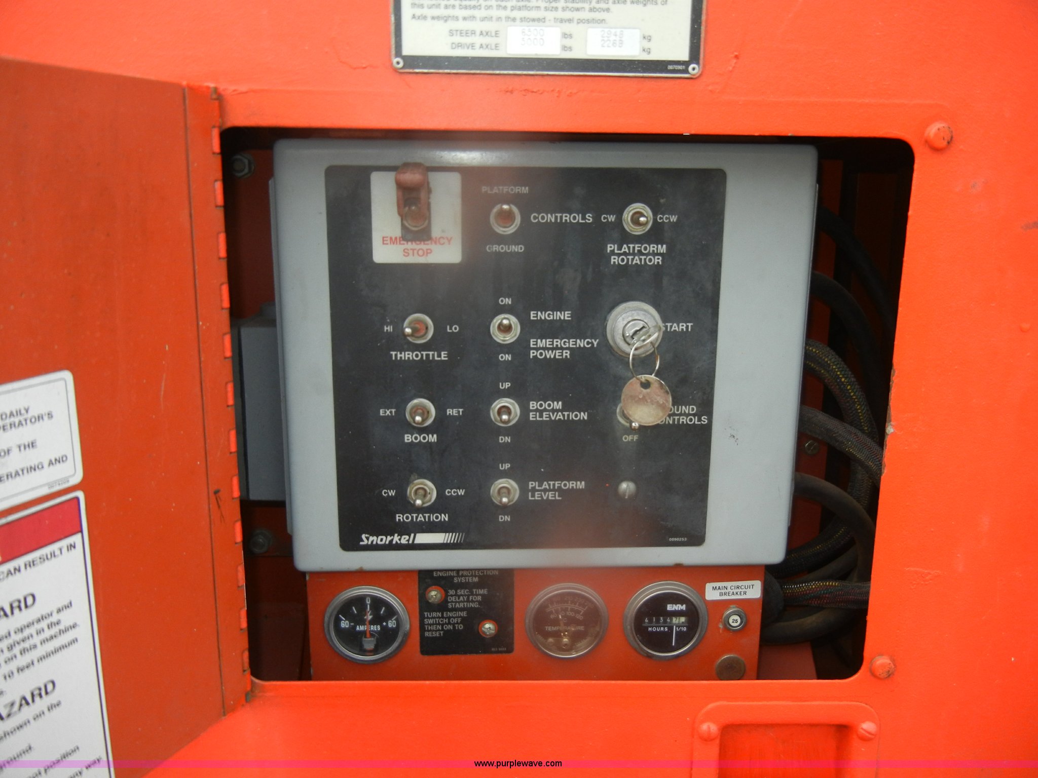 Purple Wave is selling a used Boom Lift in Kansas. This item is a 1999 Snorkel TB37 boom lift with the following: 4,134 hours on meter, Four cylinder 33 HP gas engine, 37' maximum platform height, 32' maximum platform reach, 30" x 60" platform, Platform outlet, 11,500 lbs operating weight, Serial 991526
