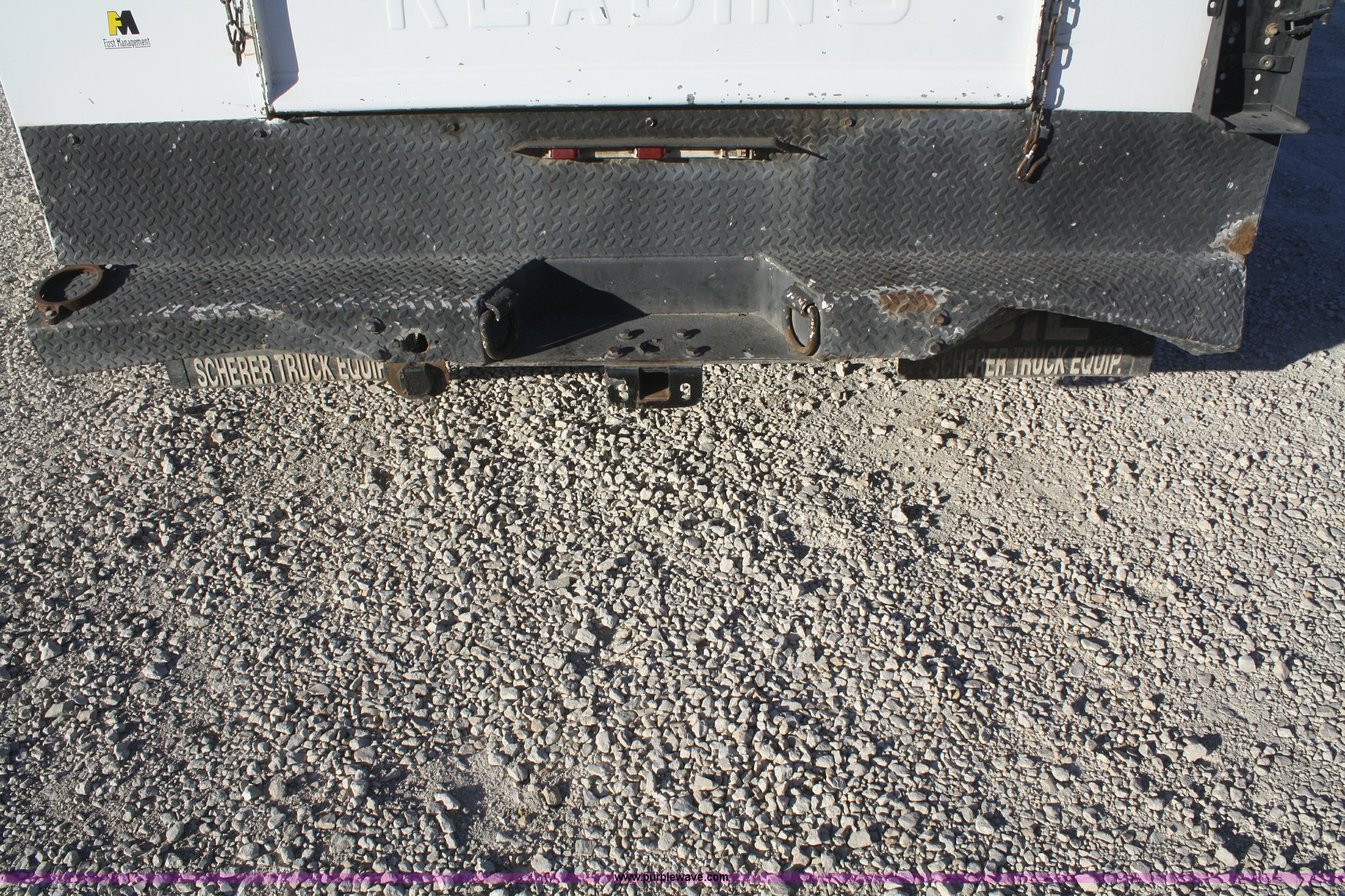 2000 Ford F350 XL Super Duty service truck. 166,691 miles on odometer, 7.3L V8 turbo diesel engine, Six speed manual transmission, AC and heat, AM/FM/cassette, Manual windows and locks, Vinyl interior, Tool chest, Reading 11' utility bed IMT 1014A crane Serial 1014A991036, Two ton block, Strobe light, Receiver hitch, 215/85R16 tires, Rear bumper damaged. Vehicle has an E-Title in the State of Kansas. Buyer will receive paper title within 30 days from verification of funds. 1FDWF36FXYEA98695. Shipping quotes available. First Management, Inc.. 429 N Iowa St. Lawrence, KS 66049