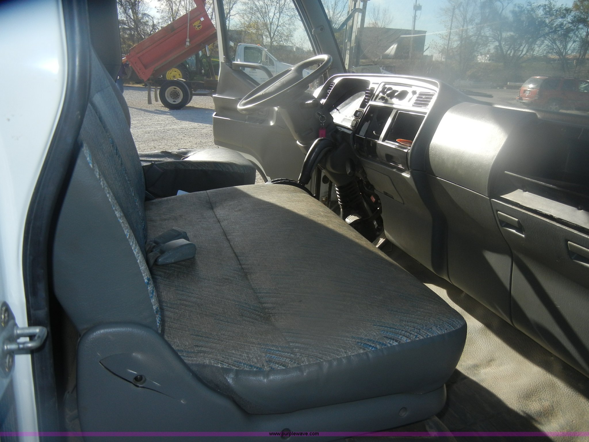 Purple Wave is selling a used Box Truck in Kansas. This item is a 2000 Mitsubishi Fuso FE box truck with the following: 115,437 miles on odometer, Mitsubishi 3.9L L4 turbo air cooled diesel engine, Automatic transmission, AC and heat, Tilt, Power windows and locks, Cloth interior, 1999 Freight Star box, 8'L x 198"W, Wood flooring, Roll-up door, Maxon lift gate, Model TE20B, 2,000 lb capacity, Serial 0998255C,, 215/85R16 tires, GVWR 14,500 lbs, FAWR 5,360 lbs, RAWR 9,880 lbs, Interior cosmetic damage, Stereo missing