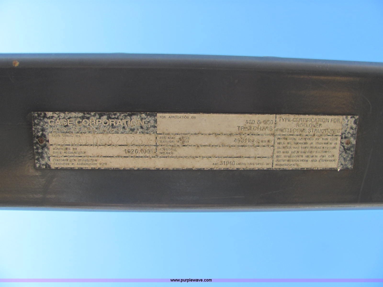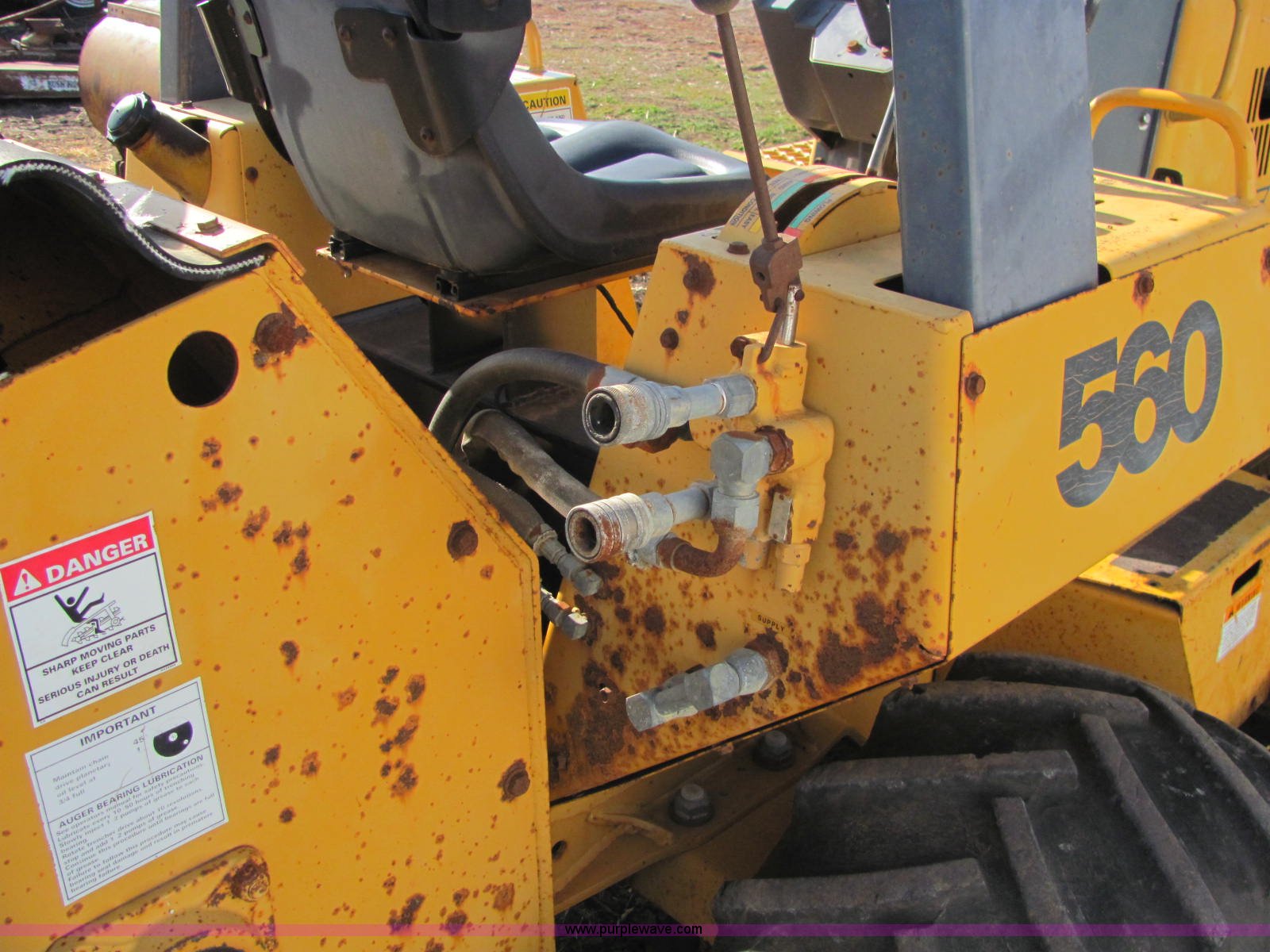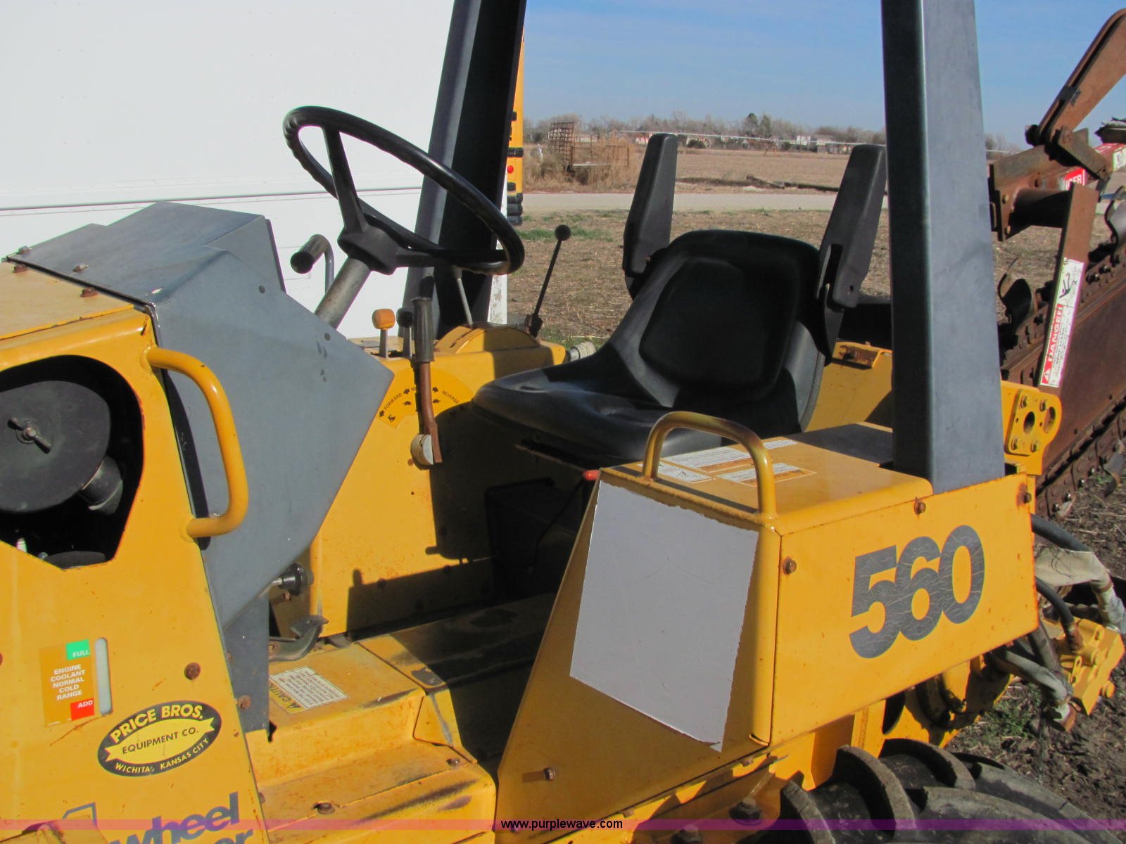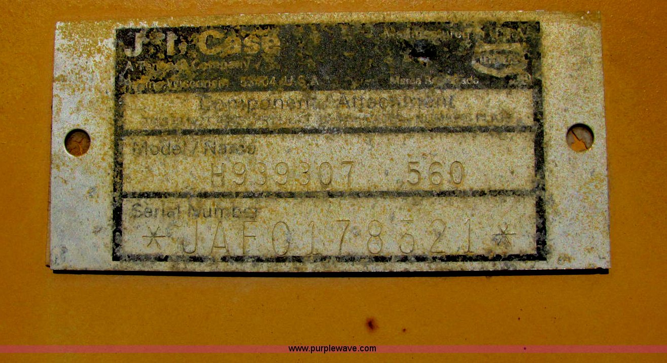 Purple Wave is selling a used Trencher or Rock Saw in Kansas. This item is a 1996 Case 560 trencher with the following: 1,825 hours on meter, Kubota V2203 four cylinder diesel engine, 46 HP, Hydrostatic transmission, ROPS bar, Four wheel steering, Rear auxiliary hydraulics, 72" six-way blade, D125 backhoe, Model H939218, Four stick hydraulic control, 17" four tooth bucket, Hydraulic outriggers, 560 trencher, Model H939307560, Two stick hydraulic control, 72" maximum trenching depth, 6" trenching width, 12" diameter side discharge auger, Serial JAF0178321, 7,000 lbs. base operating weight, Serial JAF0166246