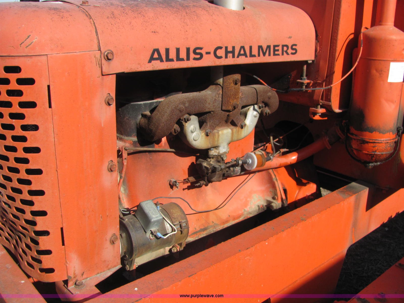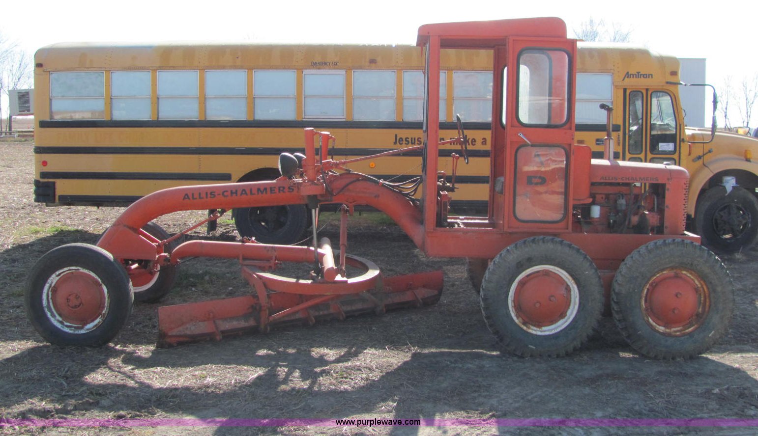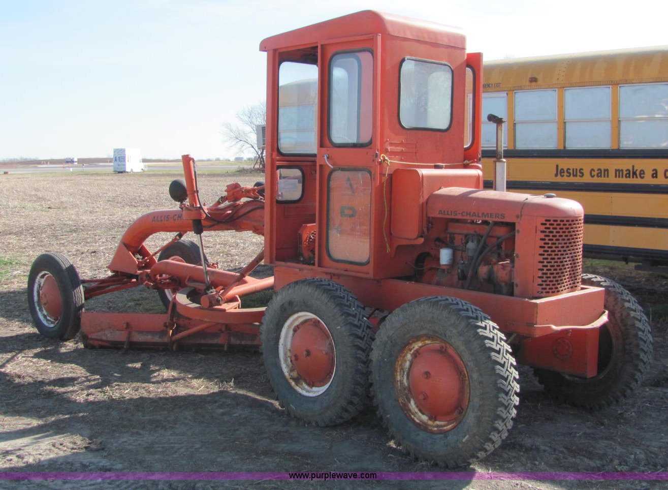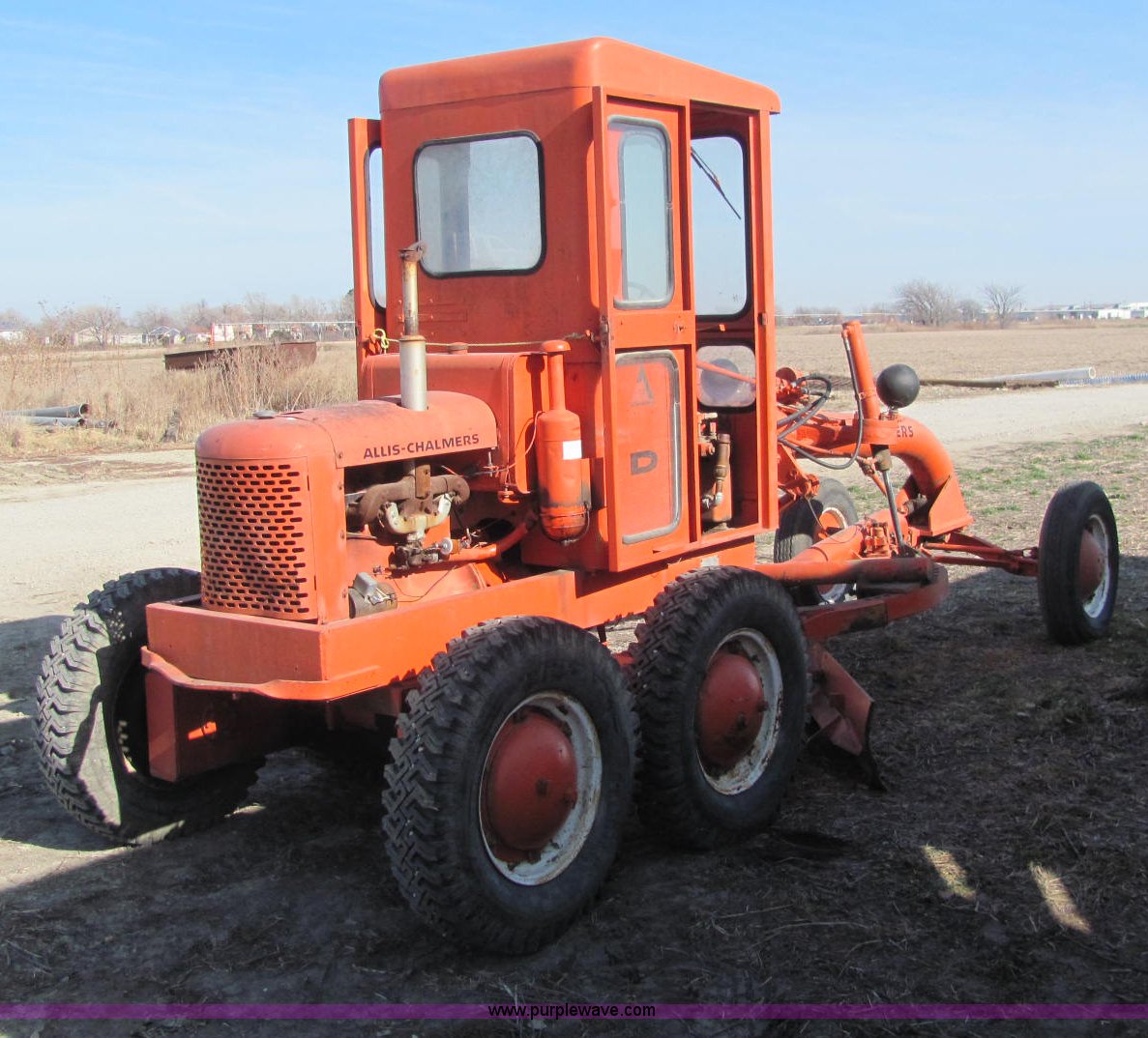 Purple Wave is selling a used Motor Grader in Kansas. This item is a 1952 Allis Chalmers D motor grader with the following: Four cylinder gas engine, Four speed transmission, Two stick hydraulic control, 10' moldboard, Work lights, Windshield wipers, 7.50-20 front tires, 8.25-20 rear tires, 8,800 lbs. base operating weight, Cracked glass, Serial D-2326