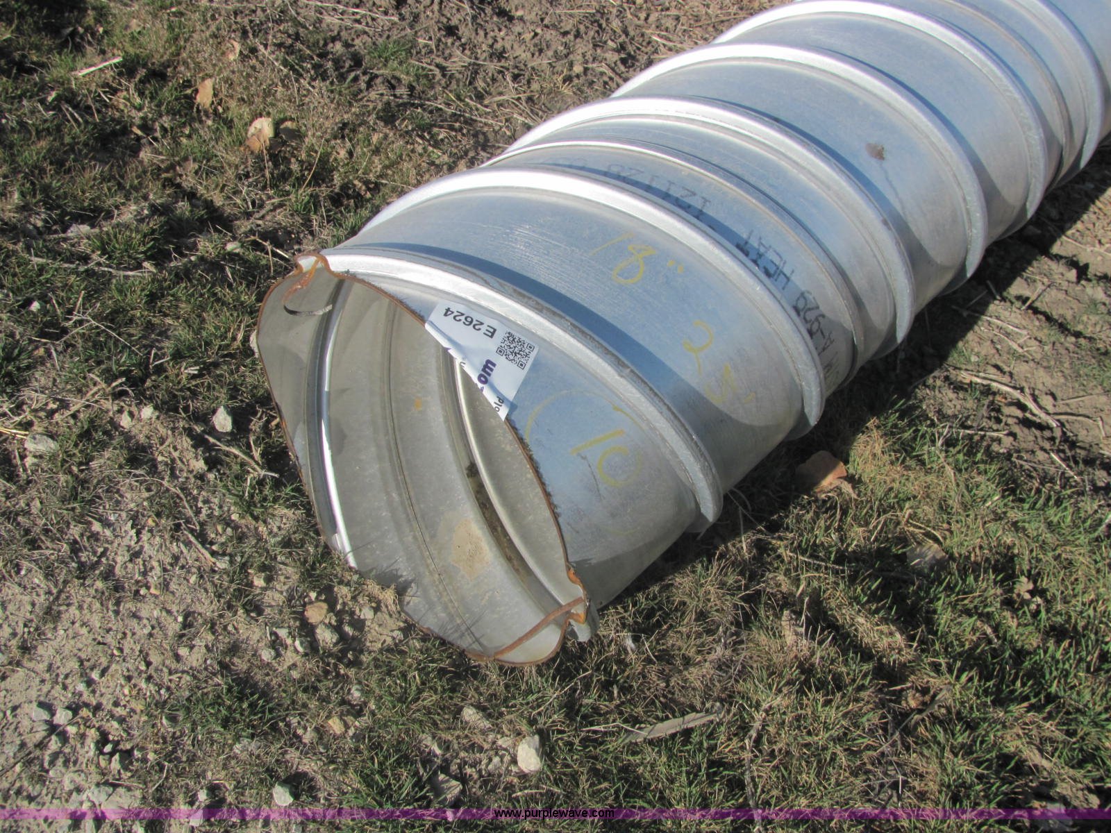 Purple Wave is selling a used Pipe in Kansas. This item is a Ultra Flo pipe aluminized T2 LS 16 gauge culvert with the following: 25'L x 18"D, Splice available but not included