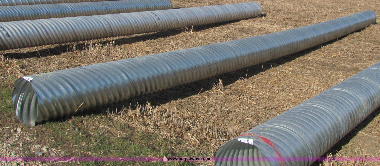 Purple Wave is selling a used Pipe in Kansas. This item is a H/C pipe 2 2/3 x 1/2 galvanized LS 16 gauge culvert with the following: 36'L x 18"D, Splice available but not included
