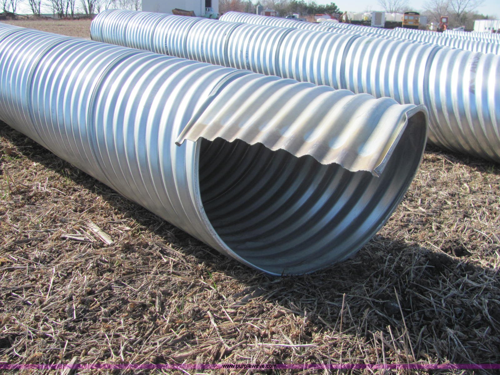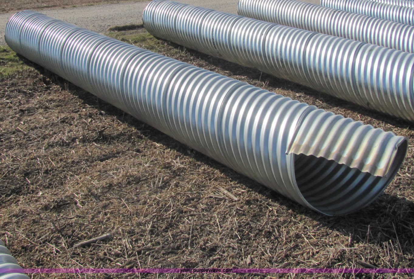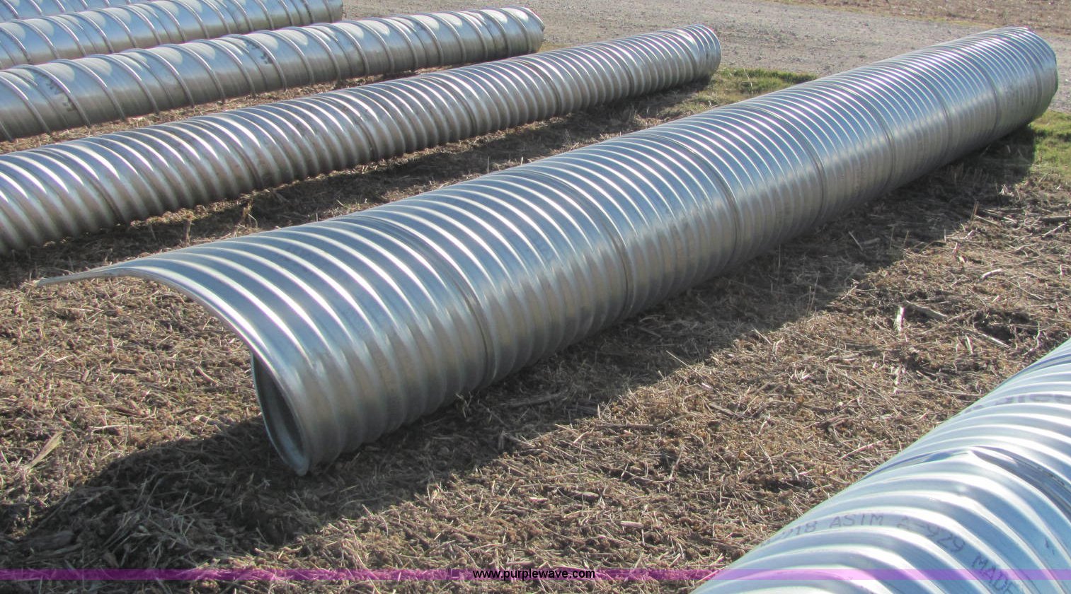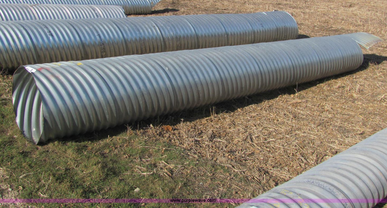 Purple Wave is selling a used Pipe in Kansas. This item is a H/C pipe 2 2/3 x 1/2 galvanized LS 16 gauge culvert with the following: 18'L x 24"D, Splice available but not included