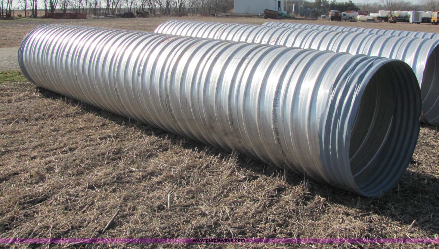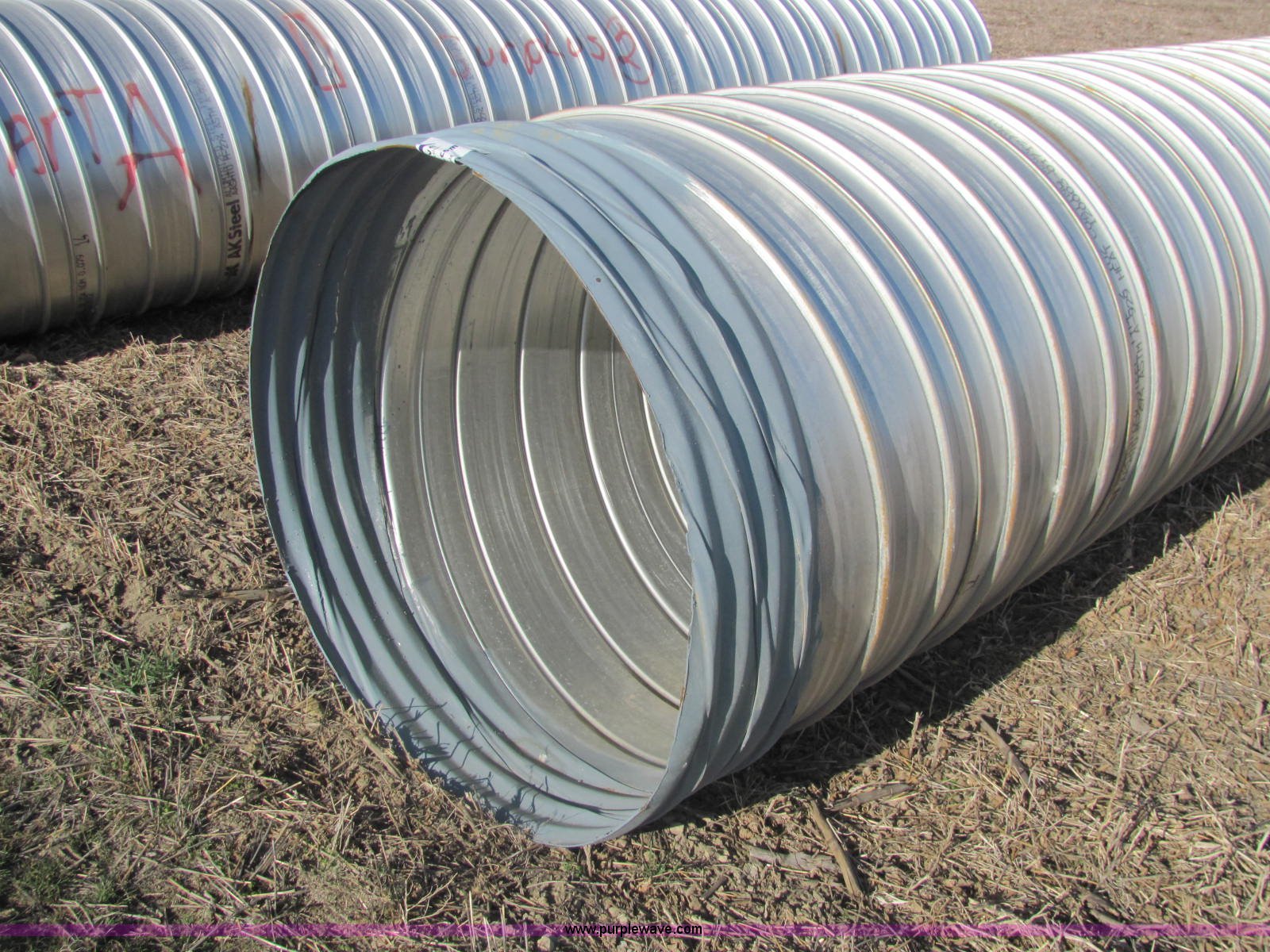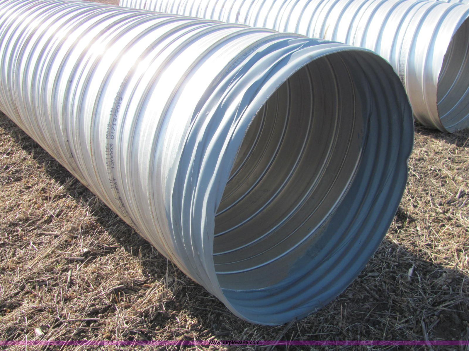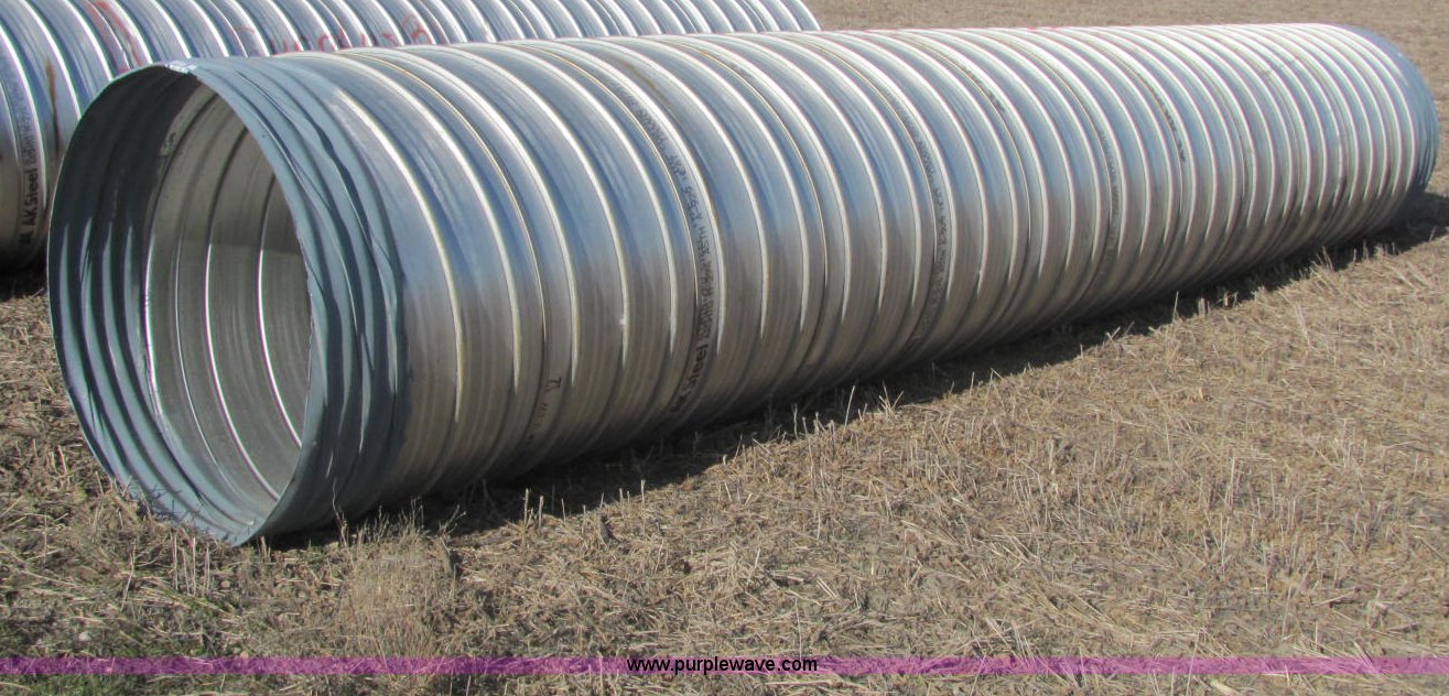 Purple Wave is selling a used Pipe in Kansas. This item is a Ultra Flo pipe aluminized T2 LS 14 gauge culvert with the following: 24'L x 48"D, Splice available but not included