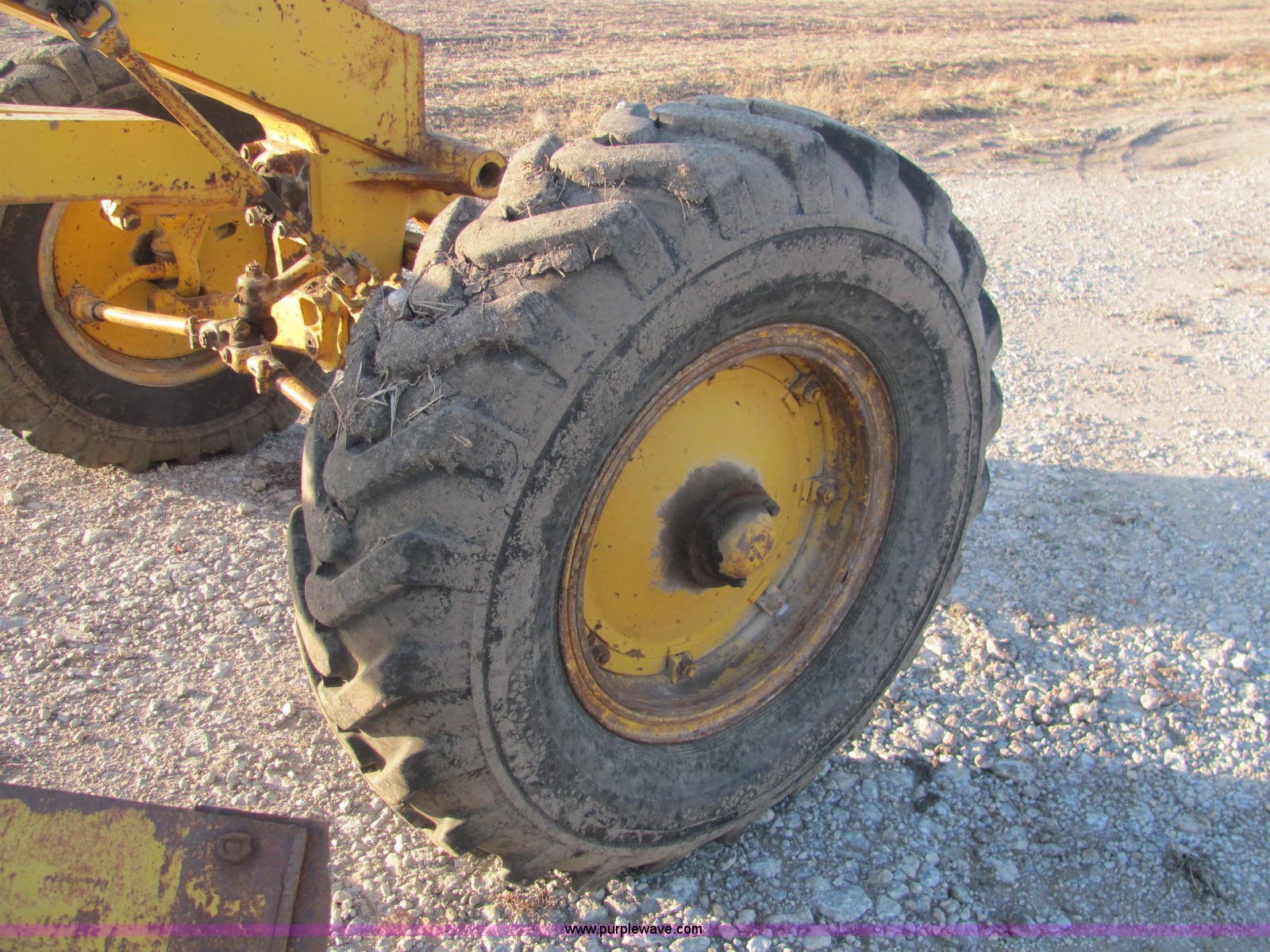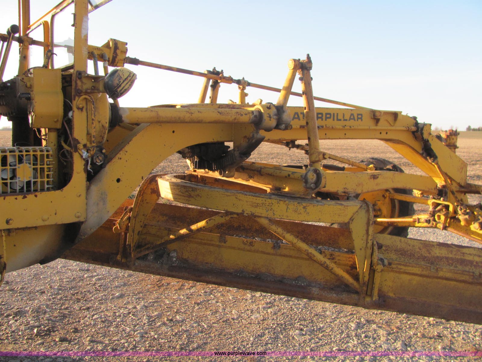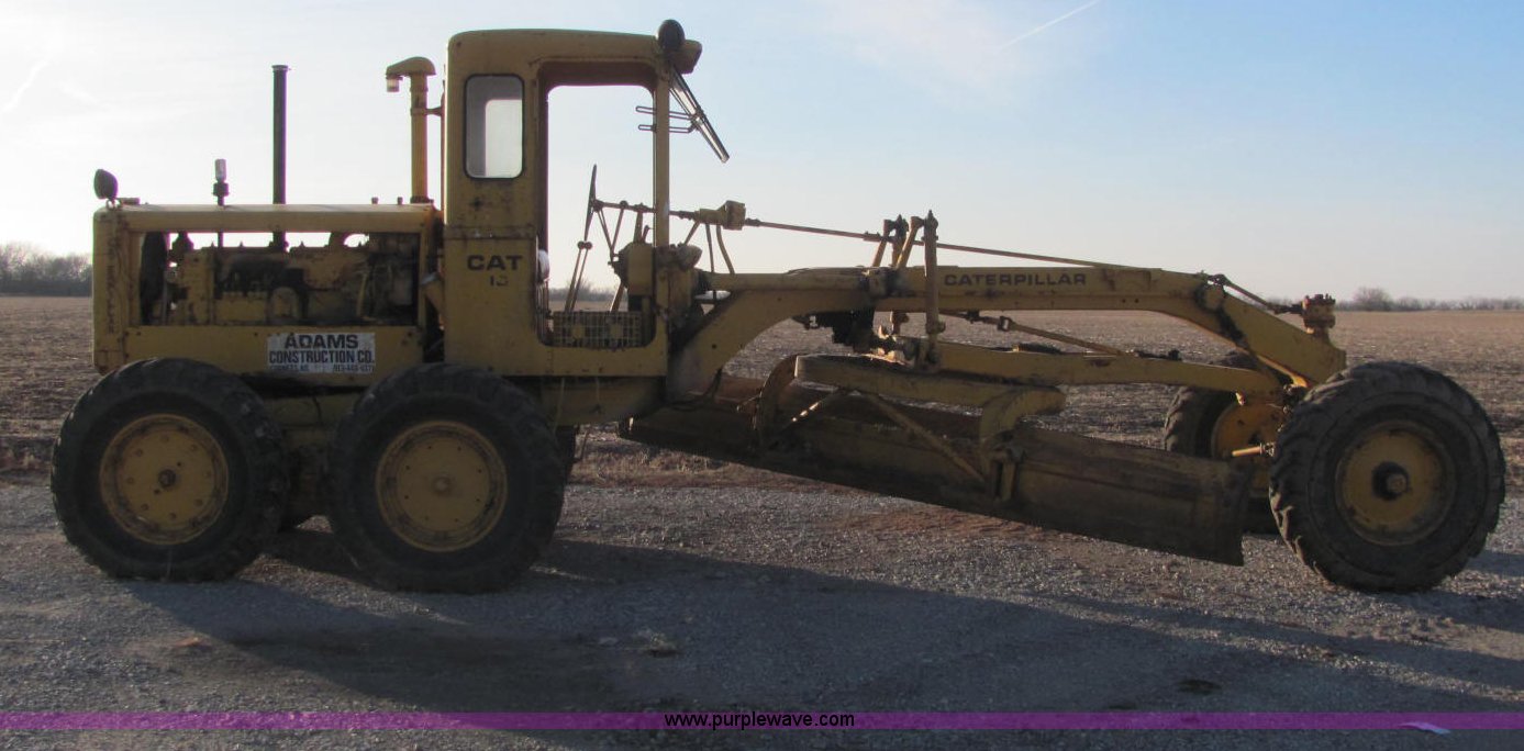 Purple Wave is selling a used Motor Grader in Kansas. This item is a Caterpillar 12 motor grader with the following: Hours unknown, Caterpillar six cylinder diesel engine, Manual transmission, 6F-2R gears, Enclosed cab, Six stick valve control, Work lights, Pin hitch, 13.00-24 tires, Pony motor needs work, Pull start only, Serial 8T6413