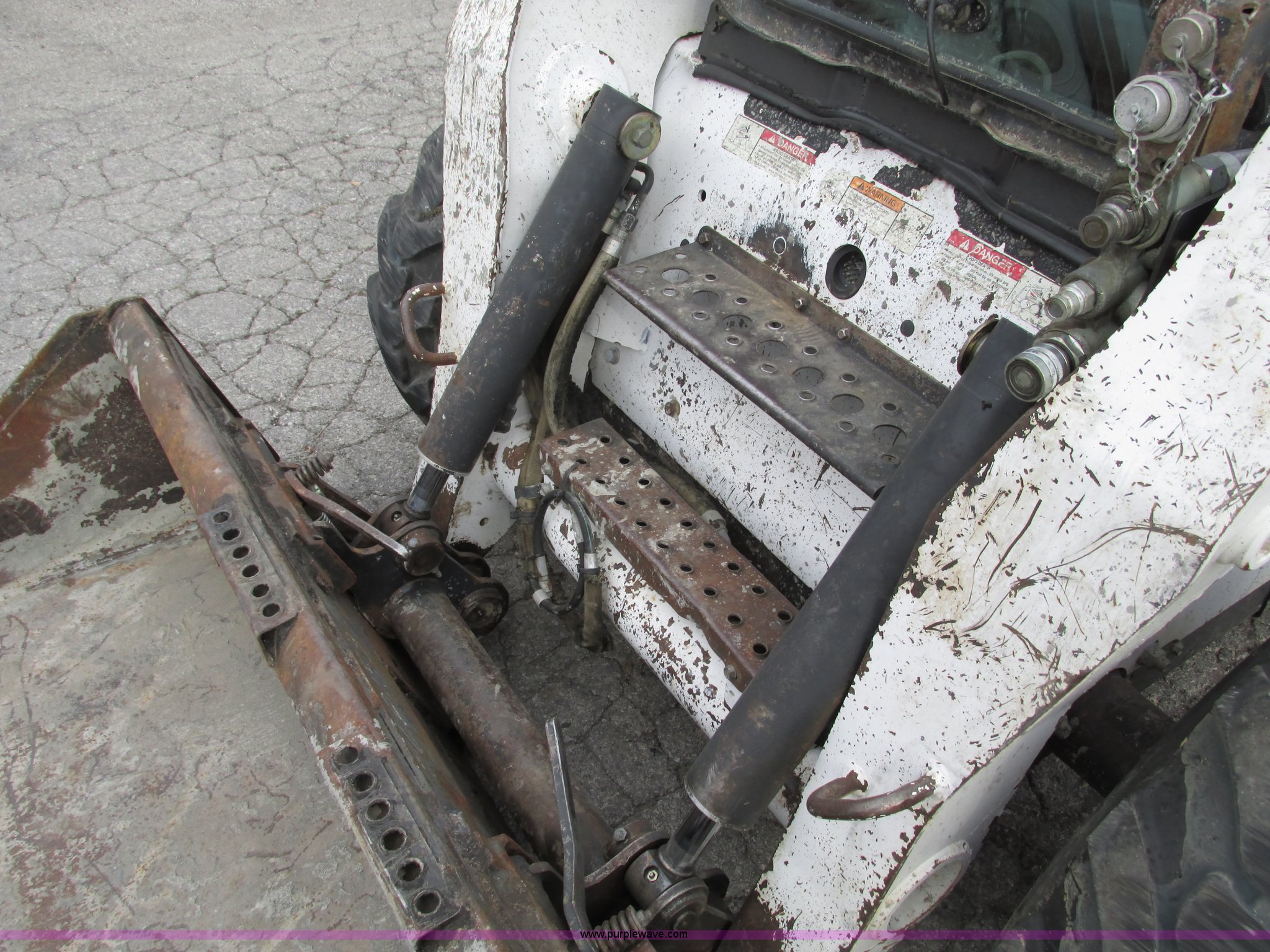 Purple Wave is selling a used Skid Steer Loader in Missouri. This item is a 2003 Bobcat S220 Turbo High Flow skid steer with the following: 7,201 hours on meter, Kubota V3300 3.3L four cylinder turbo diesel engine, Serial 3N57, Hydrostatic transmission, Suspension seat, Front windshield wiper, Backup alarm, High flow front auxiliary hydraulics, (5) high auxiliary outputs, (7) prong plug, (14) prong plug, Hand and foot loader controls, 73"W smooth edge bucket, 12/16.5 tires, Serial 523211755