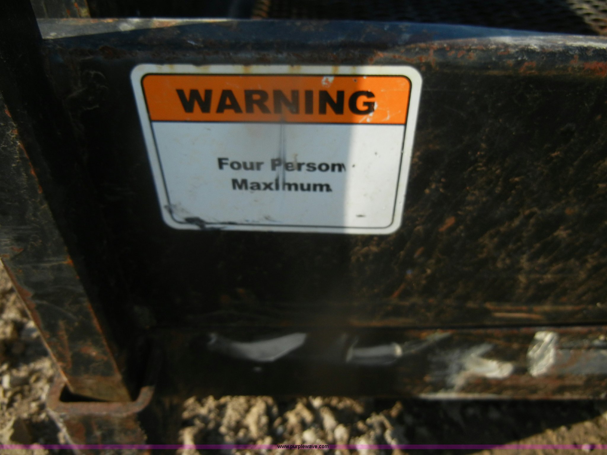 Purple Wave is selling a used Rough Terr. Forklift Attach. in Kansas. This item is a Haugen telehandler man cage with the following: Four person max capacity, 2,000 lb capacity, Removable sides, 115" x 54" x 53"