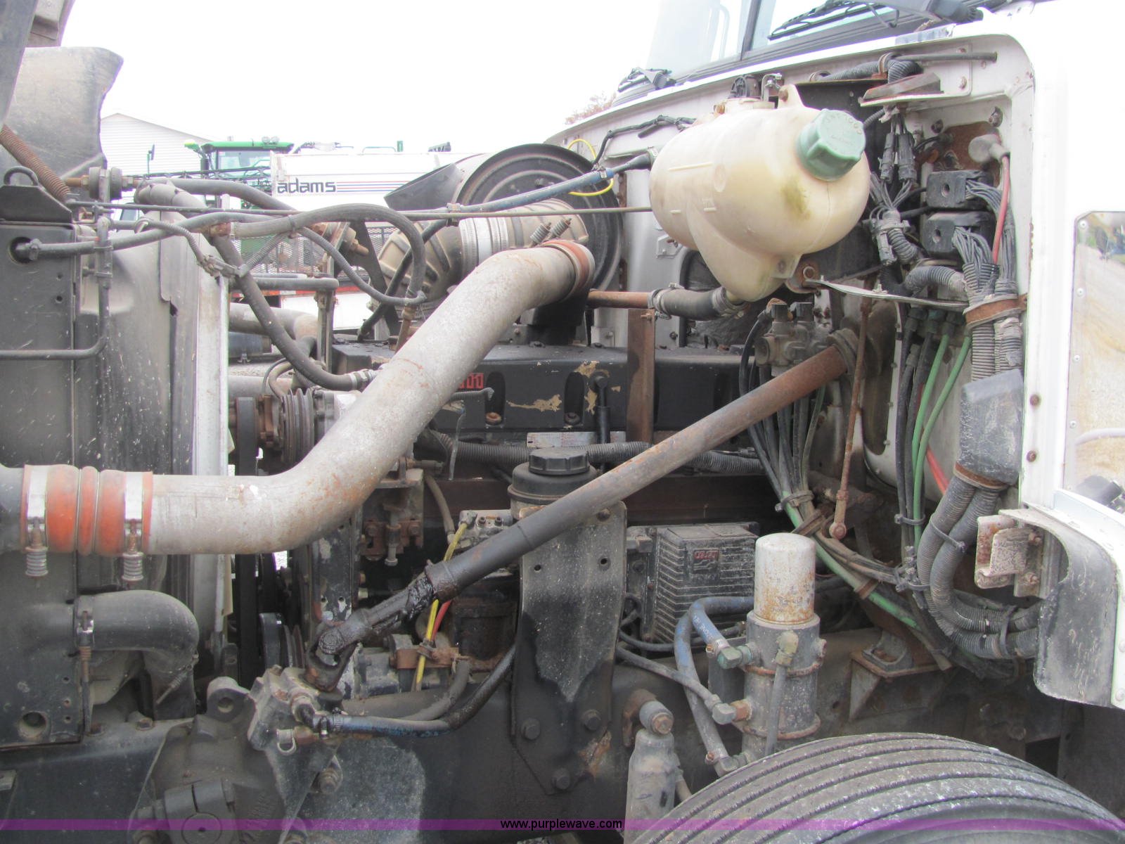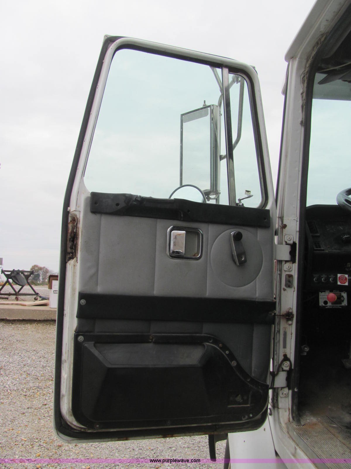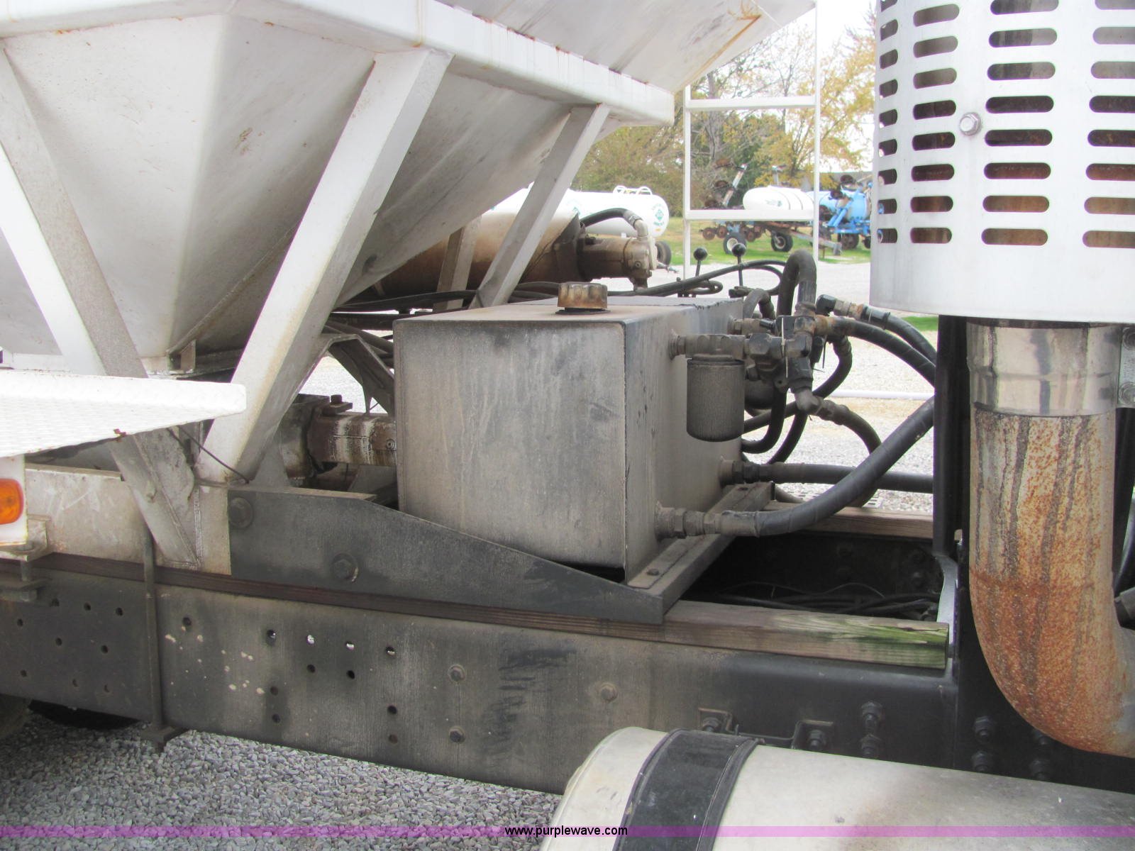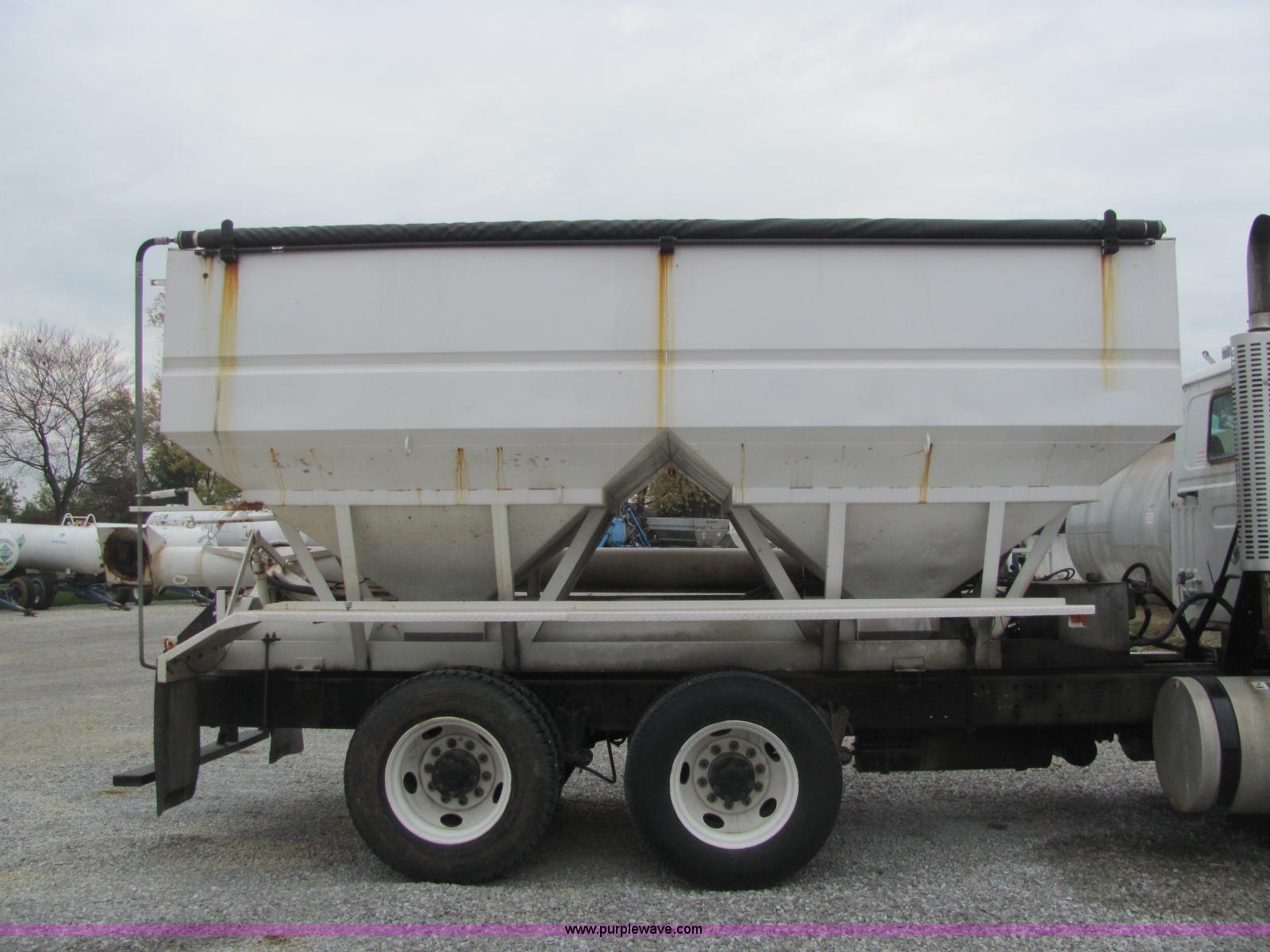 Purple Wave is selling a used Fertilizer or Feed Delivery Truck in Kentucky. This item is a 1995 Volvo White GMC WG fertilizer tender truck with the following: 458,896 miles on odometer, Cummins M11 10.8L L6 330 HP diesel engine, Serial 34744320, Eaton Fuller 10 speed manual transmission, AC and heat, Cruise, AM/FM/CD, Air suspension seat, Heated mirrors, Passenger daylight door, Block heater, Kenwood CB radio, 16' Dual bin tender, 17'L x 10"D auger, Access ladders, Agri cover SRT-2 rollover tarp, Differential lock, Fifth wheel lock, Dual fuel tanks, 100 and 130 gallon, PTO, Wet kit, Air suspension, Air brakes, 295/75R22.5 tires, 158" wheel base, 50,000 lbs GVWR, 12,000 lbs FAWR, 19,000 lbs IAWR, 19,000 lbs RAWR