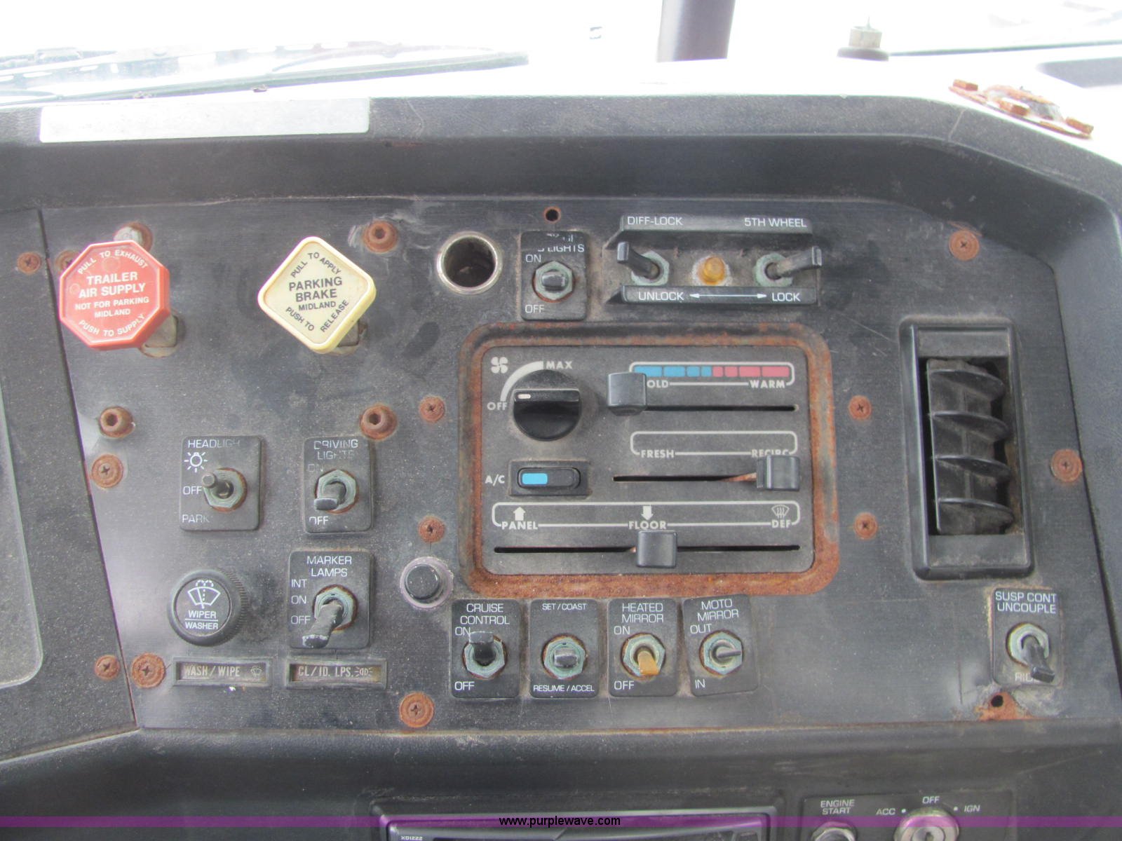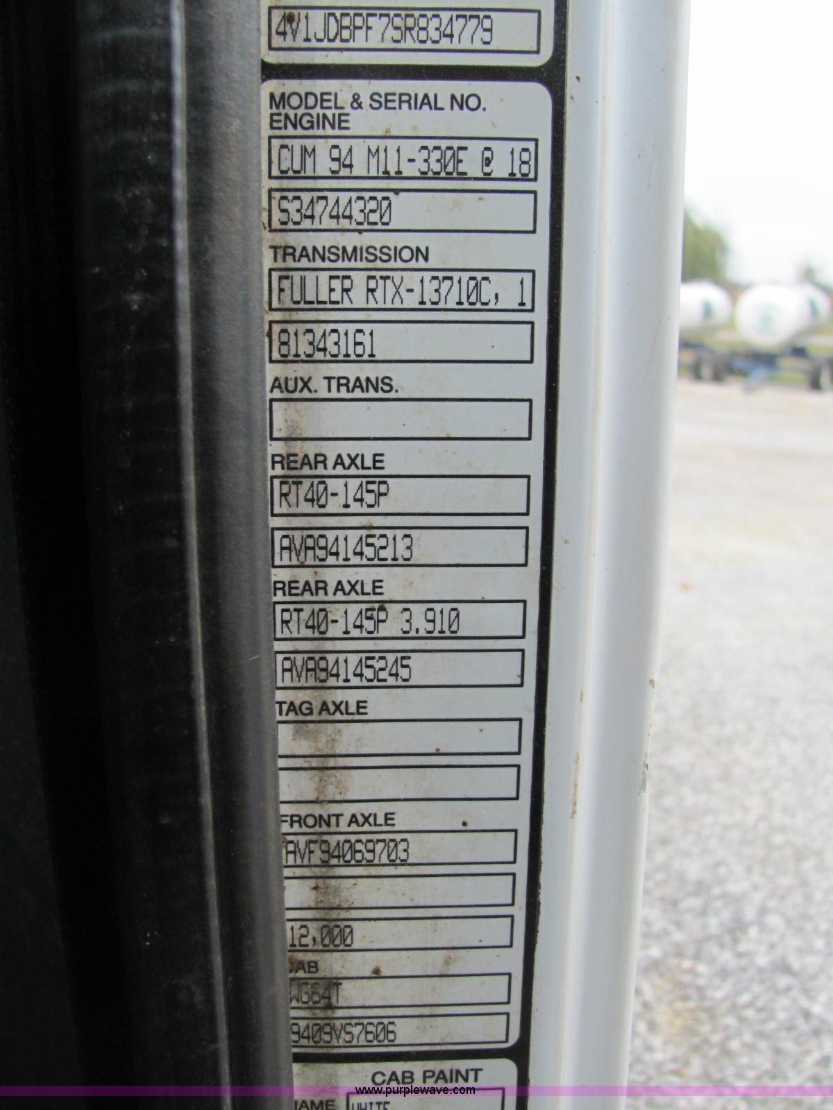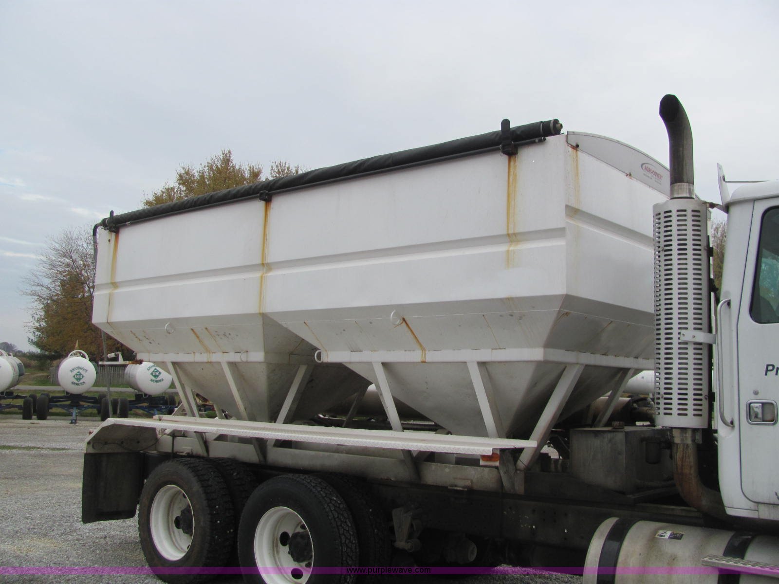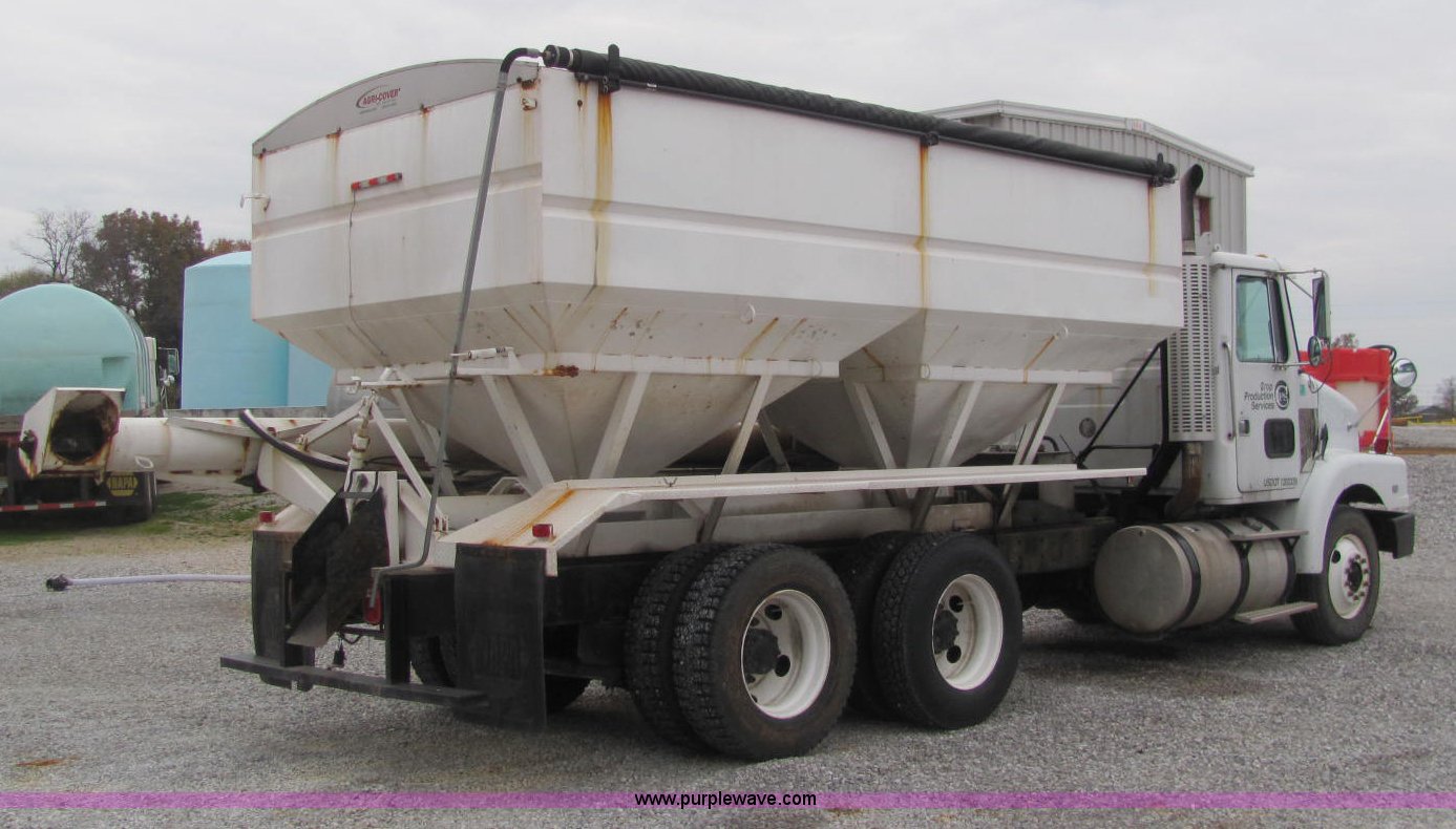 Purple Wave is selling a used Fertilizer or Feed Delivery Truck in Kentucky. This item is a 1995 Volvo White GMC WG fertilizer tender truck with the following: 458,896 miles on odometer, Cummins M11 10.8L L6 330 HP diesel engine, Serial 34744320, Eaton Fuller 10 speed manual transmission, AC and heat, Cruise, AM/FM/CD, Air suspension seat, Heated mirrors, Passenger daylight door, Block heater, Kenwood CB radio, 16' Dual bin tender, 17'L x 10"D auger, Access ladders, Agri cover SRT-2 rollover tarp, Differential lock, Fifth wheel lock, Dual fuel tanks, 100 and 130 gallon, PTO, Wet kit, Air suspension, Air brakes, 295/75R22.5 tires, 158" wheel base, 50,000 lbs GVWR, 12,000 lbs FAWR, 19,000 lbs IAWR, 19,000 lbs RAWR