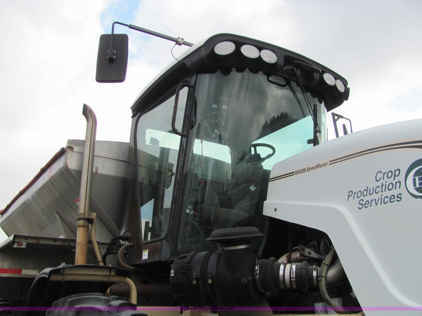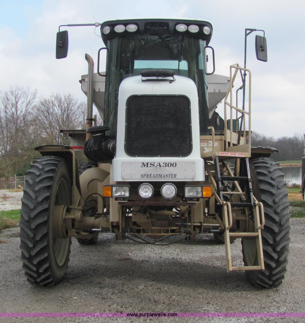 Purple Wave is selling a used Applicator Self Propelled in Kentucky. This item is a 2006 Mertz MSA300 Spreadmaster spreader with the following: 2,485 hours on meter, Cummins QSC six cylinder 305 HP diesel engine, Automatic transmission, AC and heat, AM/FM/cassette, Raven Industries Smartrax guidance system, Cruise, PTO, Wet kit, Work lights, Wipers, Air suspension, Air brakes, Hightway Equipment New Leader G4 spreader, Model L3020G4-13, Dual spinners, 24"W linked conveyor, Hydraulic operation, 60' lime and 90' fertilizer spread pattern, Serial 123726, 100 gallon fuel tank, GoodYear 380/85R46 tires, Serial MSA0601024, Unit# 40191