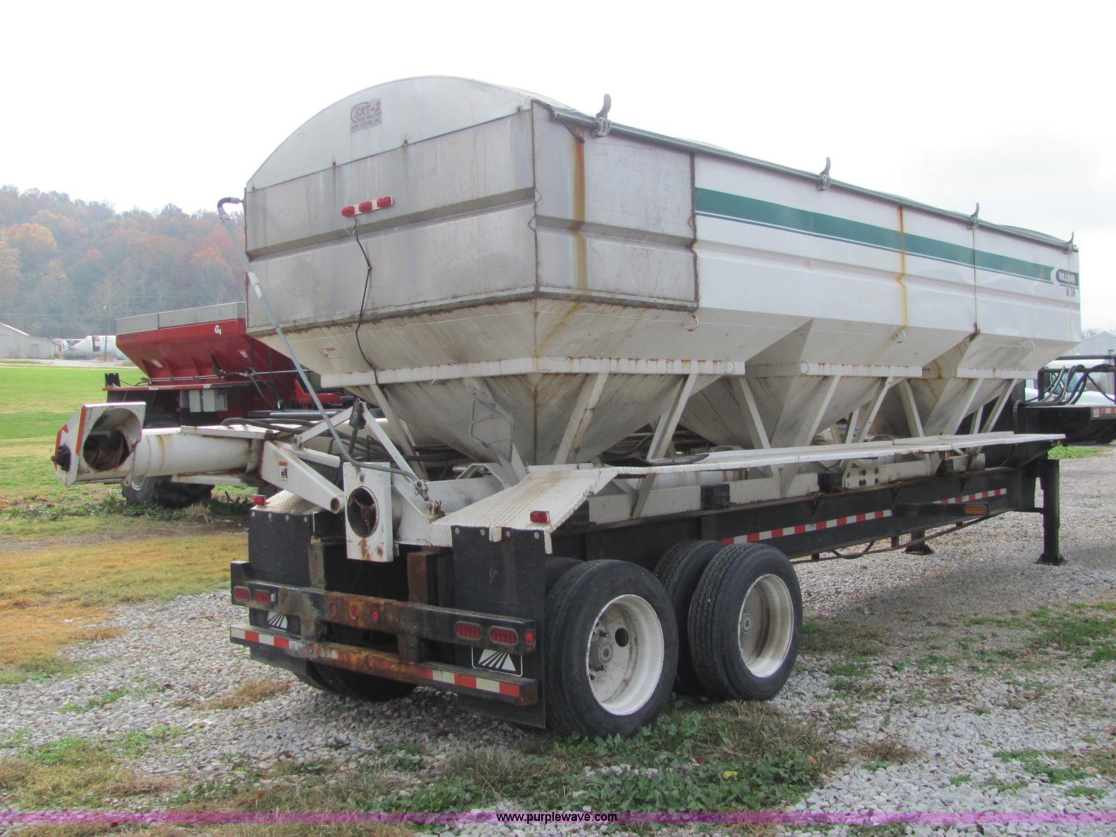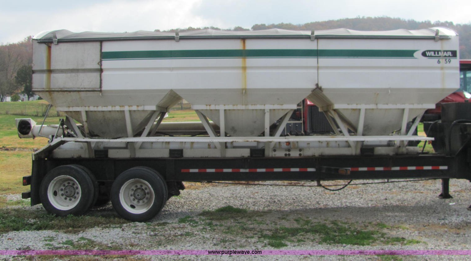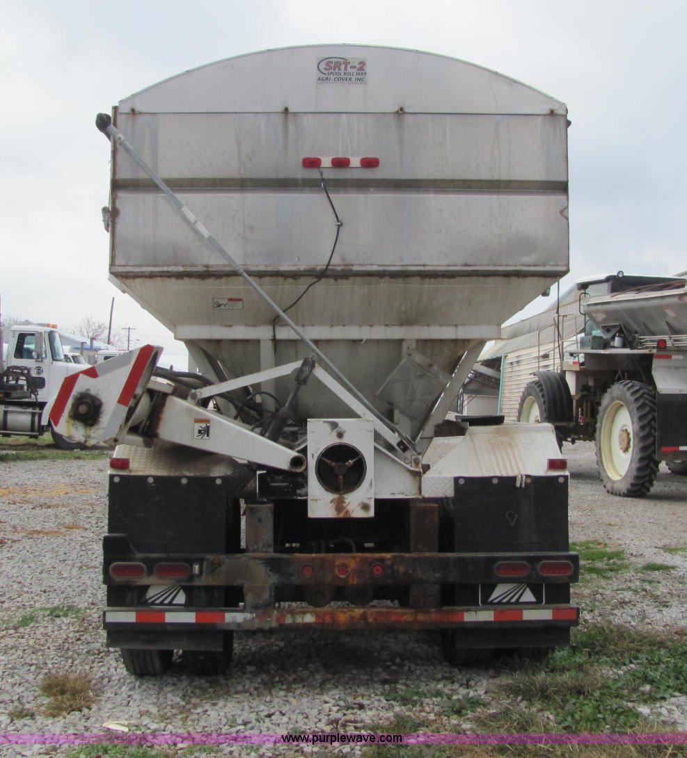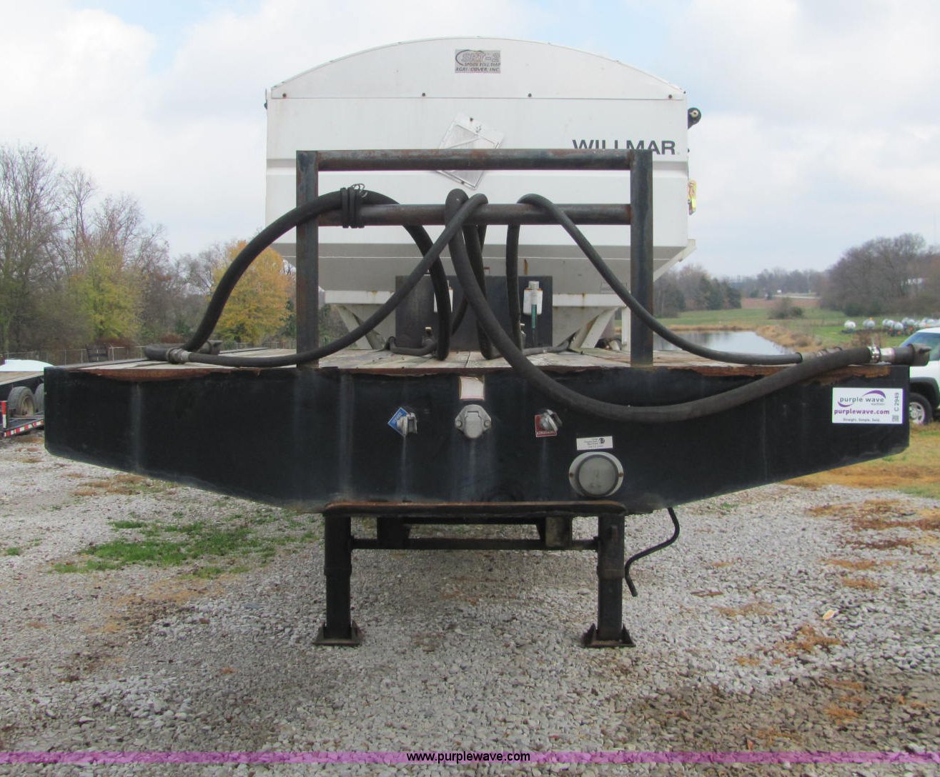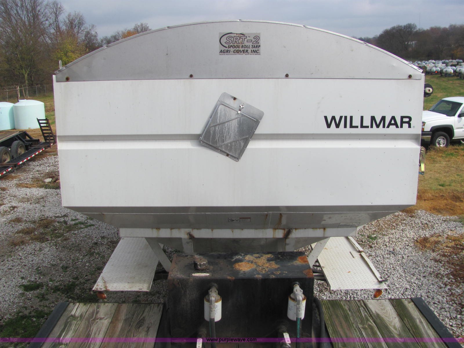 Purple Wave is selling a used Fertilizer or Feed Delivery Trailer in Kentucky. This item is a 2008 B-B Behnke tandem axle tender trailer with the following: 25'L x 8'W main deck, 11'L x 8'W top deck, 36'L overall length, Steel frame with wood decking, Manual landing gear, Spring suspension, Air brakes, Willmar Side Shooter 24 tender, 24'L, 24 ton capacity, Triple bin, 17'L x 10"D auger, (4) lever hydraulic control, Agri-Cover SRT-2 roll over tarp, 255/70R22.5 tires, 45,000 lbs GVWR, Serial 22049