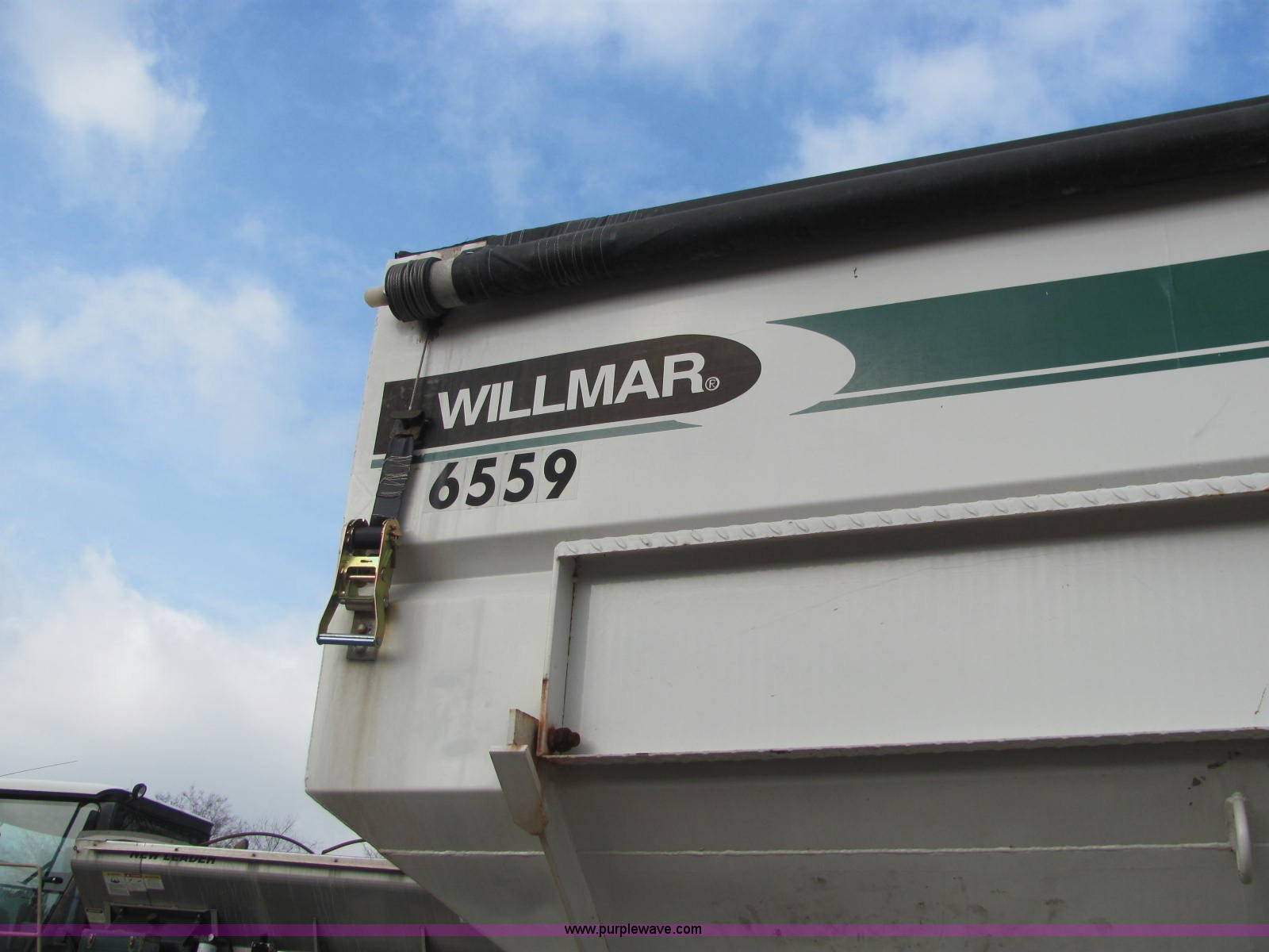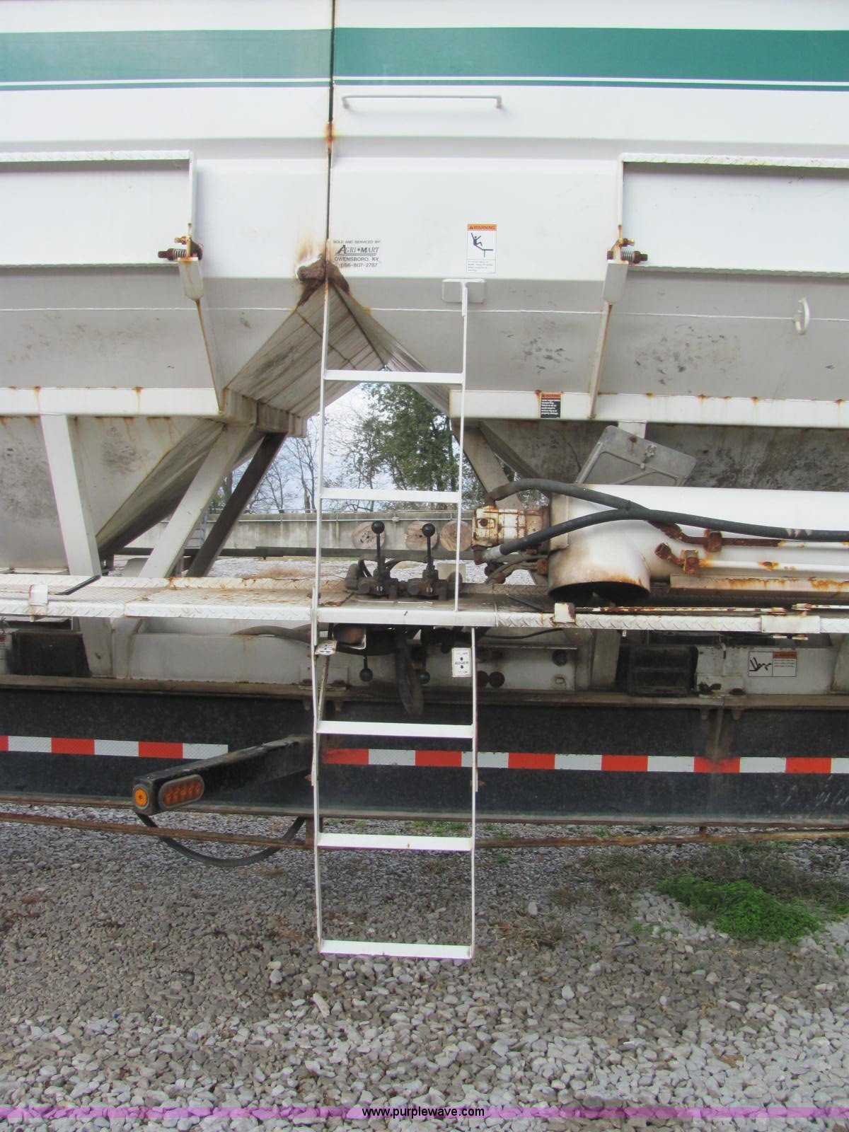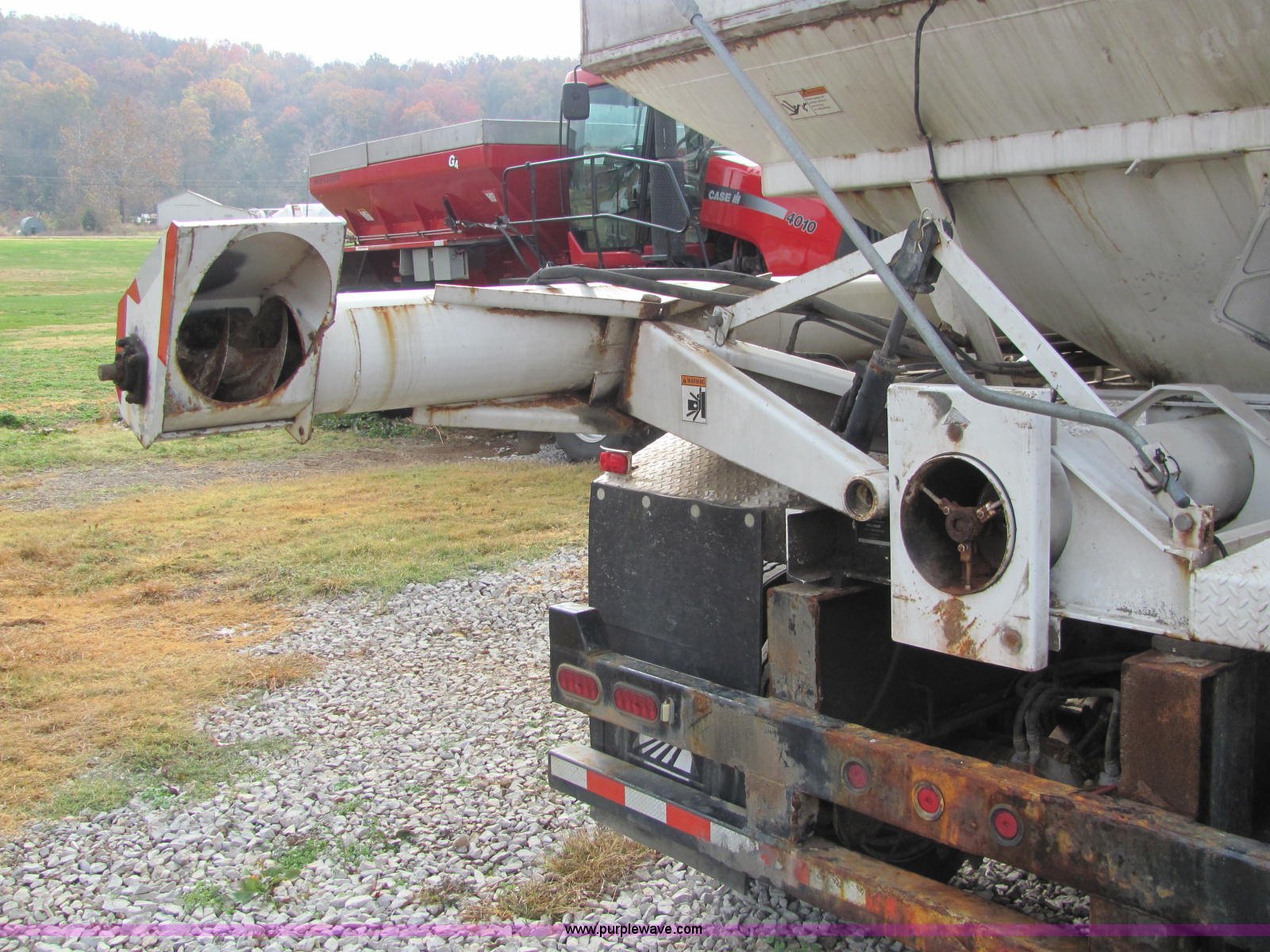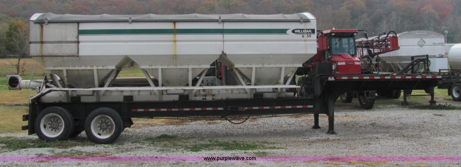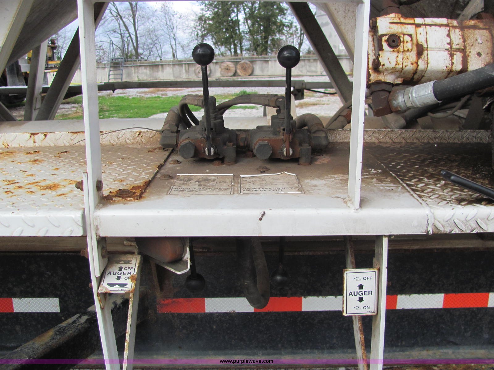 Purple Wave is selling a used Fertilizer or Feed Delivery Trailer in Kentucky. This item is a 2008 B-B Behnke tandem axle tender trailer with the following: 25'L x 8'W main deck, 11'L x 8'W top deck, 36'L overall length, Steel frame with wood decking, Manual landing gear, Spring suspension, Air brakes, Willmar Side Shooter 24 tender, 24'L, 24 ton capacity, Triple bin, 17'L x 10"D auger, (4) lever hydraulic control, Agri-Cover SRT-2 roll over tarp, 255/70R22.5 tires, 45,000 lbs GVWR, Serial 22049
