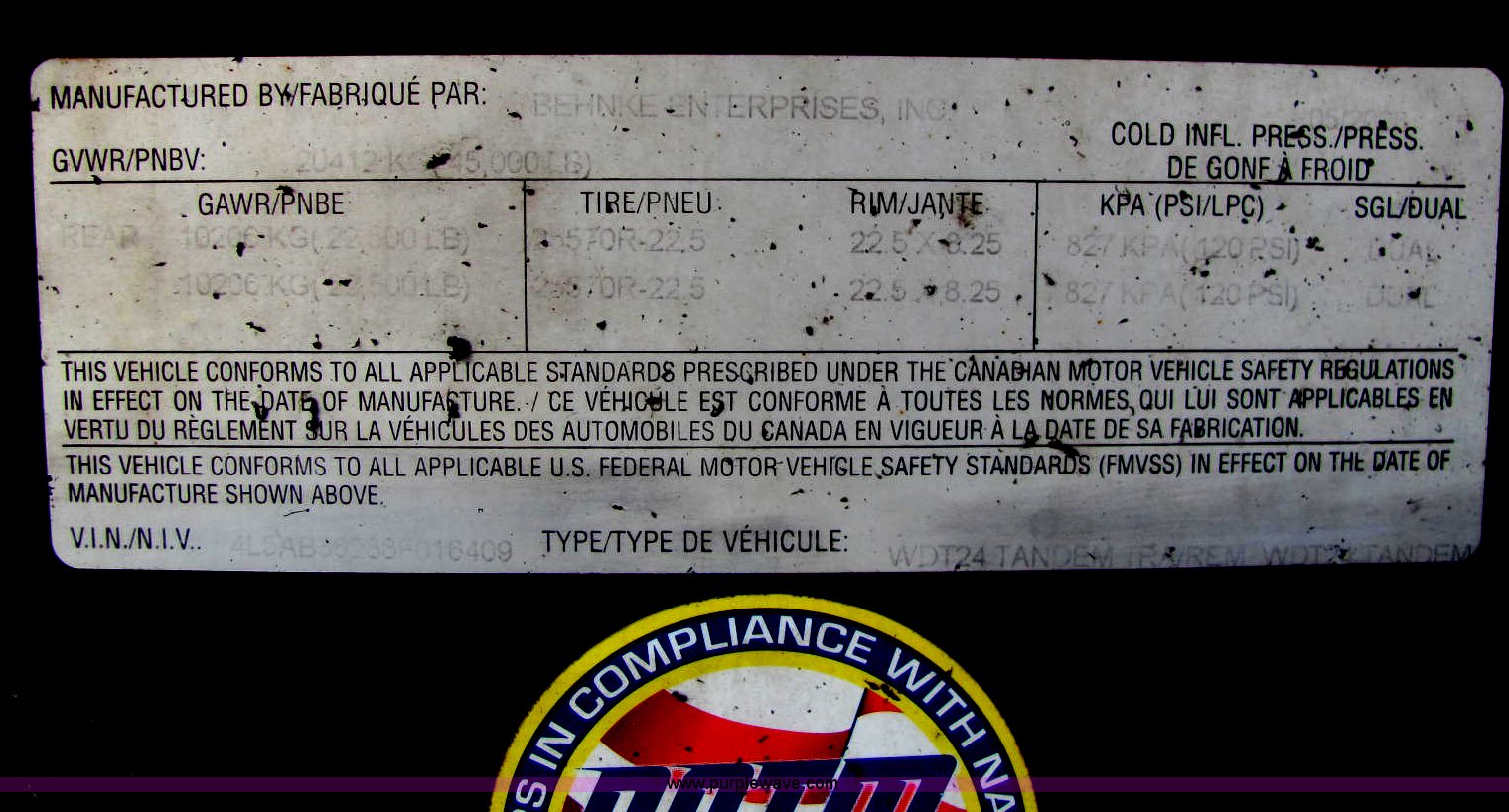 This 2008 B-B Behnke tandem axle tender trailer will sell to the highest bidder regardless of price.