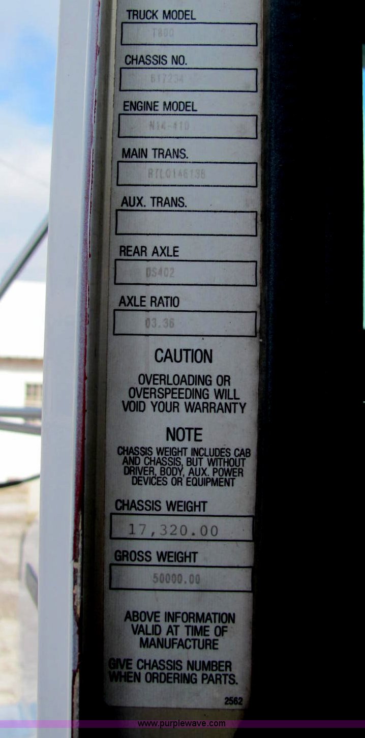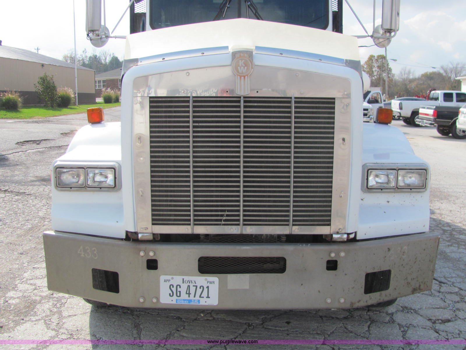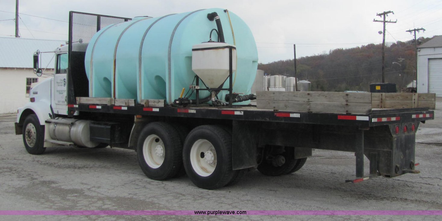 Purple Wave is selling a used Flat Bed Truck in Kentucky. This item is a 1994 Kenworth T8000 flatbed truck with the following: 937,927 miles on odometer, Cummins N14-410 14.0L L6 diesel engine, Eaton Fuller manual transmission, AC and heat, AM/FM/cassette, Cruise, Heated mirrors, Idle control, Visor, Block heater, Dual 120 gallon fuel tanks, Air suspension, Air brakes, Jake brake, 24'L x 8'W flatbed, Steel frame with wood decking, 3,200 gallon poly tank, 3" plumbing, 60 gallon poly feeder tank, 2" plumbing, Pin hitch, Trailer wiring, 11R24.5 tires, 228" wheel base, 50,000 lbs GVWR, 12,000 lbs FAWR, 19,000 lbs IAWR, 19,000 lbs RAWR, Unit# 40187