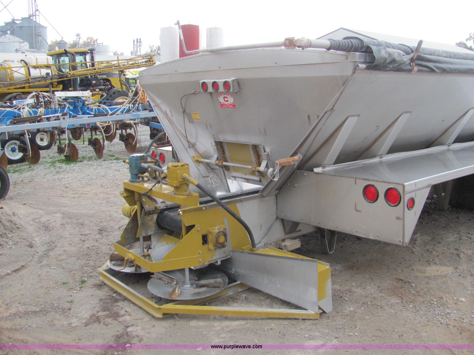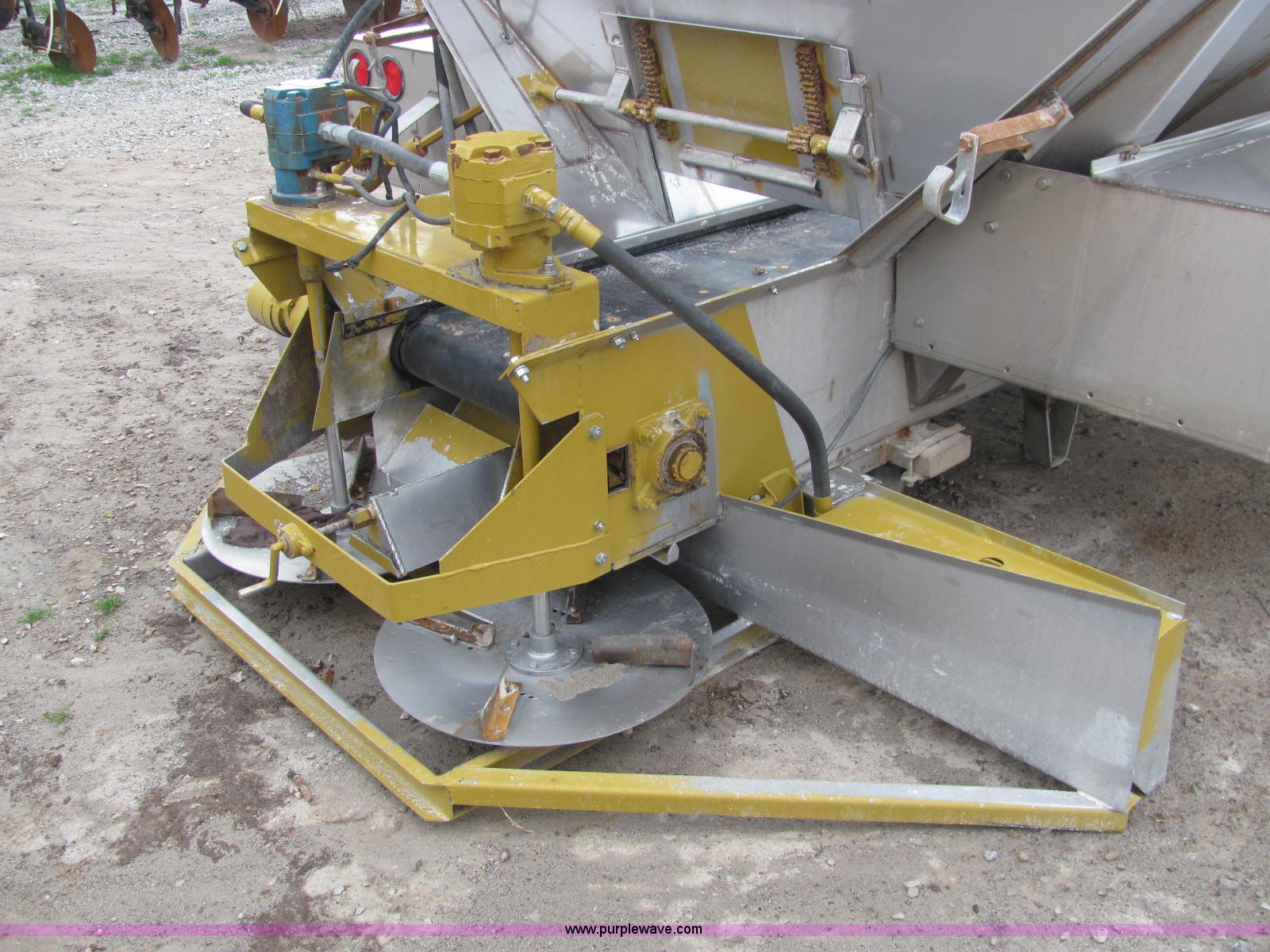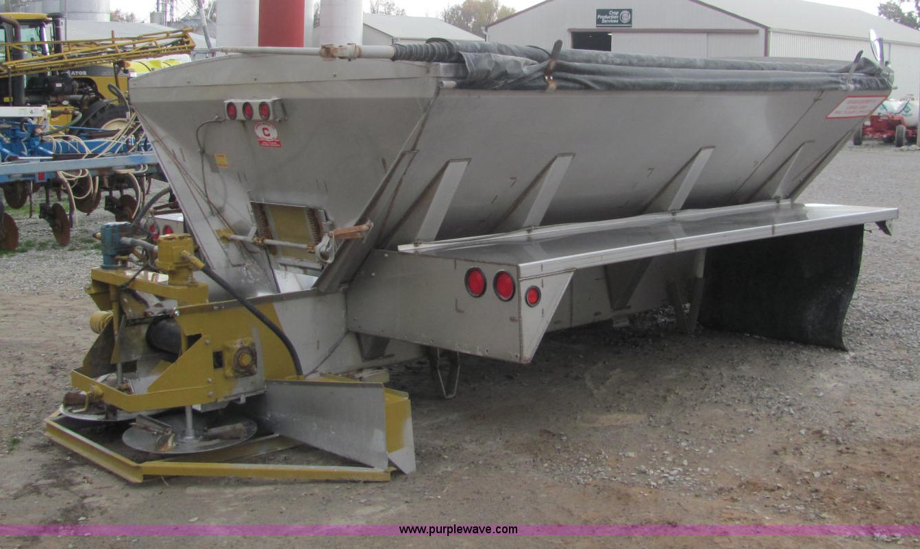 Purple Wave is selling a used Fertilizer or Seed Tender in Kentucky. This item is a Chandler 8 ton stainless steel spreader with the following: 13'L x 9'W, Dual spinners, Hydraulic operation, 28" rubber matted conveyor, Manual roll over tarp, Serial 22692