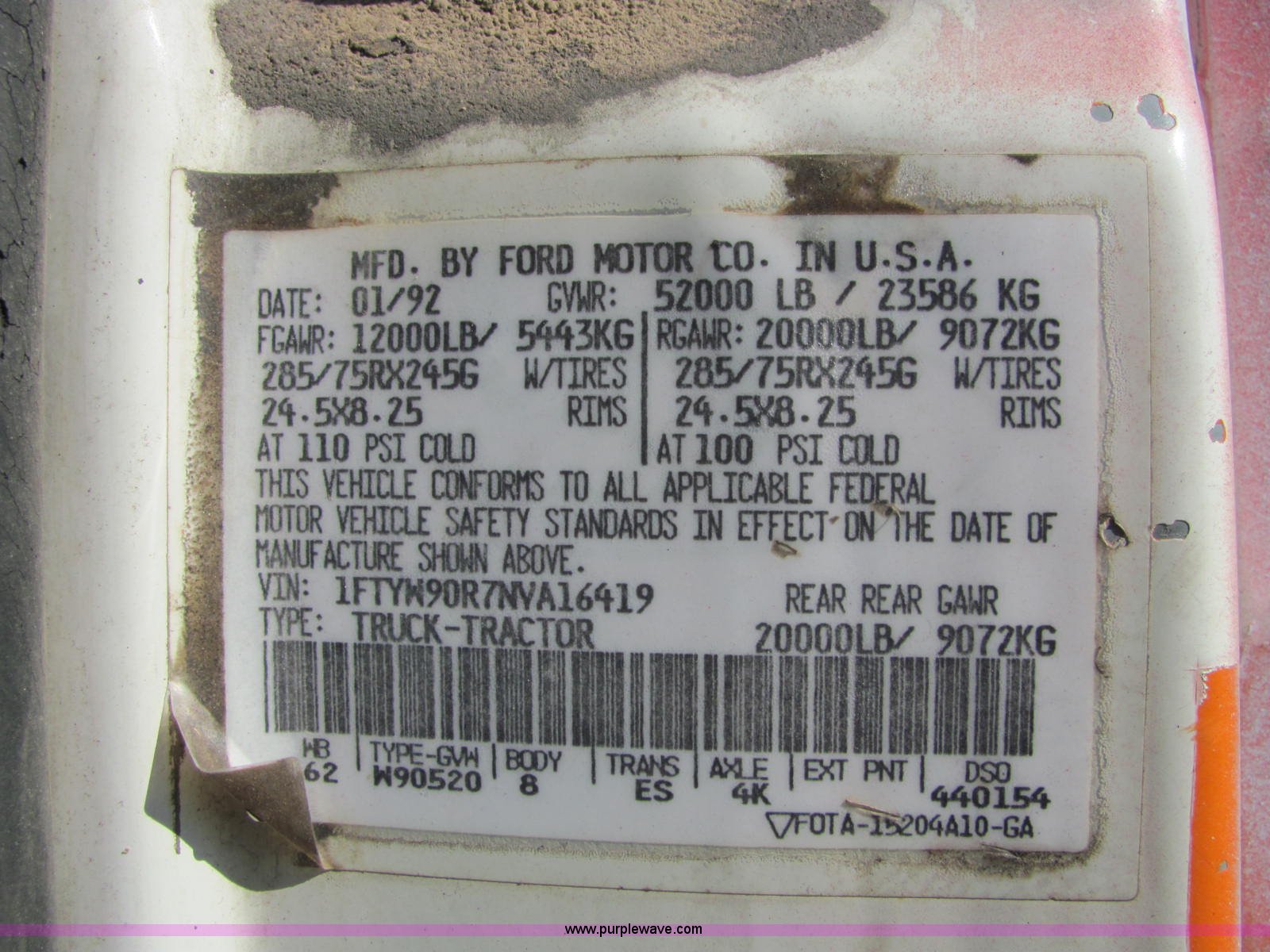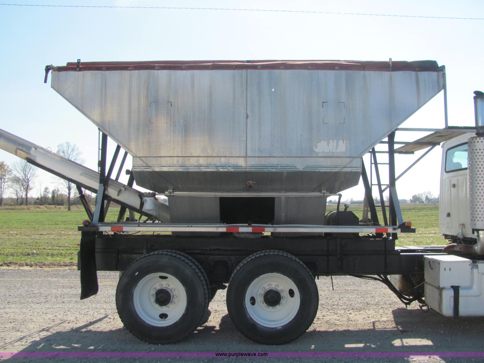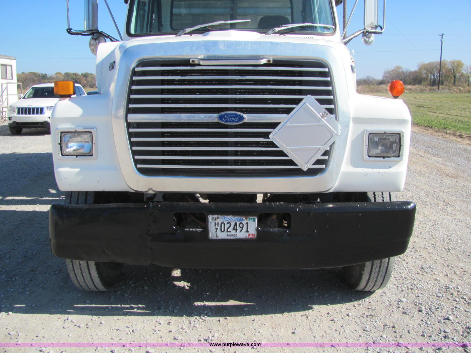 Purple Wave is selling a used Fertilizer or Feed Delivery Truck in Tennessee. This item is a 1992 Ford L9000 fertilizer tender truck with the following: 389,749 miles on odometer, Cummins N14 14.0L L6 diesel engine, 10 speed manual transmission, AC and heat, AM/FM/cassette, Heated mirrors, Locking differential, Throttle lock, Chandler 16'L tender, Single lever hydraulic operation, 10"D auger, (2) access ladders, Manual roll over tarp, Dual 125 gallon fuel tanks, Single rear exhaust stack, PTO, Wet kit, Spring suspension, Air brakes, Brake controller, Fifth wheel lock, Receiver hitch, 11R24.5 tires, 204" wheel base, 52,000 lbs GVWR, 12,000 lbs FAWR, 20,000 lbs IAWR, 20,000 lbs RAWR, Unit# 45853