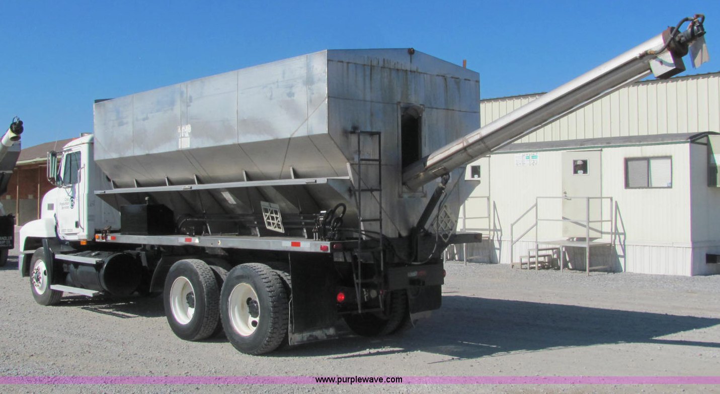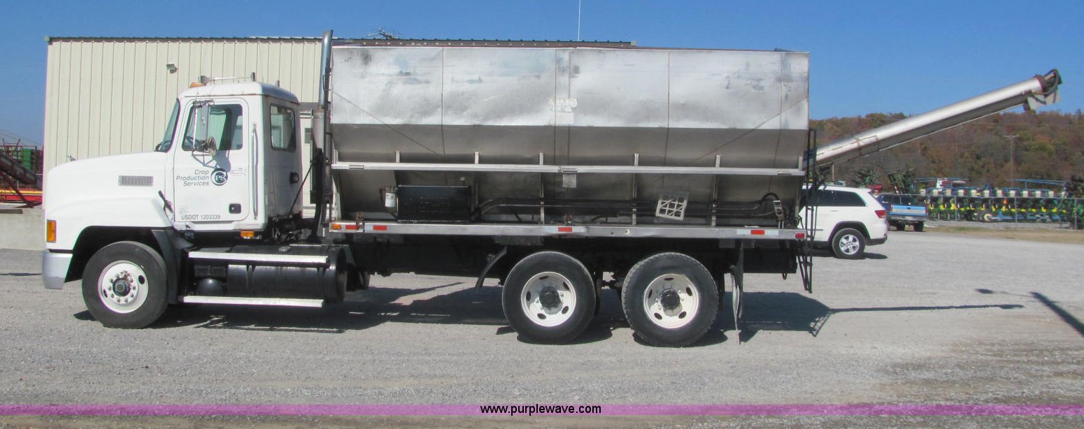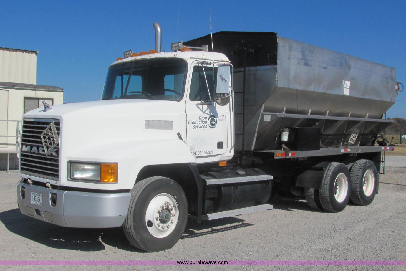 Purple Wave is selling a used Fertilizer or Feed Delivery Truck in Tennessee. This item is a 1995 Mack CH613 fertilizer tender truck with the following: 507,311 miles on odometer, 23,313 hours on meter, Mack E7 12.0L L6 diesel engine, Eaton Fuller 9 speed transmission, AC and heat, Tilt, Cruise, Air suspension seat, Heated mirrors, Passenger daylight door, Locking power divider, Master shutoff switch, Air slide fifth wheel, Adams 17' tender, Two lever hydraulic operation, 10"D auger, Two bin design, Roll over tarp, Dual 100 gallon fuel tanks, Poly quarter fenders, Single rear exhaust stack, PTO, Wet kit, Air suspension, Air brakes, Tow hooks, 295/75R22.5 tires, 216" wheel base, 52,000 lbs GVWR, 12,000 lbs FAWR, 20,000 lbs IAWR, 20,000 lbs RAWR