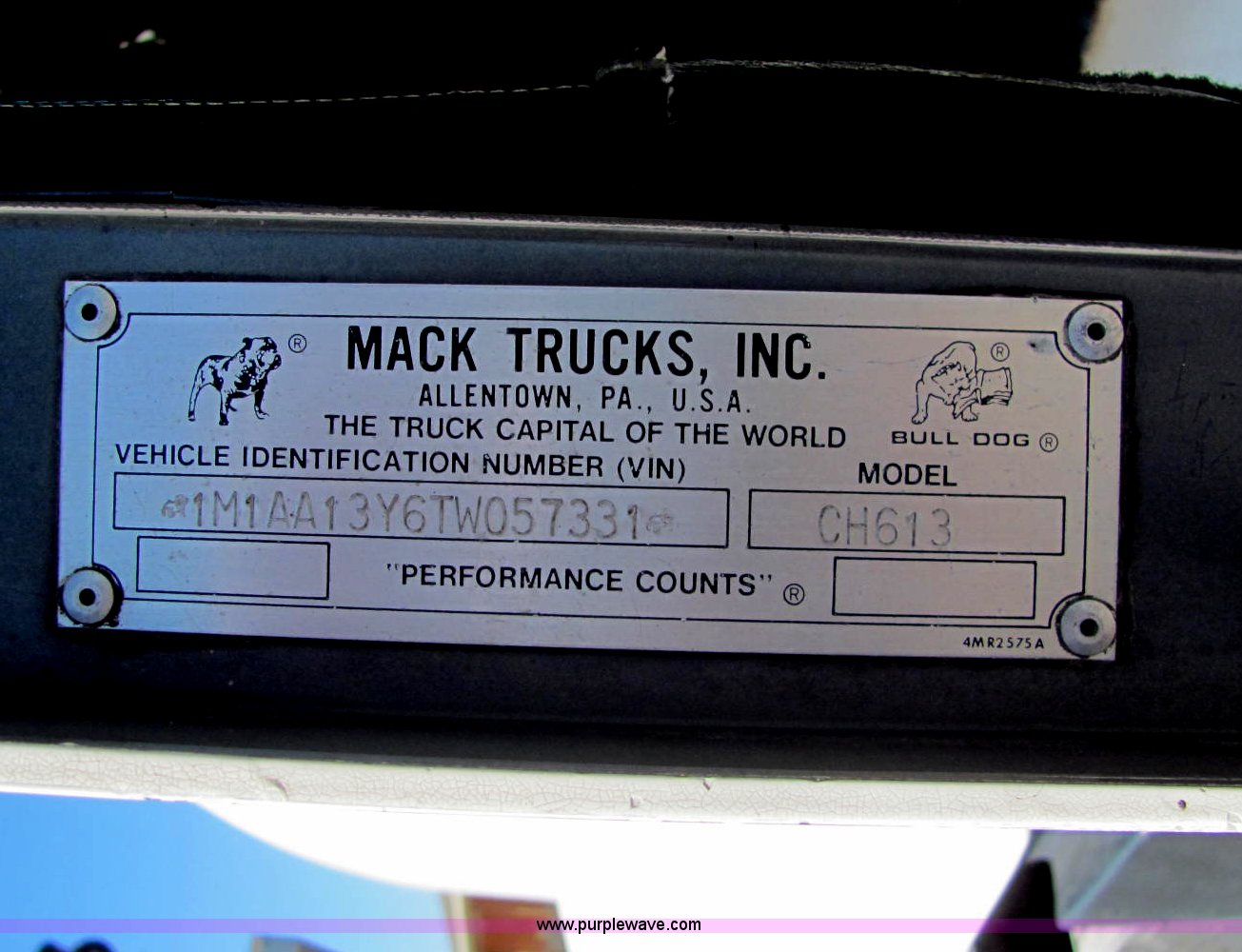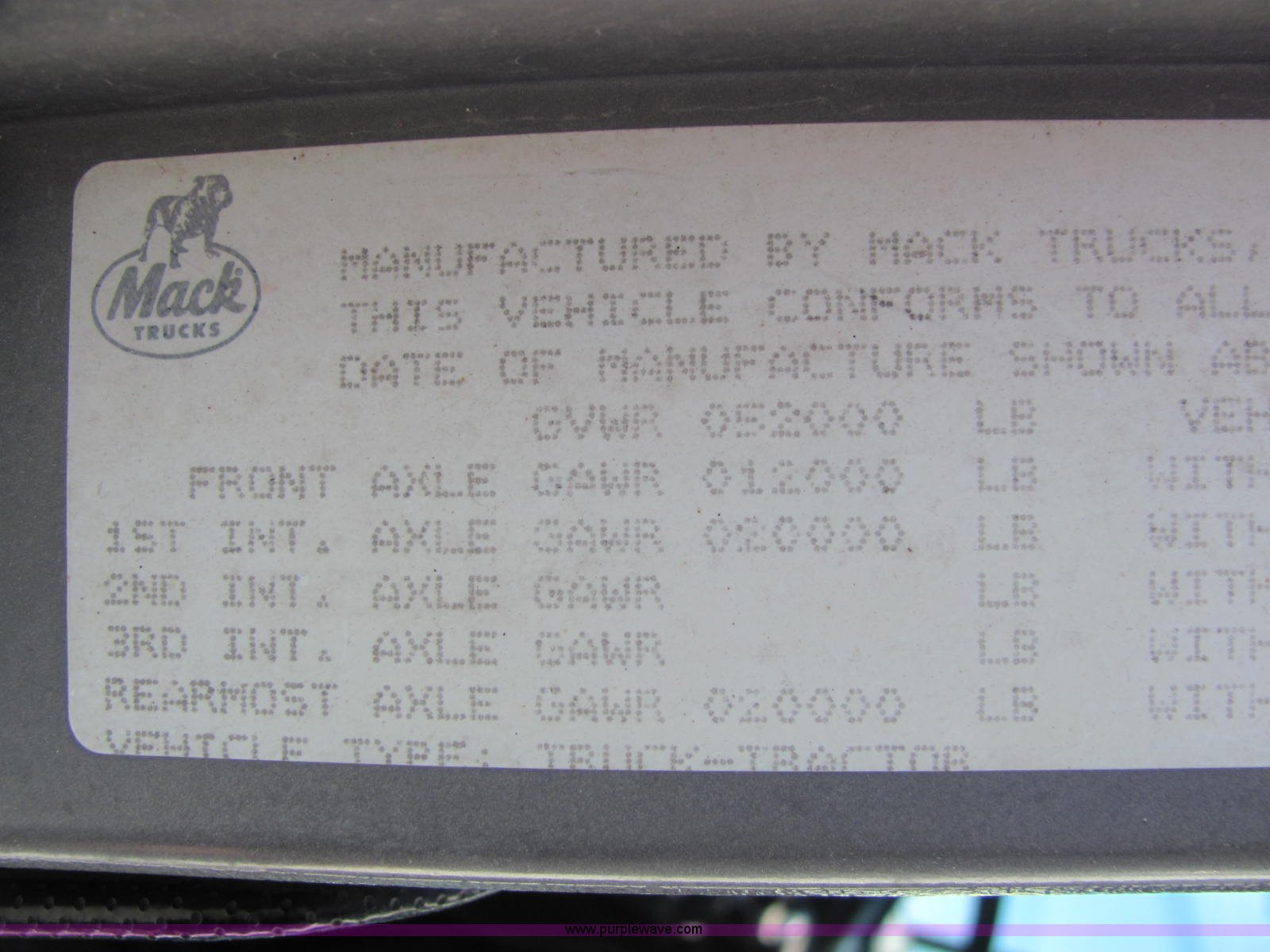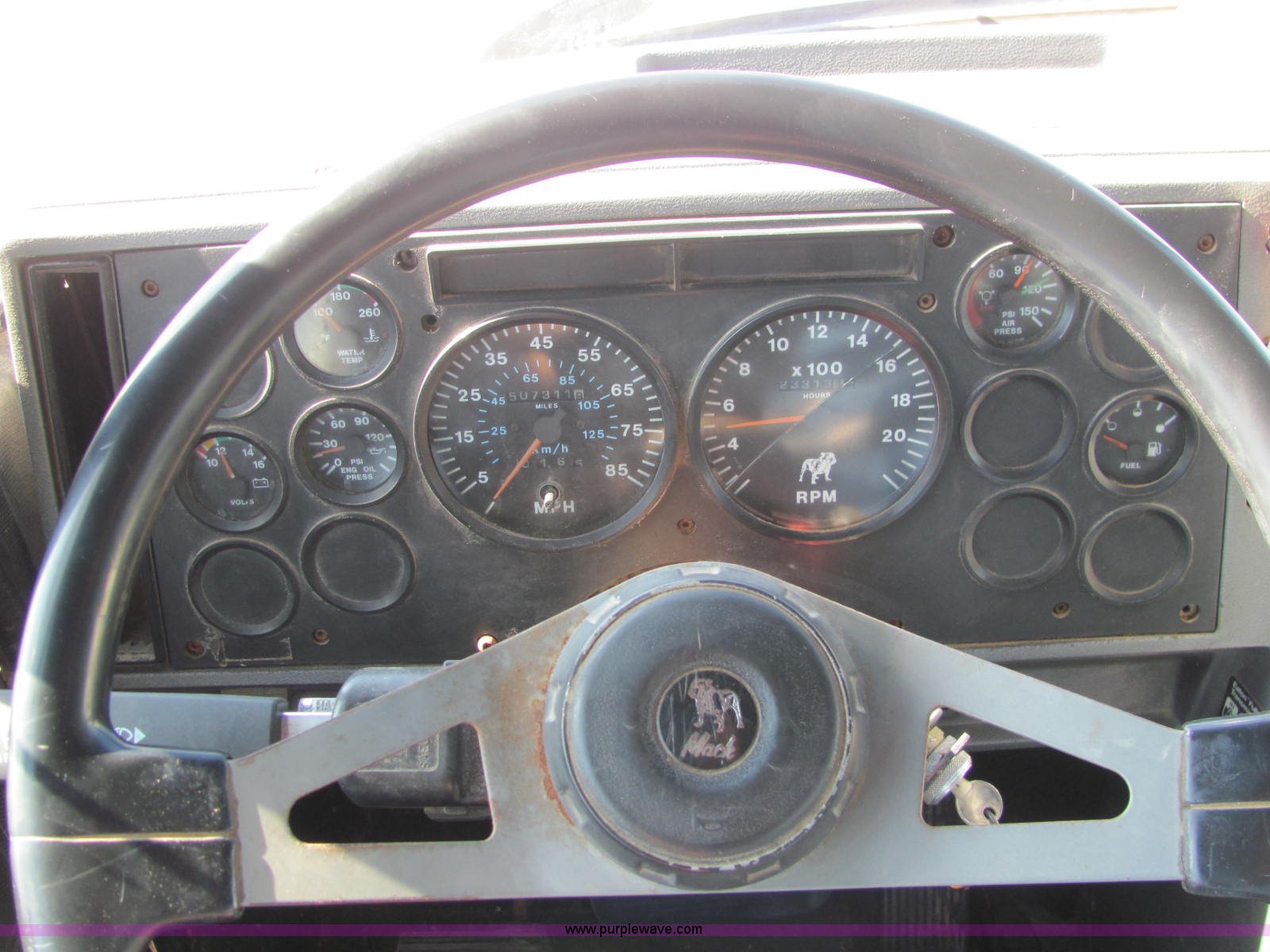 Purple Wave is selling a used Fertilizer or Feed Delivery Truck in Tennessee. This item is a 1995 Mack CH613 fertilizer tender truck with the following: 507,311 miles on odometer, 23,313 hours on meter, Mack E7 12.0L L6 diesel engine, Eaton Fuller 9 speed transmission, AC and heat, Tilt, Cruise, Air suspension seat, Heated mirrors, Passenger daylight door, Locking power divider, Master shutoff switch, Air slide fifth wheel, Adams 17' tender, Two lever hydraulic operation, 10"D auger, Two bin design, Roll over tarp, Dual 100 gallon fuel tanks, Poly quarter fenders, Single rear exhaust stack, PTO, Wet kit, Air suspension, Air brakes, Tow hooks, 295/75R22.5 tires, 216" wheel base, 52,000 lbs GVWR, 12,000 lbs FAWR, 20,000 lbs IAWR, 20,000 lbs RAWR