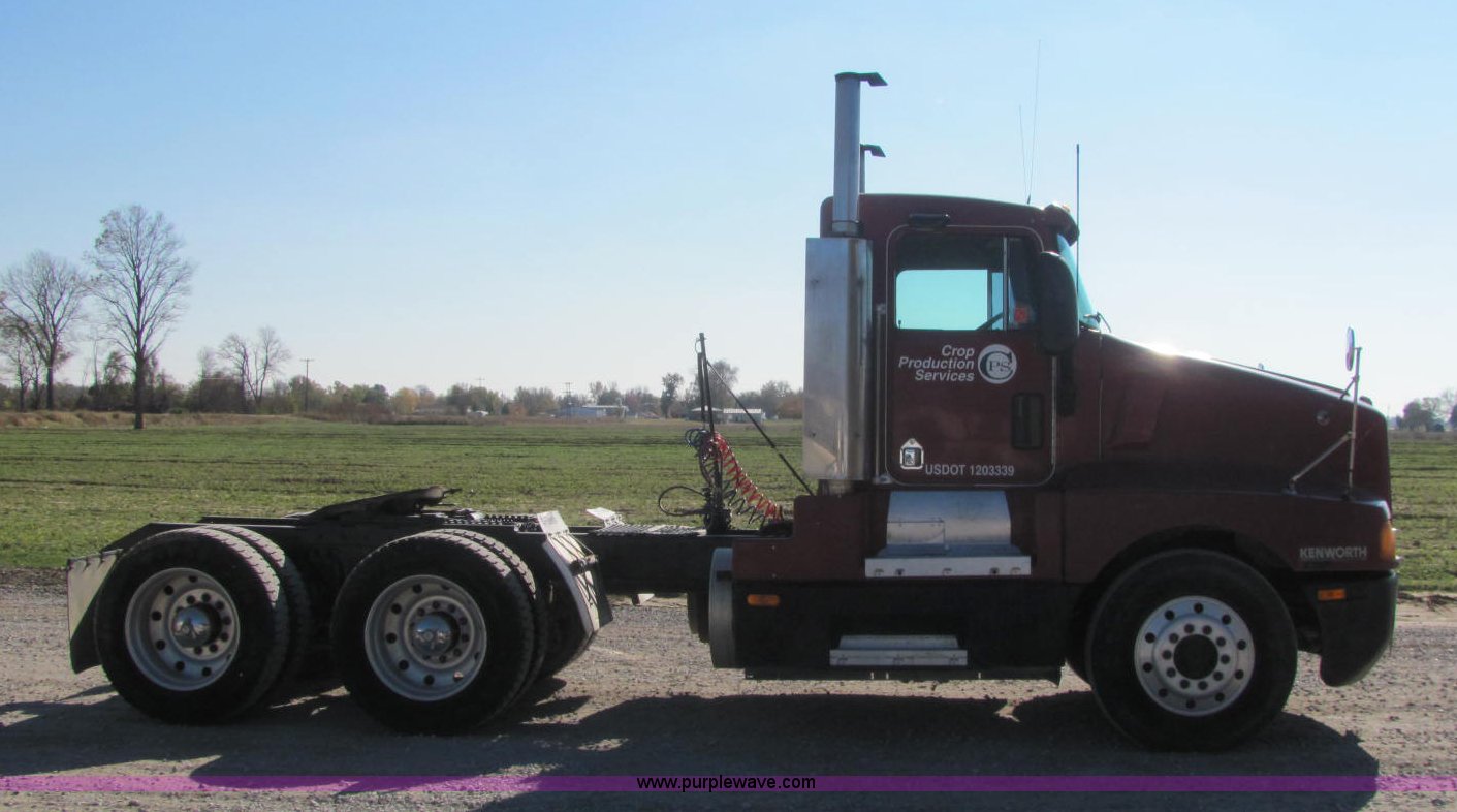 1992 Kenworth semi truck. 660,032 miles on odometer, Detroit Series 60 diesel engine, 10 speed manual transmission, AC and heat, Air suspension seat, Power mirrors, Heated mirrors, Locking differential, Visor, Stainless steel quarter fender, Dual 100 gallon fuel tanks, Dual rear exhaust stacks, Steel deck plate, Air suspension, Air brakes, Jake brake, 11R22.5 front tires, 285/75R24.5 rear tires, 180" wheel base, Unit# 40800. Title distribution may be delayed up to 30 days from verification of funds. 1XKADR9XOPJ582865. Shipping quotes available. Crop Production Services Dyersburg. 445 Lenox Nauvoo Rd.. Dyersburg, TN 38024