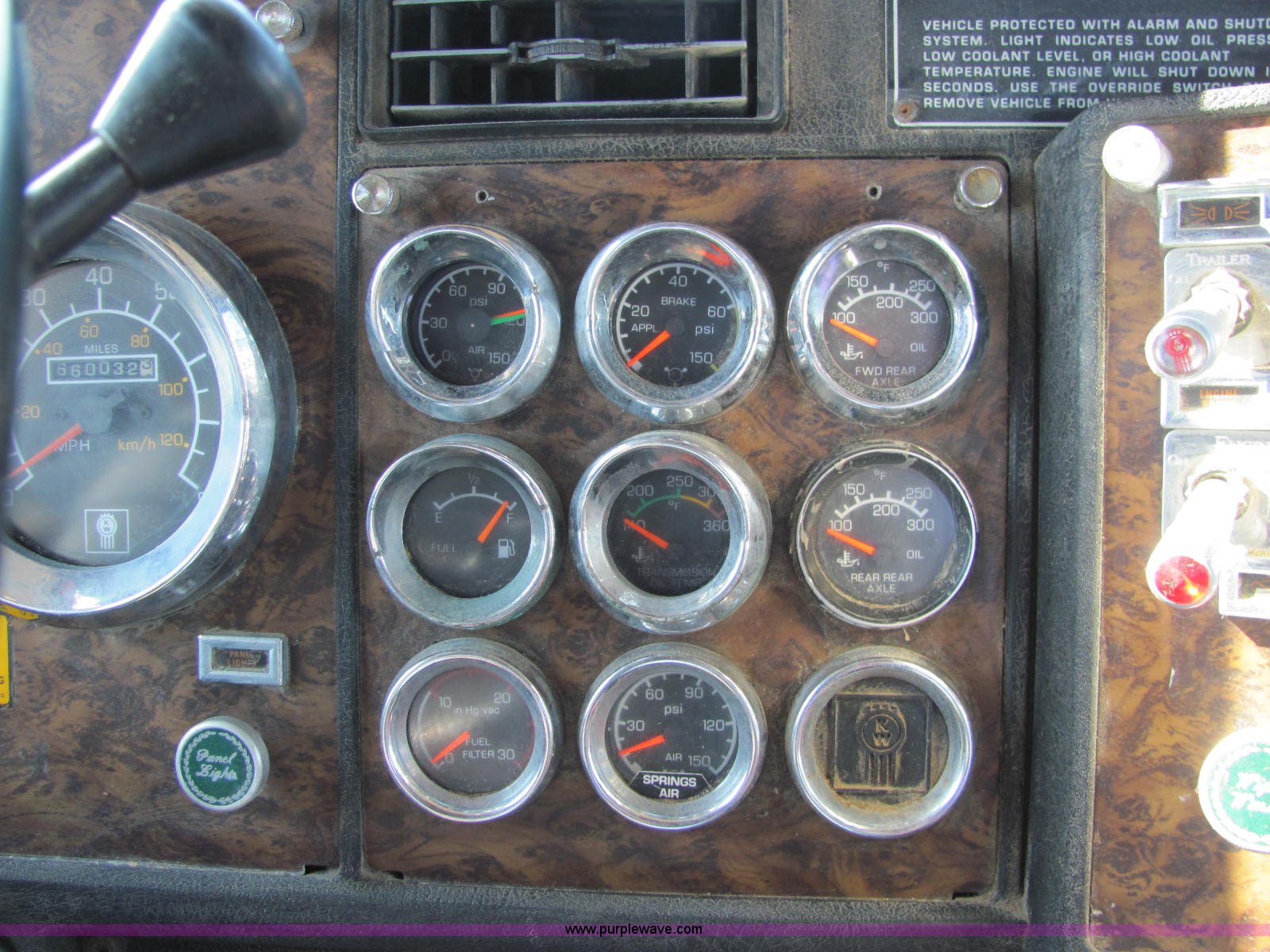 Purple Wave is selling a used Truck Tractor in Tennessee. This item is a 1992 Kenworth semi truck with the following: 660,032 miles on odometer, Detroit Series 60 diesel engine, 10 speed manual transmission, AC and heat, Air suspension seat, Power mirrors, Heated mirrors, Locking differential, Visor, Stainless steel quarter fender, Dual 100 gallon fuel tanks, Dual rear exhaust stacks, Steel deck plate, Air suspension, Air brakes, Jake brake, 11R22.5 front tires, 285/75R24.5 rear tires, 180" wheel base, Unit# 40800