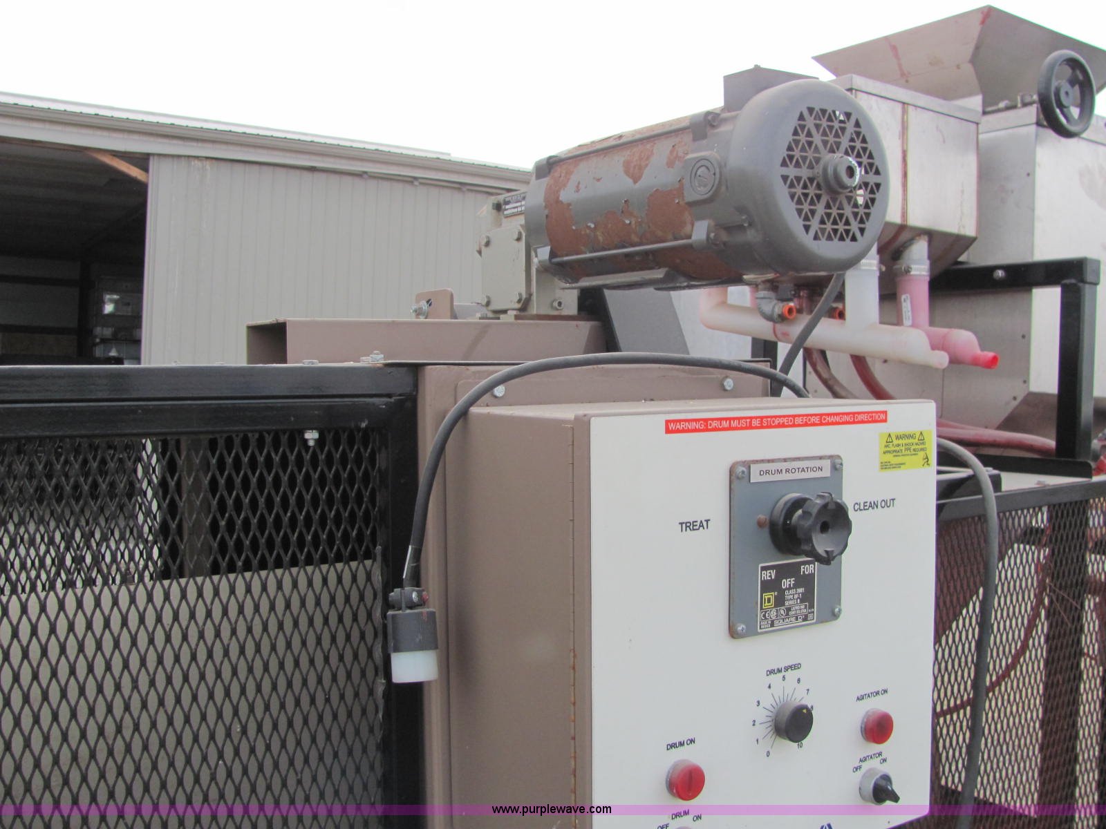 Purple Wave is selling a used Other Grain or Fertilizer Handling in Indiana. This item is a Gustafson SRW800 continuous flow seed treater with the following: Electric motor, Drum speed and agitation controls, Stainless steel hopper, Forward and reverse operation for treating and clean out, Serial 2007-42412-01