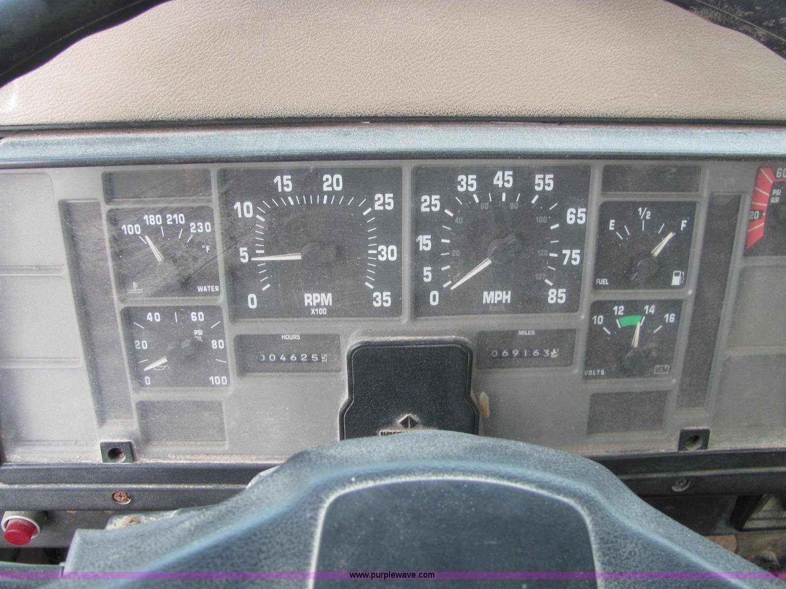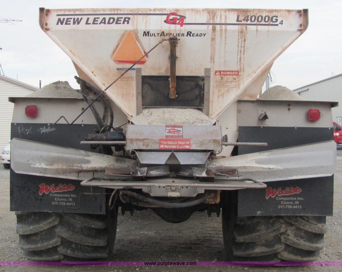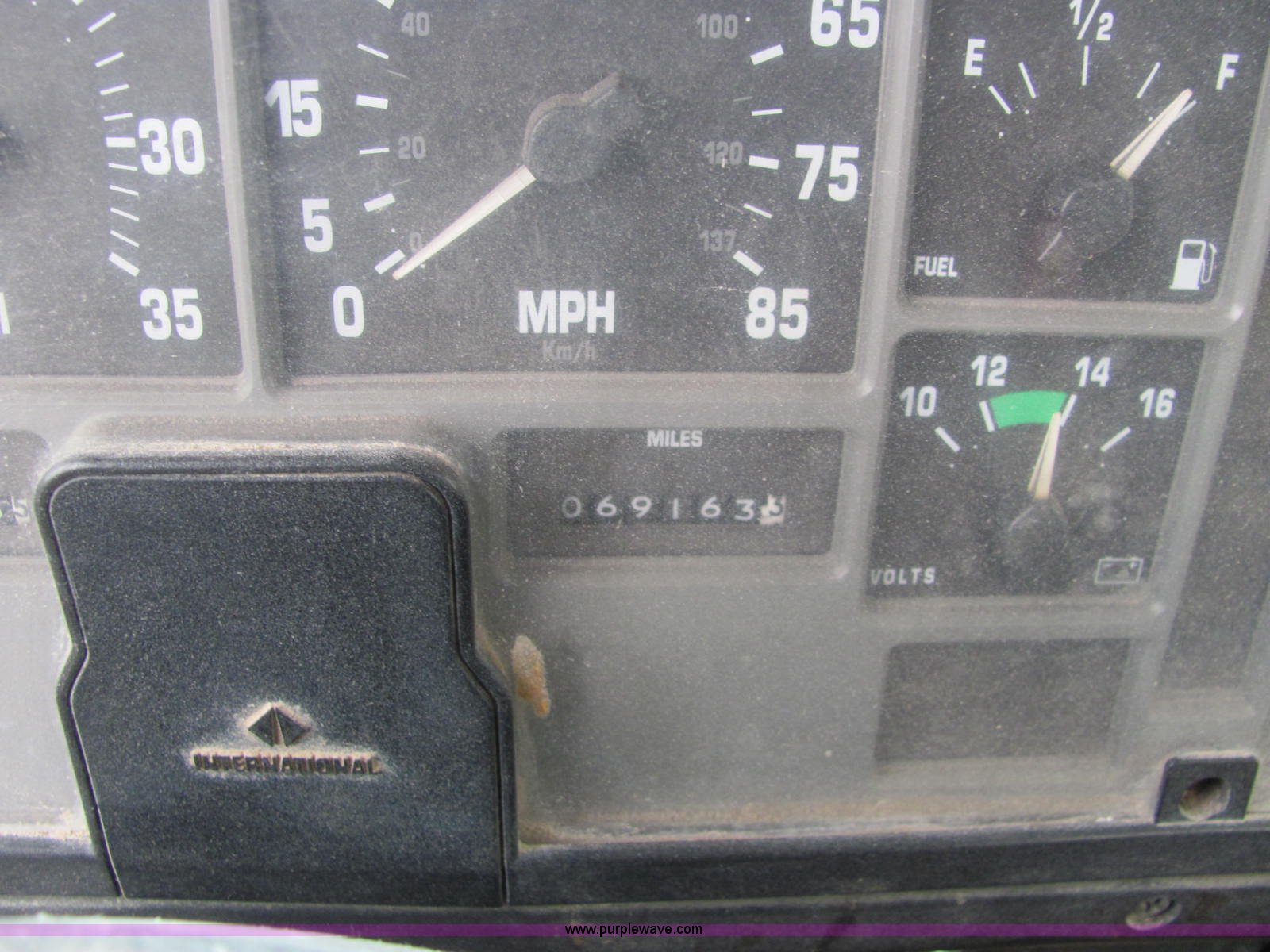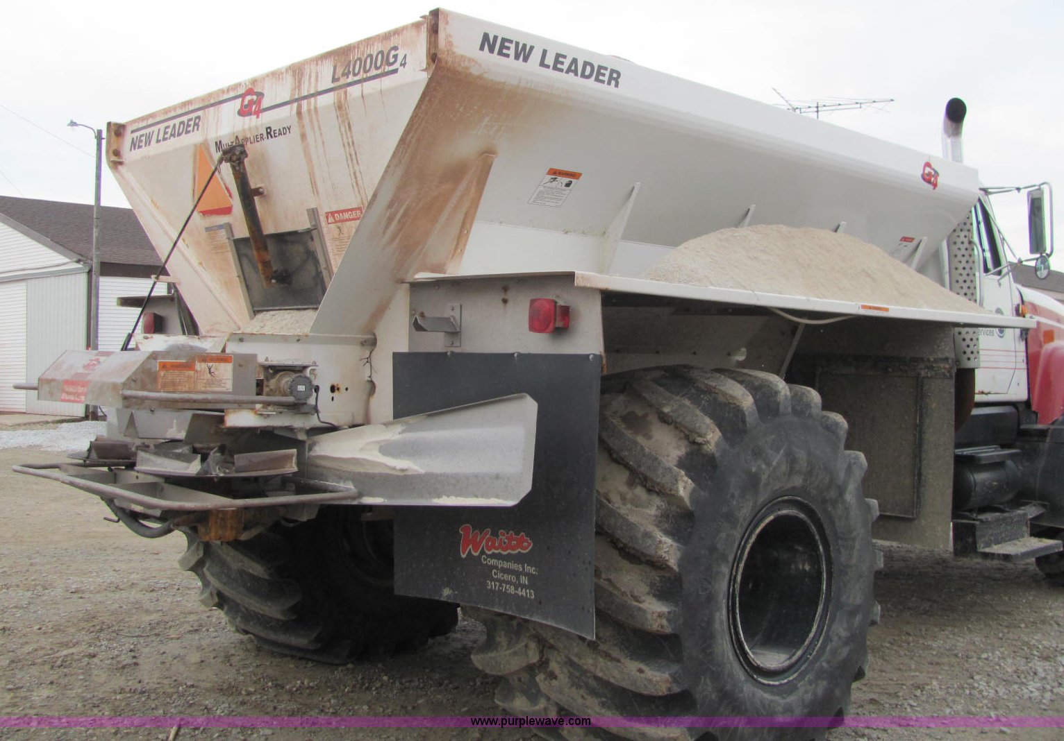 Purple Wave is selling a used Applicator Truck in Indiana. This item is a 1995 International 2554 spreader truck with the following: 69,163 miles on odometer, 4,625 hours on meter, Miles and hours may vary, International DT466 7.6L L6 diesel engine, Engine is bad, Eaton Fuller 10 speed manual transmission, Heat, AM/FM, Throttle lock, Block heater, 100 gallon fuel tank, Single rear exhaust stack, PTO, Wet kit, New Leader L4000 G4 spreader bed, Model 14000-13, 13'L x 8'W, Dual spinners, 24"W conveyor, Serial 129485, Front tow hooks, Air brakes, 192" wheelbase, 48 x 25.00-25NHS front tires, 66 x 43.00-25 rear tires, Engine is bad