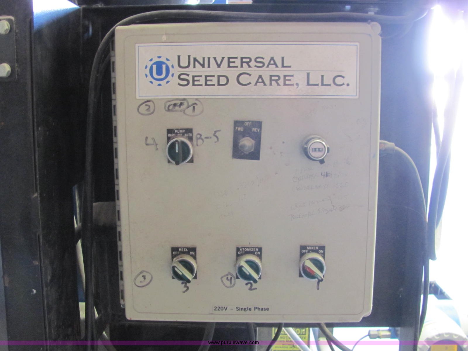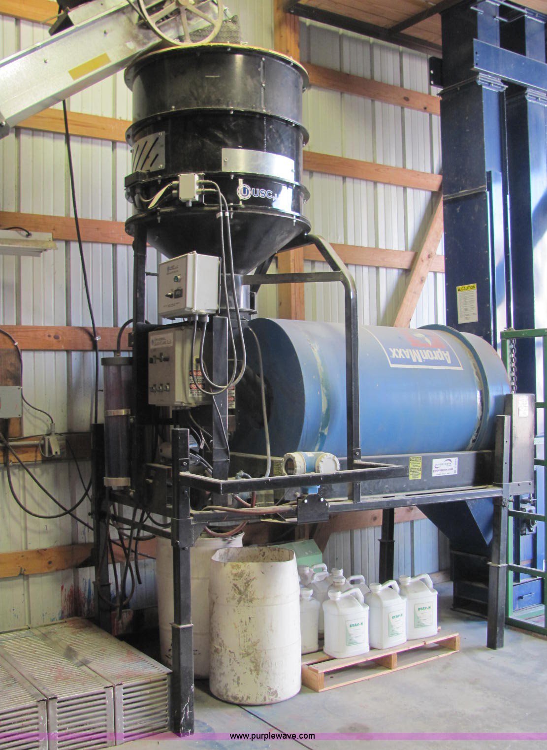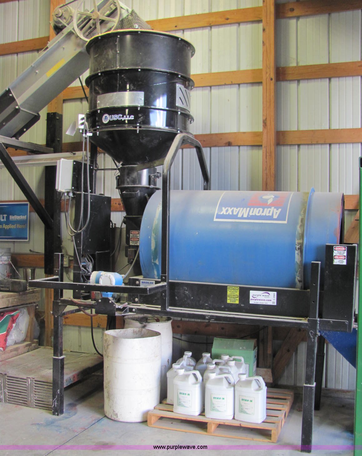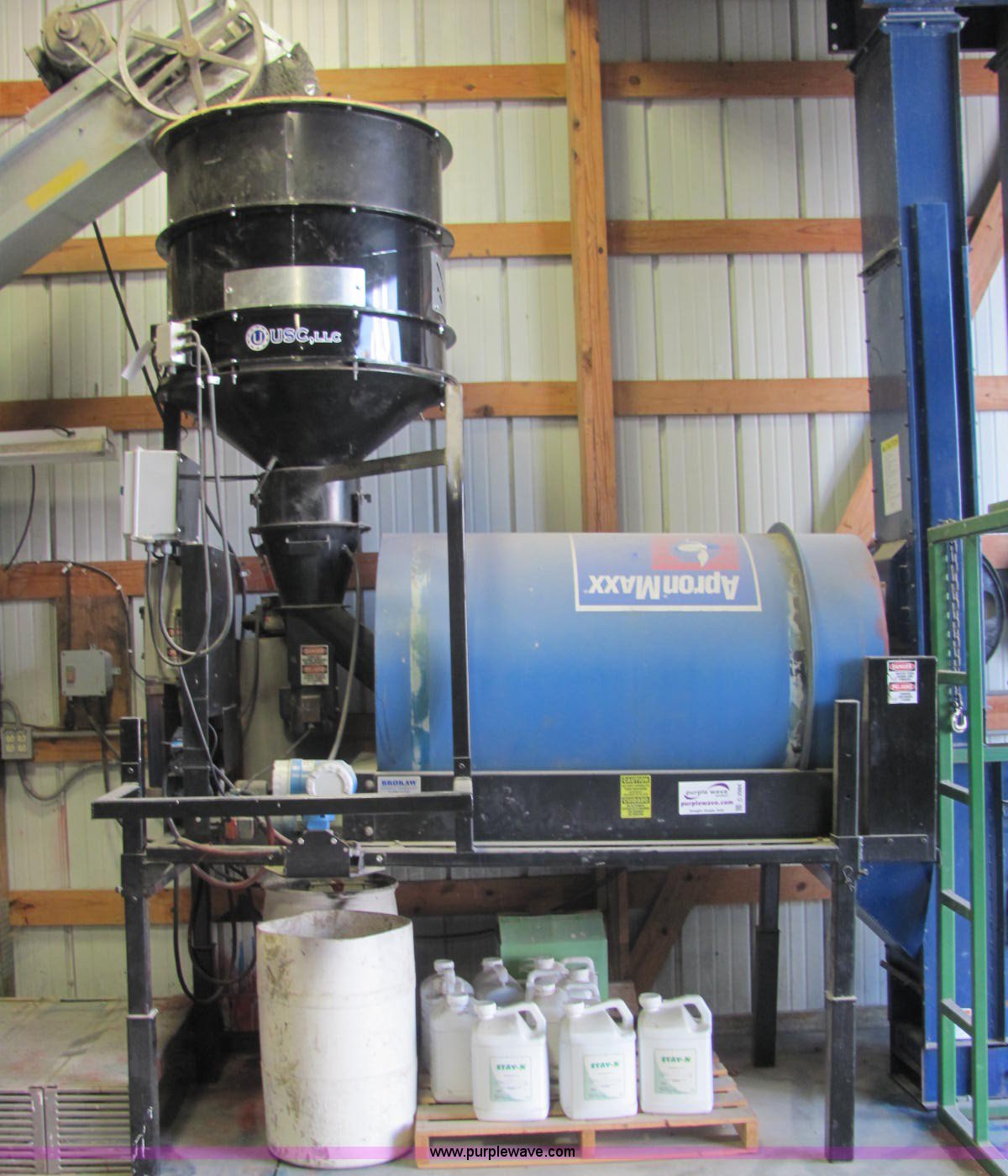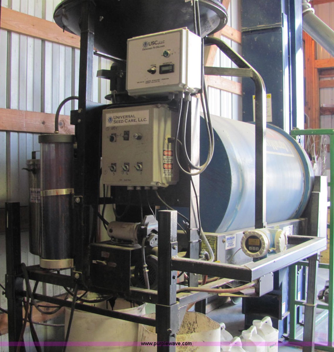 Purple Wave is selling a used Other Grain or Fertilizer Handling in Indiana. This item is a Universal Seed Care seed treater with the following: Appron Maxx variable speed rotator drum, Continuous flow, Atomizer, 220V, Single phase, Gravity flow hopper