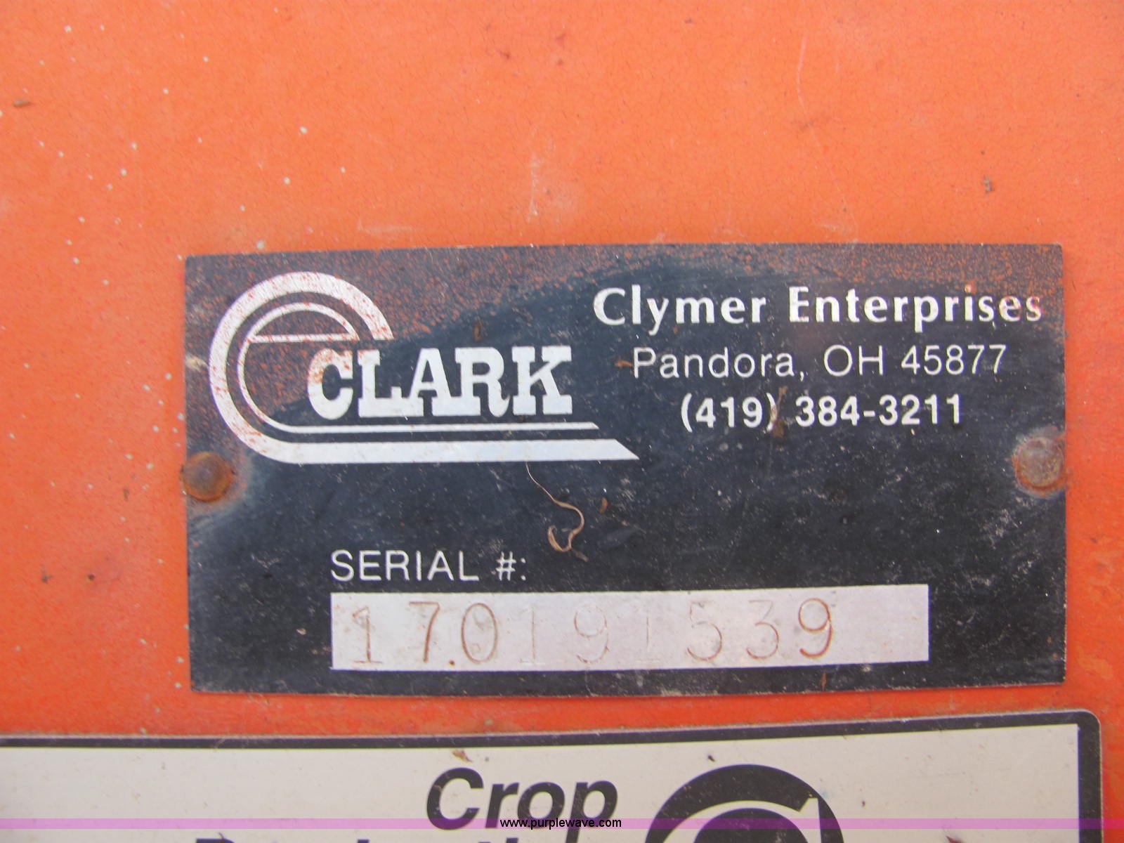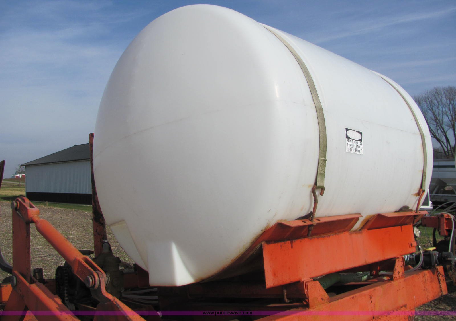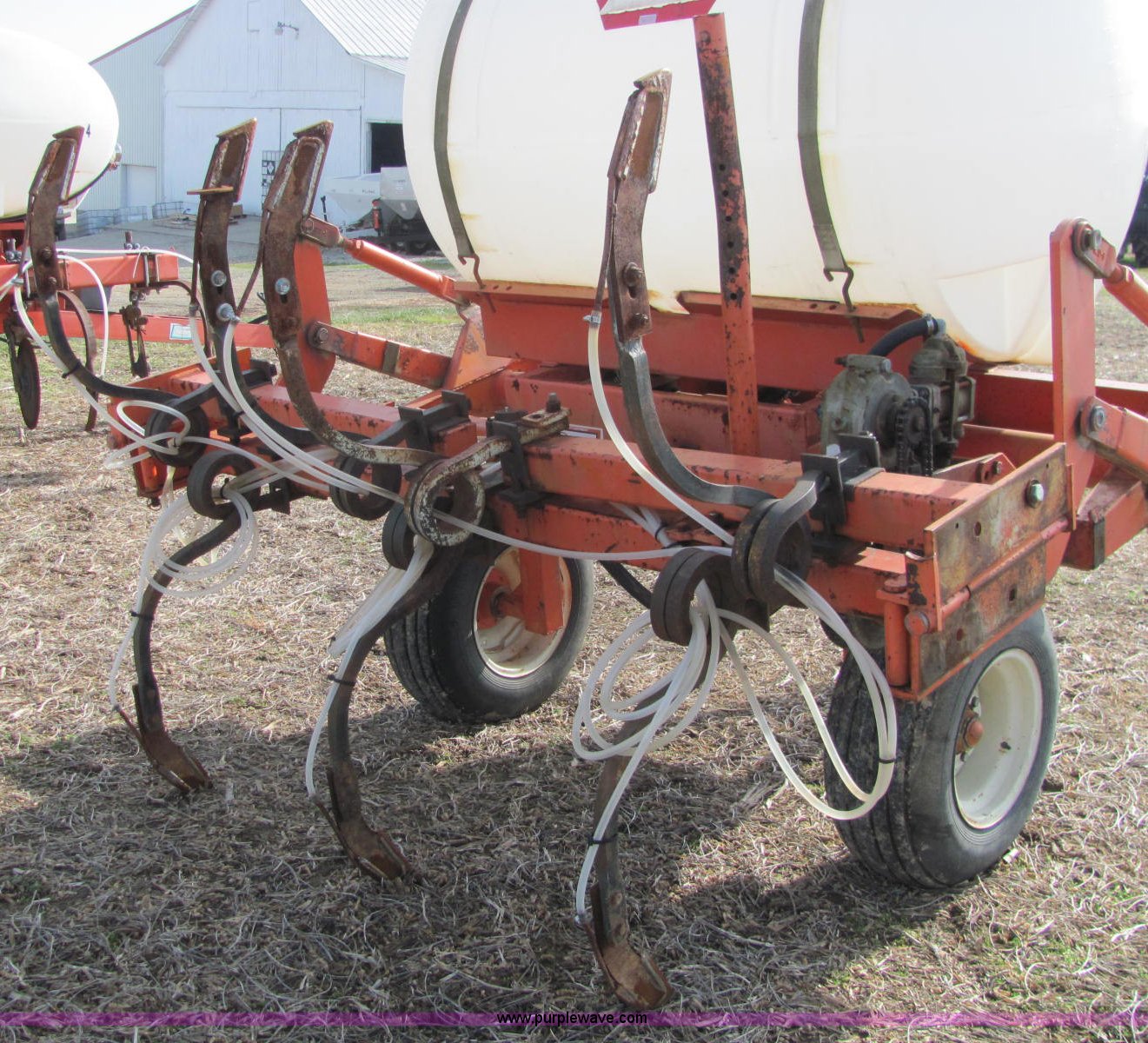 Purple Wave is selling a used Applicator Pull Type in Indiana. This item is a Clark ammonia applicator with the following: 500 gallon poly tank, John Blue pump, (7) spring loaded knives, 30" spacing, 2" plumbing, Hydraulic lift, Manual fold, Pin hitch, 11L-15SL tires, Serial 170191539, Unit# 49860