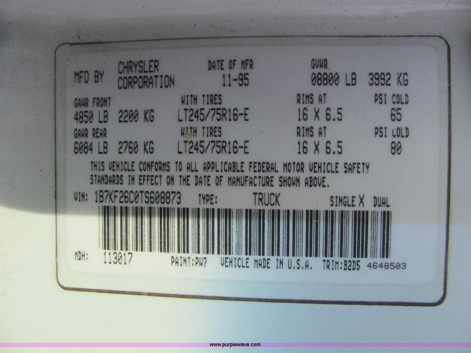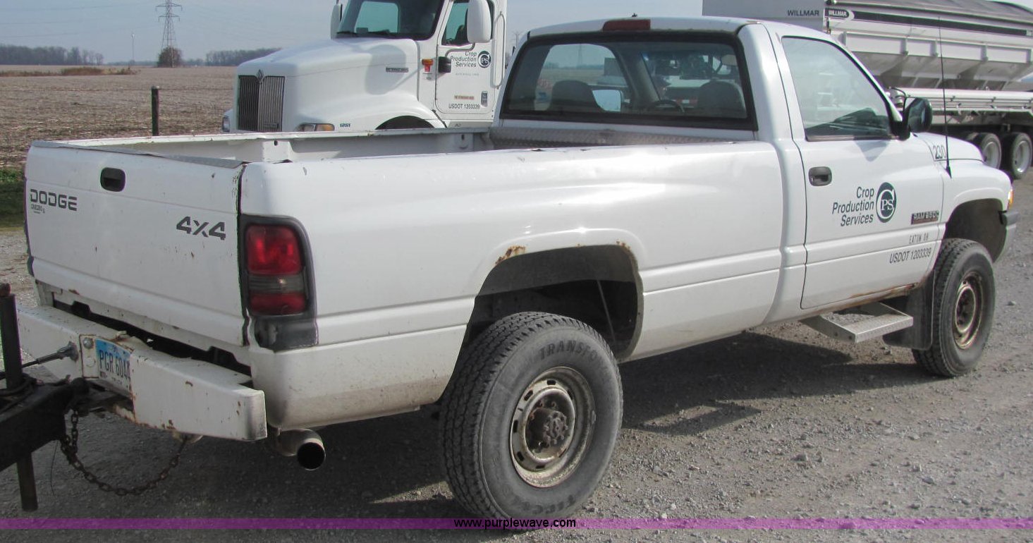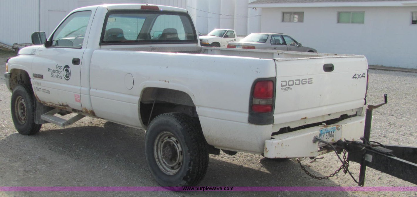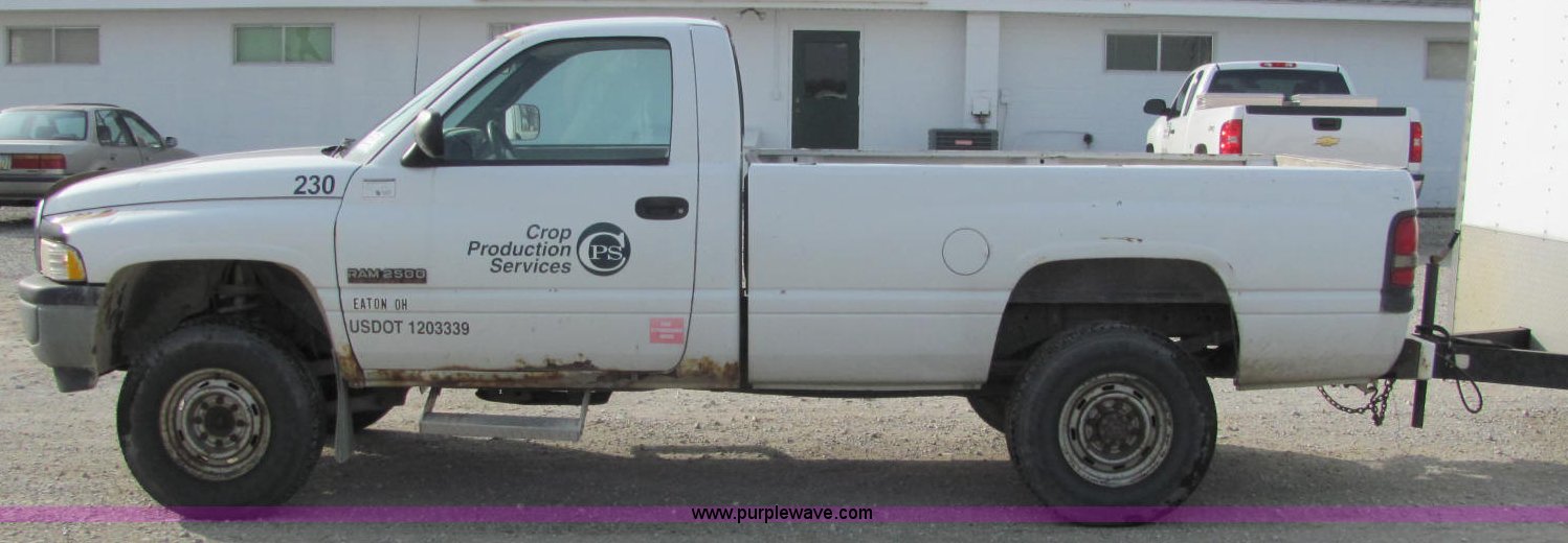 Purple Wave is selling a used Passenger Vehicle in Indiana. This item is a 1996 Dodge Ram 2500 pickup truck with the following: 236,949 miles on odometer, 5.9L I6 FI diesel engine, Automatic transmission, AC and heat, AC system leaks, AM/FM/cassette, Manual windows and locks, Vinyl interior, Agility brake controller, Block heater, Gooseneck hitch, Receiver hitch, Trailer wiring, LT235/85R16 tires, Unit# 51490